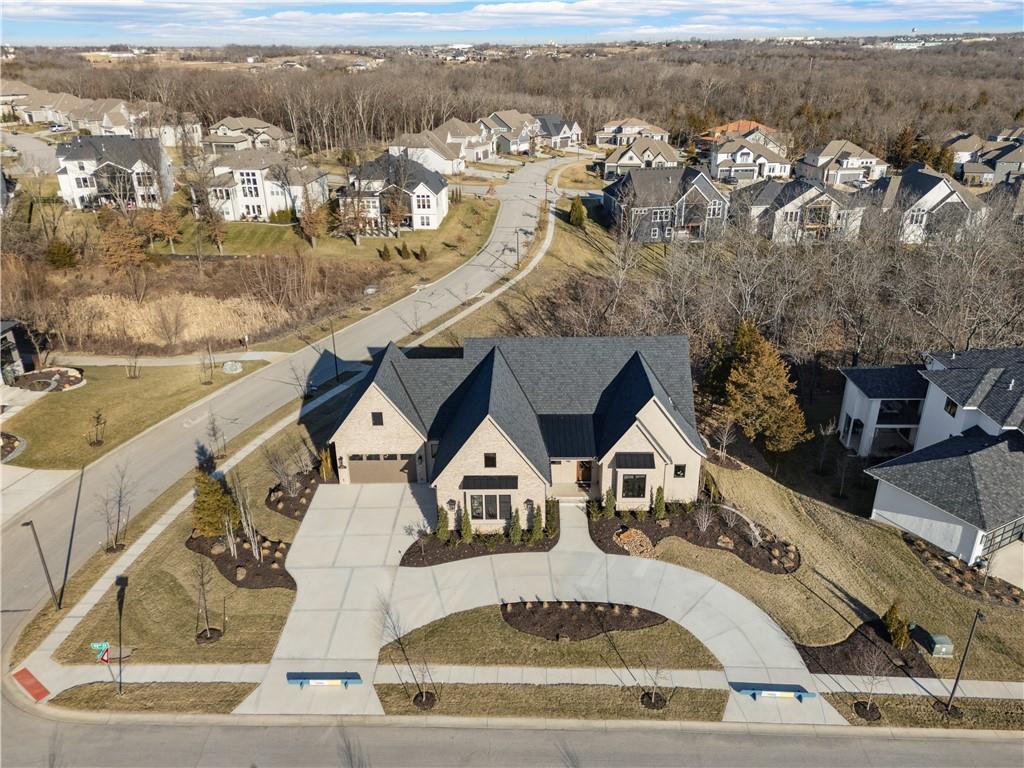 MOVE IN READY! "Riviera" plan by Bickimer Homes. This Reverse 1.5 story on large wooded, walkout, corner lot in features many upgrades including a golf simulator in the finished walkout lower level which features an additional 2ft drop for a 12ft ceiling in simulator area. Lower level also includes a fitness room & wet bar in large rec room area. Gourmet kitchen features large gas range and quartzite countertops and built-in, paneled refrigerator. Huge 4 car garage (2 each!) plus large mudroom area, extensive landscaping and landscape lighting! Enjoy Timber Rock amenities such as our luxurious clubhouse, swimming pool, pickleball courts, play area and walking trails! Contact neighborhood listing agents for a tour today! Home is complete and MOVE IN READY! Olathe Nirthwest HS, Olathe school district
