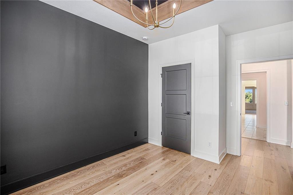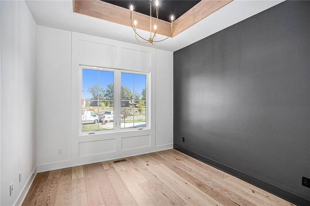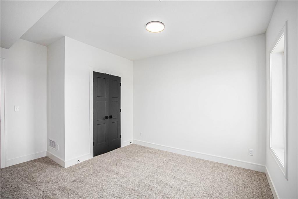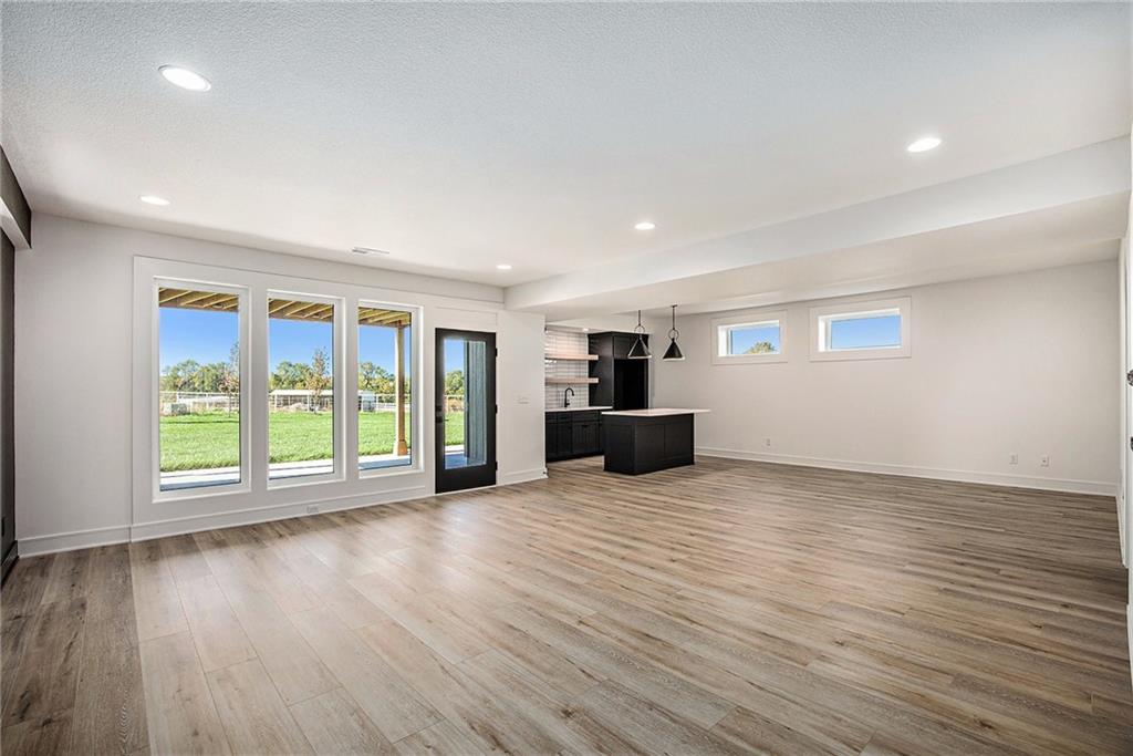 MOVE IN READY -"The Bayberry I" by JFE Construction, situated on Lot 90, is a Reverse 1 ½ Story residence featuring four bedrooms and three bathrooms. Upon entry through the impressive 8-foot double doors, residents are greeted by a spacious great room showcasing a vaulted ceiling, floor-to-ceiling fireplace, and expansive windows that create an open atmosphere. Large sliding doors seamlessly connect the great room to a covered deck equipped with a stone fireplace, offering an ideal space for entertaining. The kitchen is thoughtfully designed with a substantial island finished in quartz, stainless steel appliances, and a generous pantry that includes a built-in coffee bar. The primary ensuite features a free-standing soaker tub, double vanity, zero-entry shower, and a walk-in closet. A secondary bedroom or office is located on the main level. The finished lower level provides a family room, wet bar with island, two additional bedrooms, and a full bathroom. Enjoy access to the covered deck from the walkout lower level. Minutes from Blue Valley K-12 schools. Taxes are estimated. THIS HOME IS MOVE IN READY.