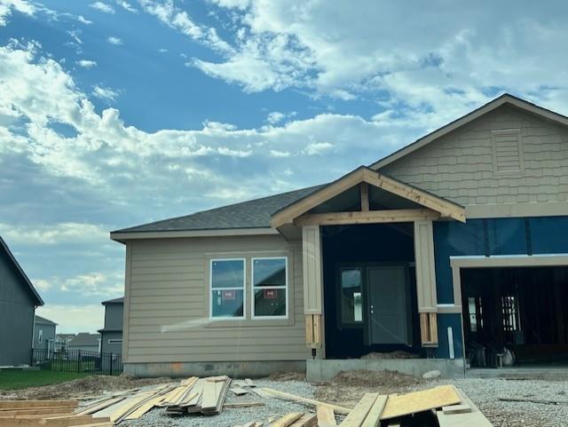 Welcome to this stunning ranch-style home featuring 3 bedrooms, 2 bathrooms, and a spacious 3-car garage—all on one convenient level! This is the final Carbondale Craftsman being built in Holly Farms- so HURRY! PRICE IMPROVEMENT ON HALLOWEEN! NO TRICKS!! The exterior paint scheme will make you smile, with the "modern farmhouse style" white with black accents. This beautiful home has an open-concept design connecting the Great Room, Kitchen, and Dining Area, creating a perfect space for entertaining or family time. The large windows throughout flood the home with natural light and the light colored LVP flooring make the main living area feel bright and airy. The primary suite is a relaxing retreat with a large walk-in closet and an ensuite bath, providing the privacy you need. On the opposite side of the home, you’ll find two secondary bedrooms plus a full bathroom offering the perfect layout for guests or kids. Just outside the kitchen/dining slider doors, there is a 12' x 12' deck with stairs to the yard. Need more space? The full unfinished daylight LL offers possibilities for the future—whether it's a rec room, gym, or home office. You can enjoy both modern living and a welcoming community at Holly Farms which is an exclusive Summit Homes community. This means it was developed and built only by Summit Homes. The amenities are excellent with two stocked fishing ponds, beautiful walking trails, greenspace, a large pool, a cabana, and a playground. Holly Farms is located just west of US Highway 169 on NW Shoal Creek Parkway at a perfect Northland spot: close to schools, KC International Airport (11 minutes), Zona Rosa Town Center (12 minutes), and the main thoroughfares of Kansas City for an easy commute. *Square Footage and Taxes are Estimated. *This home is under construction with an estimated completion date of 1.27.26. *HOA fees are $1006 annually plus a one-time set up fee. **MOST Photos are of another FINISHED CARBONDALE home.
