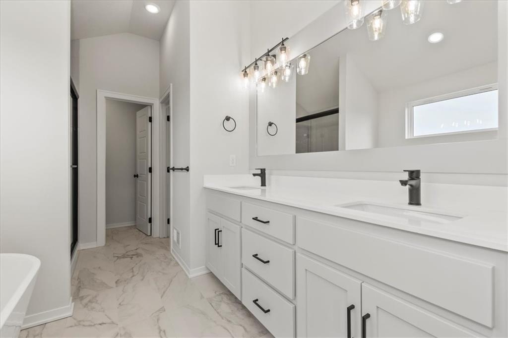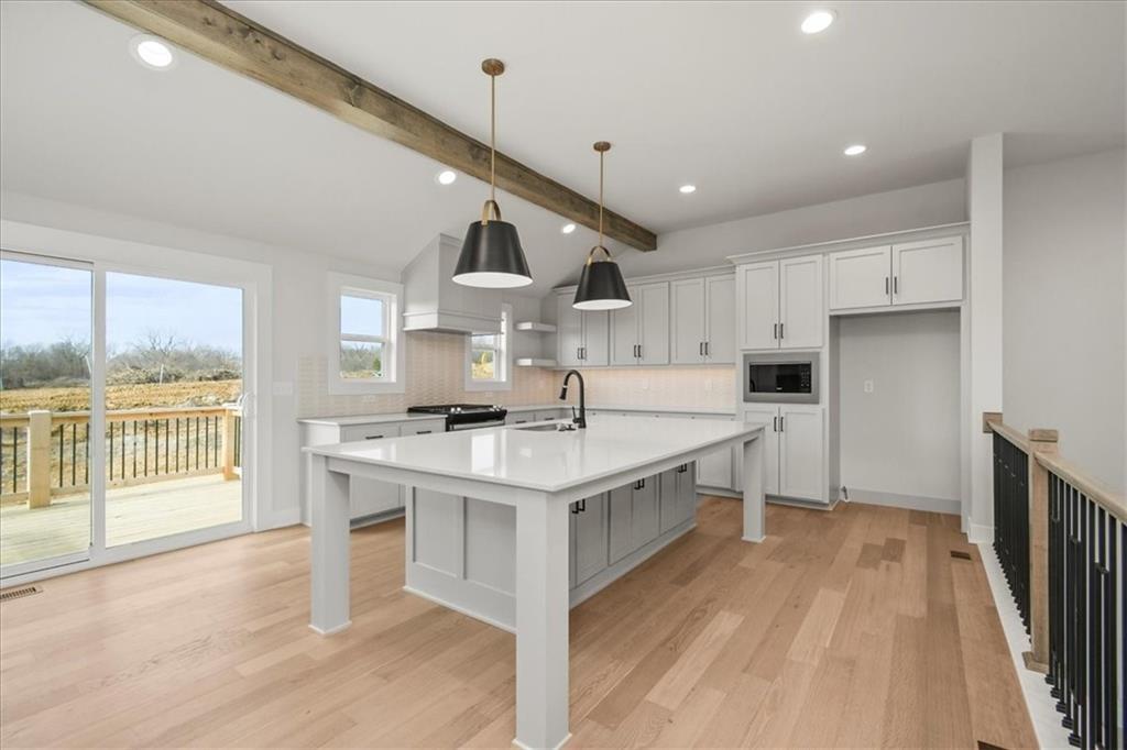 Popular Front to Back Split in Eagles Creek of Blue Springs! Close to completion - come and see the massive quartz island and well designed kitchen! Amazing master suite and large open spaces. Main floor laundry. Huge 3 car garage!