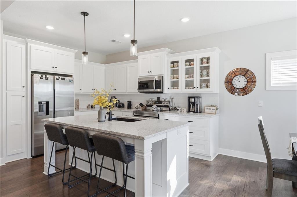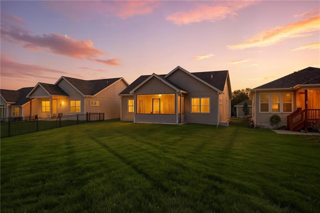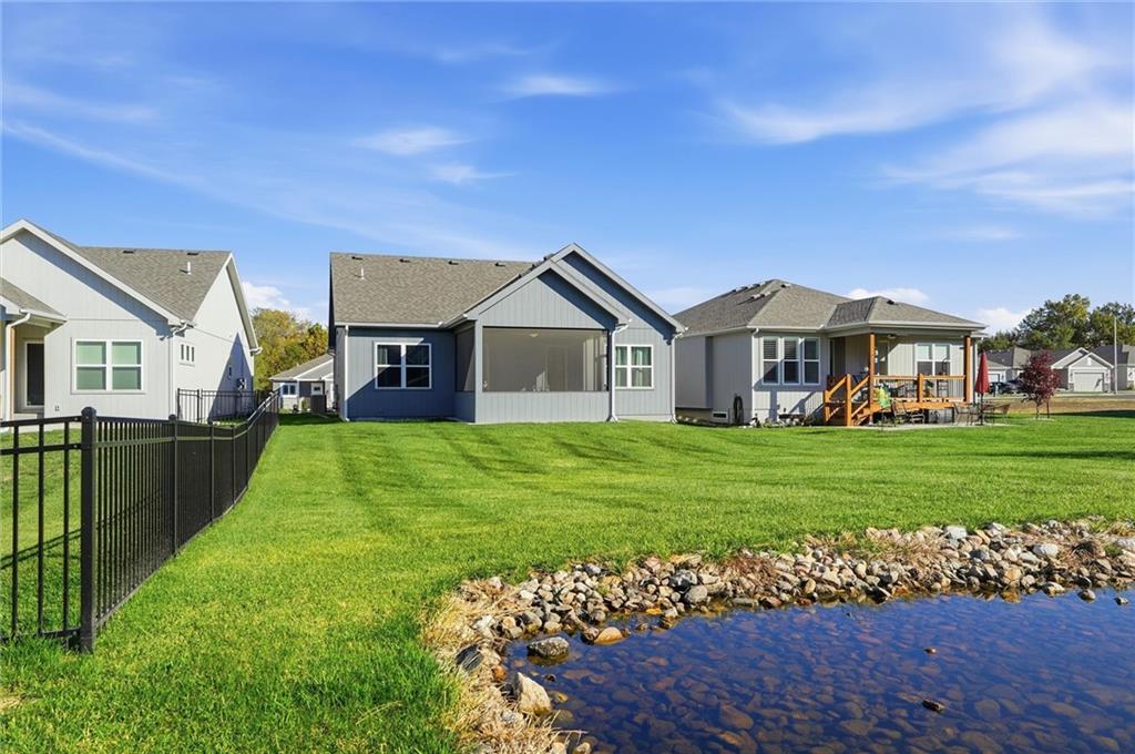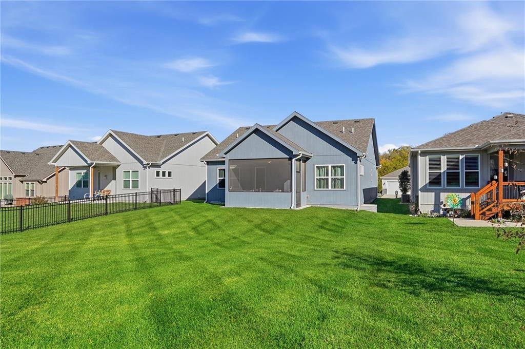 BETTER THAN NEW, FULLY UPGRADED AND MAINTENANCE PROVIDED! This stunning 2-year-old home offers luxury, convenience, and comfort in a beautifully designed single-family ranch package. Featuring 3 bedrooms, a 4th non-conforming bedroom (perfect for an office or additional living space), and 3 full bathrooms, this home is completely turnkey, inside and out and shows like new. The main floor has everything you need: an open-concept layout with wood flooring, granite countertops throughout and laundry. Two spacious bathrooms on the main level, including a primary suite with dual vanity and walk-in closet. The kitchen features a large island ideal for entertaining and flows seamlessly into the dining and living areas. Step out from your kitchen onto the builder-provided screened-in porch, perfect for enjoying spring through fall, and even cozy winter nights. Downstairs, the fully finished basement offers even more living space: a large family room, a third bedroom, a full bath, a 4th non-conforming bedroom and two private storage areas. At nearly 2,400 square feet, this home is ideal for singles, small families, or larger households looking for space to spread out and relax. Outside, you’ll find a professionally installed sprinkler system and maintenance-provided lawn care—including mowing, fertilization, and snow removal. Enjoy lush, golf-course-quality grass all summer long without lifting a finger. This is your chance to own a beautiful, like-new home with premium upgrades—at a pre-owned price. Move in, unwind, and enjoy the effortless lifestyle you deserve! Located just off of Shoal Creek Parkway and 169, enjoy easy metro access and proximity to local favorites: 8 miles to KCI, 10 miles to Smithville Lake, 7 miles to Zona Rosa, 18 miles to the Plaza, and 14 miles to Power & Light. HOA transfer fee: $500. Move in, relax, and enjoy upscale living with none of the upkeep!