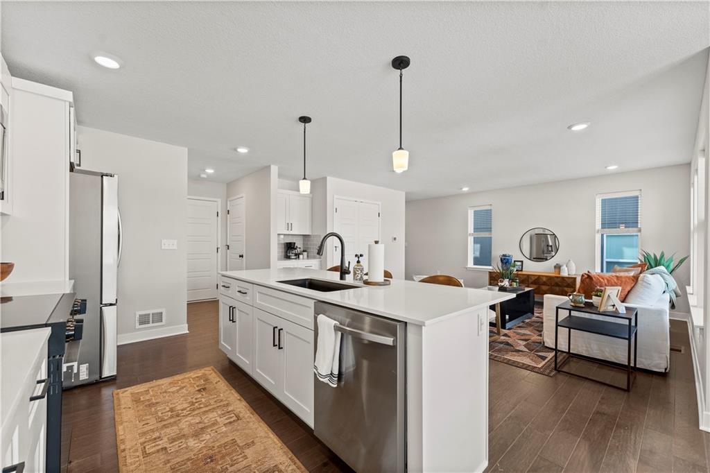 Our Saffron home plan with our Design Series 2, Package B is the ideal 2-story design for modern living. This thoughtfully crafted layout is perfect for entertaining, with an open-concept kitchen that effortlessly flows into the living and dining areas, creating a spacious and connected environment that’s perfect for hosting gatherings and everyday life. The main floor is also designed with convenience in mind, featuring a well-placed half bath and a generous pantry that offers ample storage space for all your kitchen essentials. Upstairs, you'll find four comfortable bedrooms, each designed with functionality and comfort in mind. The full bath on this level provides a practical and stylish solution, while the conveniently located laundry room makes daily chores a breeze. The primary bedroom is a true retreat, boasting a beautifully designed bathroom with double sinks and a large walk-in closet, providing plenty of storage. Looking for additional space? Consider finishing the lower level to include a rec room, another bedroom, and an extra bathroom, enhancing the versatility and functionality of your home. Please call to schedule time to discuss amenities, current promotions, and how we can help make the Bailey Farms community your new home!