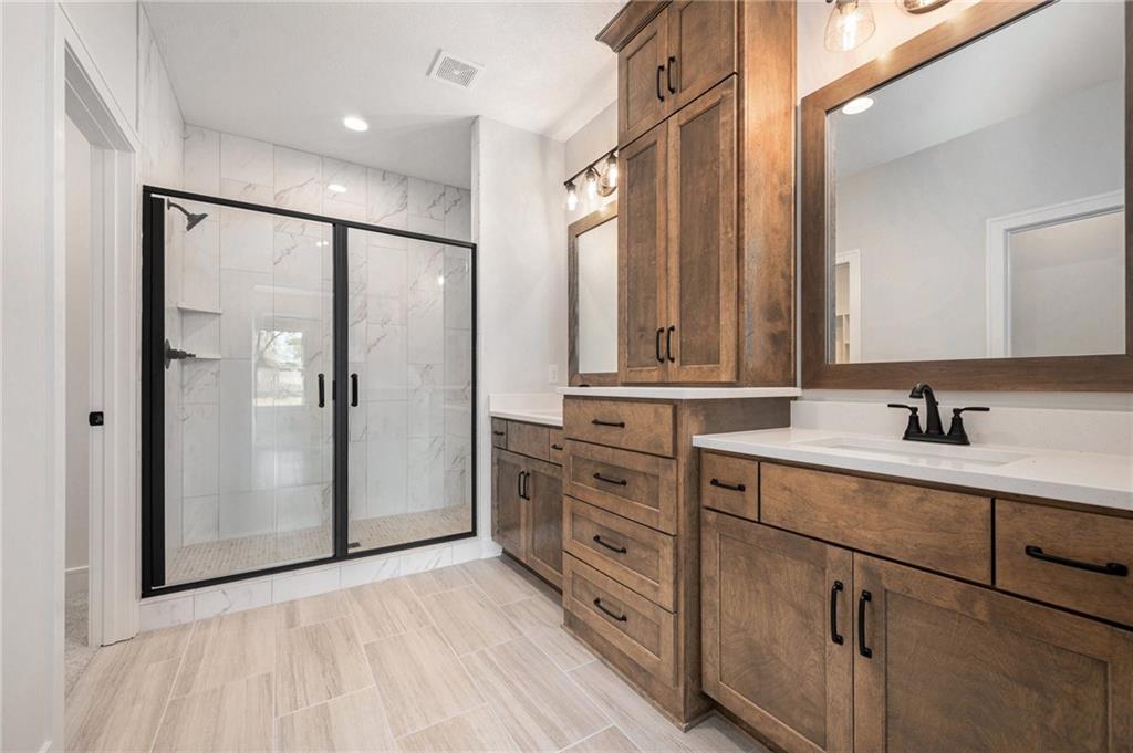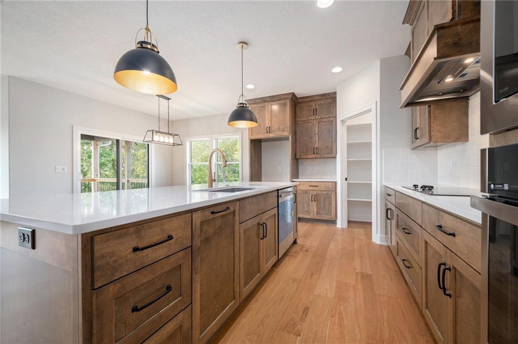 Completed – The Wyndham by Crestline Builders | Backing to Lawson Golf Course Welcome to The Wyndham by Crestline Builders, a stunning new reverse 1.5 story home thoughtfully designed to combine style, comfort, and functionality. Step inside and be greeted by a custom entryway that sets the tone for the quality and craftsmanship throughout. Down the hall, the open-concept living, kitchen, and dining space is sure to wow you! Light wood floors expand across the main level, highlighting a custom fireplace with decorative shelving and cabinetry. The designer kitchen features a stunning elongated island with seating for casual meals, a walk-in pantry large enough to impress any chef, and a dining area with access to the covered deck—perfect for seamless indoor-outdoor living. The primary suite offers a private retreat with an exceptional ensuite showcasing dual sink vanities with center storage, a custom walk-in shower, and a massive walk-in closet. Two secondary bedrooms, a full bath, and the laundry room complete the front wing of the home. The unfinished walkout basement offers endless potential for additional bedrooms, bathrooms, and recreation space—ready for your finishing touch. Set on a lot backing to the scenic Lawson Golf Course, this location offers a beautiful balance of tranquility and recreation right in your backyard. With approximately 1,850 square feet on the main level, a 3-car garage, and quality finishes throughout, this home is truly move-in ready. Don’t wait—make The Wyndham your new home today!