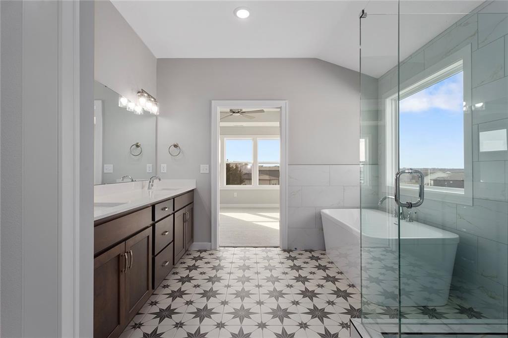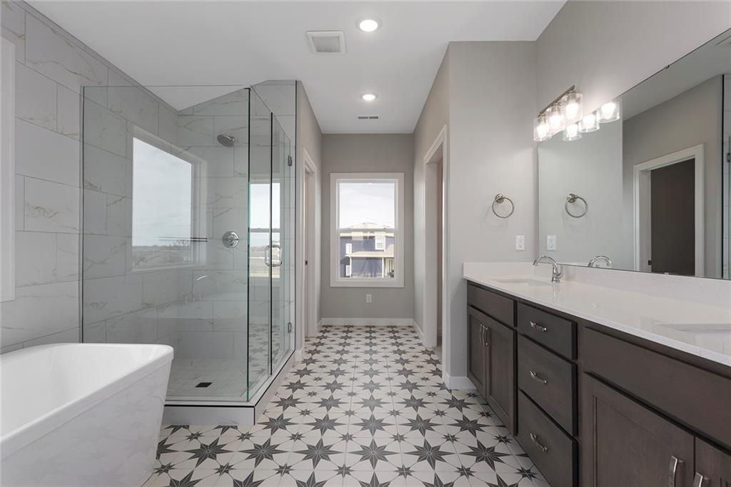 NOW MOVE-IN READY NEW CONSTRUCTION! Welcome to the beautifully designed Lexington plan by Avital Homes located in the heart of Overland Park. This 5 bed 4 bath 2-story incorporates thoughtful details and functional spaces, offering the perfect blend of style and comfort for today’s modern lifestyle. Step inside to find a flex room just off the entry, featuring a striking designer accent wall and a box vault ceiling—ideal for a home office, playroom, or formal sitting area. A main-level bedroom and full bath offer flexibility for all guests. The great room is built for entertaining, with a stylish tile-clad fireplace and seamless flow into the kitchen. Enjoy cooking on the gas cooktop, and keep drinks chilled in the walk-in pantry’s built-in beverage cooler. The mudroom is equipped with hooks and cubbies to keep everyday essentials organized and out of sight. A distinctive U-shaped staircase leads you upstairs to the spacious owner’s suite, where a box vault ceiling and walls of windows create a light-filled retreat. The spa-like en-suite bath features dual vanities, a free-standing soaking tub, and a large walk-in shower. The bath flows effortlessly into a generous walk-in closet that connects directly to the laundry room for added convenience. Don’t miss the opportunity to own this thoughtfully crafted home in one of Overland Park’s most desirable areas. **Note: Photos are of actual home.** The home is NOW MOVE-IN READY. Taxes & sizes are estimates.