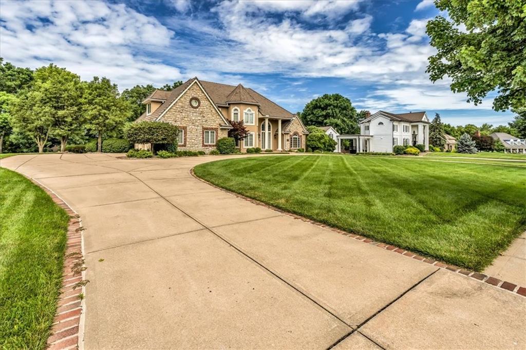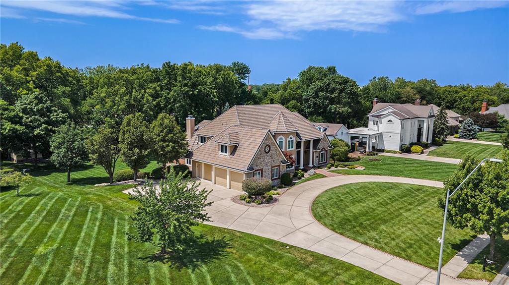 Welcome to a one-of-a-kind builder-owned estate in the prestigious Thornhill neighborhood of Kansas City. This exceptional 8,000+ sq ft home offers luxury living at its finest, with unparalleled features and beautifully landscaped grounds that make it truly unique. This estate provides ample room for both relaxation and entertainment, featuring spacious living areas, two offices, and a gym. Gourmet kitchen & outdoor dining are the heart of the home complemented by a massive covered deck with a built-in grill – perfect for alfresco dining. Enjoy the outdoors year-round by the beautiful fire pit area near the huge covered patio. Adding to the home's grandeur is an enormous circle driveway and side entry garage. The property is highlighted by fresh paint, refinished hardwood flooring, and epoxy-coated garage floors, giving the home a polished look. Retreat to the spectacular primary bathroom, complete with a steam shower and luxurious finishes that create a spa-like experience. The home’s concrete roof ensures longevity, while the meticulously maintained landscaping enhances its curb appeal. This extraordinary estate in Thornhill is a rare find that offers both luxury and comfort. Don’t miss the opportunity to make this unique home yours! In addition, the location to local restaurants and the airport are icing on the cake. If you enjoy golfing than drive your golf cart over to Tiffany Greens for a round - please inquire for memberships at Tiffany Greens.