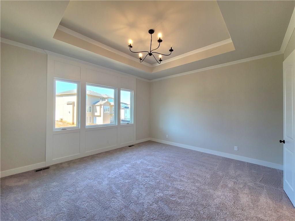 The Aspen floor plan by Coventry Builders. Move-in-Ready! This 4 bedroom + Loft, 4.5 bath, 1.5 Story home features a large front porch. The Great Room has a soaring two story ceiling and the open living area is complete with a beautiful fireplace, built-ins, and tons of natural light. The kitchen has lots of cabinet and countertop space and a huge island. The large pantry is adjacent. Beams in the Dining room ceiling add to the WOW and the Dining room opens to the large covered deck. The main level features a 2nd bedroom with it's own bath and walk-in closet. The spacious main level Primary Bedroom opens to the luxurious Mbath with a walk-in shower and free-standing tub. The large Master closet features plenty of storage possibilities. Connected to the master closet is the laundry room with a quartz countertop. The second level features a large loft that overlooks the Great Room. There are two additional spacious bedrooms on this level. This home is on a Daylight lot, has a 3 car garage and a large covered deck. Don't miss seeing this home! Community amenities are open and include: clubhouse w/ fitness room, dog spa, gathering room and catering kitchen; 4 pools including a zero entry outdoor pool, outdoor kiddie pool, Indoor lap pool and indoor machine pool; sport court for basketball and pickleball, and playground. The new Blue Valley elementary school, Aspen Grove, is located in the center of the community.