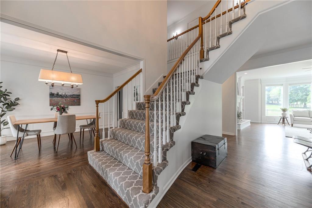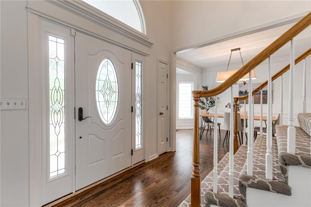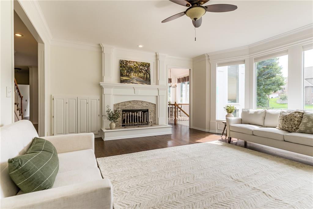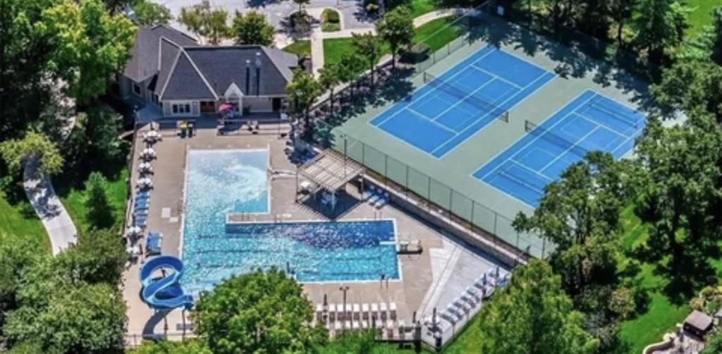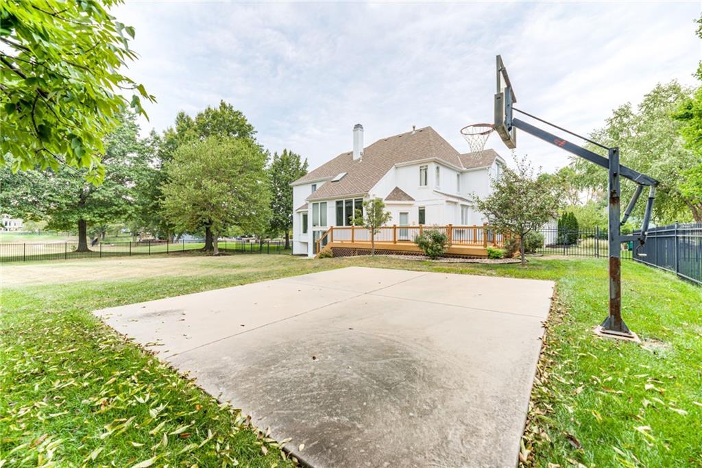 Stunning 2 Story Home on a Golf Course Lot - Meticulously Maintained and Move-in Ready. Set on a spacious landscaped lot, this nearly 5,000 square foot home offers the perfect blend of luxury, comfort, and functionality. This home is positioned so that the tee box faces away from the property - allowing you to enjoy serene views of the the course without the worry of golf balls landing in the backyard. As you approach, you're welcomed by a charming red brick sidewalk leading to the front door, and a wrap around porch that invites you to relax & enjoy the peaceful setting. Step inside to find beautiful hardwood floors throughout the main level, adding warmth & elegance to the open floor plan. Enjoy the see-thru fireplace set between the kitchen & the living room. This home is designed for entertaining and everyday living, featuring expansive living areas & multiple outdoor spaces. A large Trex deck where you can enjoy your morning coffee. A basketball court for some family fun and plenty of lawn for other outdoor activities. Even your four-legged family members will feel right at home with a sliding glass door that has a built in doggie door. The basement has a spacious 5th non-conforming bedroom, full bathroom, large living space, & a huge storage room. Residents of Nottingham on the Green enjoy access to a variety of exceptional amenities, including an Olympic- size swimming pool featuring a huge waterslide, diving board, and on-duty lifeguards for a fun and safe swimming experience. The community also offers Pickleball/Tennis courts, as well as a clubhouse available for resident use - perfect for gatherings, events, or relaxing with neighbors. This home offers peace of mind and timeless appeal. Whether you're enjoying the golf course views or relaxing in your own private oasis this property offers a rare combination of space, quality and location.