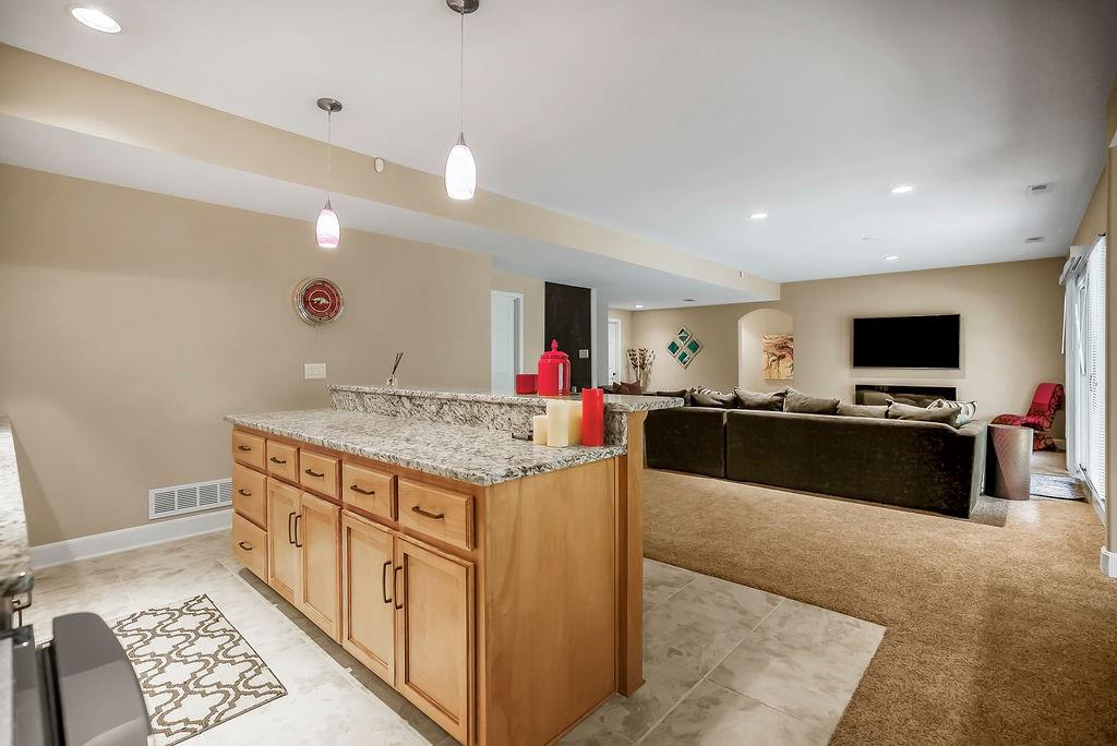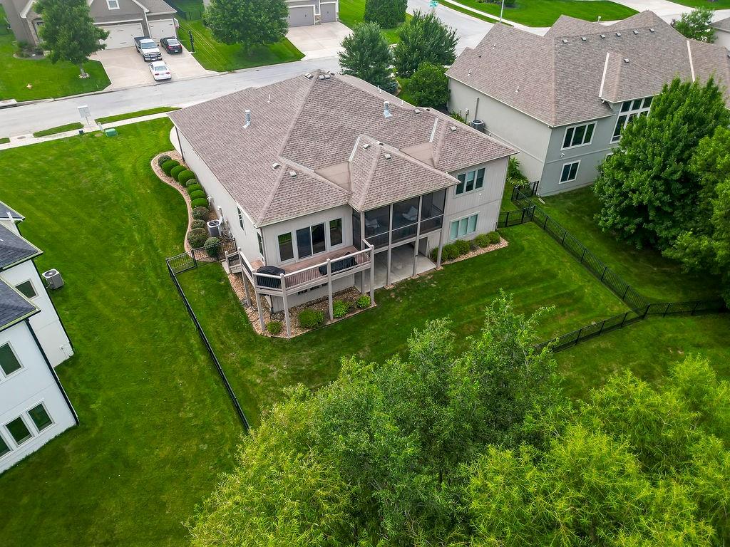 Seller is motivated! Bring us an offer! NEW ROOF to be installed prior to closing!! Experience luxury living in this beautifully maintained reverse 1.5-story home. The great room features an elegant electric fireplace, custom built-in shelving, and a striking wall of windows with custom-made awnings that fills the space with natural light. Custom tile extends throughout the main living area upstairs. The spacious kitchen offers granite countertops, a breakfast bar, and a walk-in pantry, all flowing seamlessly into a sunlit dining area surrounded by windows. Just off the dining space, a brand new screened-in porch provides the perfect place to enjoy the stunning wooded views year-round. The main-level primary suite includes a built-in fold-away desk, a large walk-in closet, a gleaming glass shower, Jacuzzi tub, and dual raised vessel sinks set in granite. A second bedroom and full bath are also located on the main level, along with a laundry room complete with sink and cabinetry. The finished lower level shows like new and expands the living space with a generous family room, wet bar, and a dedicated area for a pool table or games. Pool table stays! You'll also find a third bedroom with a walk-in closet, a full bath, and a fourth non-conforming bedroom with a large closet. Outside, the wraparound deck extends along the back and side of the home and connects to stairs leading down to the fully fenced yard, offering convenience and beautiful natural views. The property is part of a well-appointed neighborhood that includes a clubhouse and event center, fitness center, three swimming pools, tennis and pickleball courts, walking trails, a community gazebo, playground, and acres of green space. With easy access to major highways and just minutes from Lake Jacomo and Blue Springs Lake, this home offers the perfect balance of comfort, convenience, and outdoor recreation.
