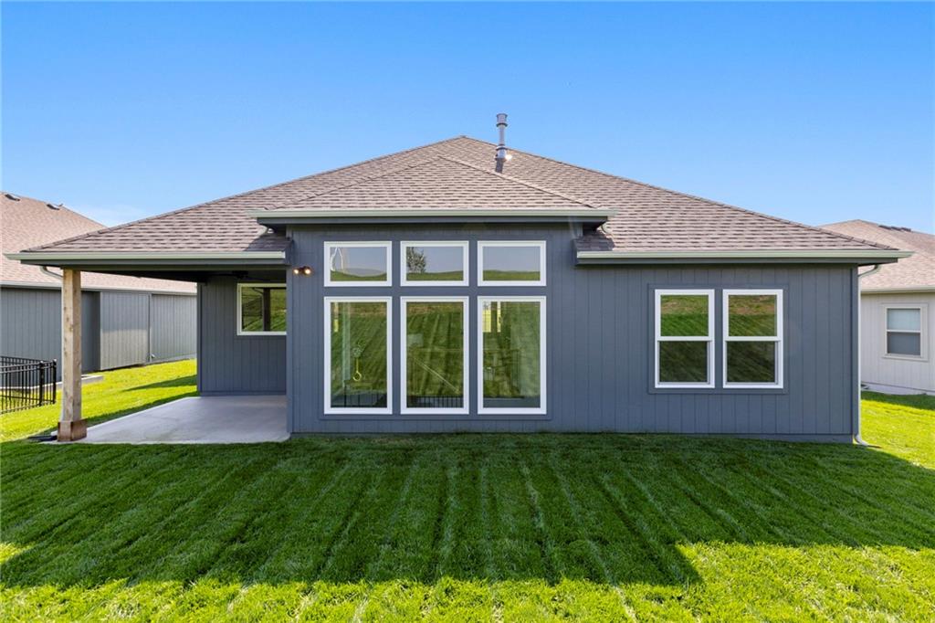 ** Exceptional quality meets effortless living in the final Patriot Home available in Maintenance Provided Cadence Villas.This home is finished.** Resize your living space with ease and enjoy the benefits of maintenance provided living in the Truman by Patriot Homes! Located on a secluded cul-de-sac homesite, this Reverse 1.5-story open concept floor plan includes a stone-clad traditional façade, three-car garage, and covered front porch. The 8-foot front door leads into a spacious entry with a 12-foot ceiling highlighted by an elegant trim treatment and chandelier. Hardwood flooring throughout the main entry, living and kitchen accentuates the seamless flow between the dining room, kitchen, and great room while a bedroom and full bathroom just off the entry makes for an ideal guest or bonus room. Arguably the showpiece of the home, the kitchen is outfitted with expansive quartz countertops, large center island, shaker style custom cabinetry, and stainless steel Samsung appliances. Opposite the kitchen is a cozy great room with a gas fireplace, built-in bookshelves, floor-to-ceiling windows, and an 8-foot sliding glass door that opens to a covered patio. A private hallway leads to the master suite showcasing an exquisite freestanding soaker tub, zero entry walk-in shower, Bluetooth audio system, and a sizeable walk-in closet with third tier pull down rods. The Truman comes equipped with additional conveniences such as 8-foot tall garage doors with an included belt drive opener on main door, an irrigation system, high efficiency 96% Lennox furnace, whole house humidifier, and 50-gallon electric water heater. Homeowners also have an annual HOA fee of $600. This villa is in Prestigious Phase 1, Cadence Villas, a Hunt Midwest Maintenance Provided Community.