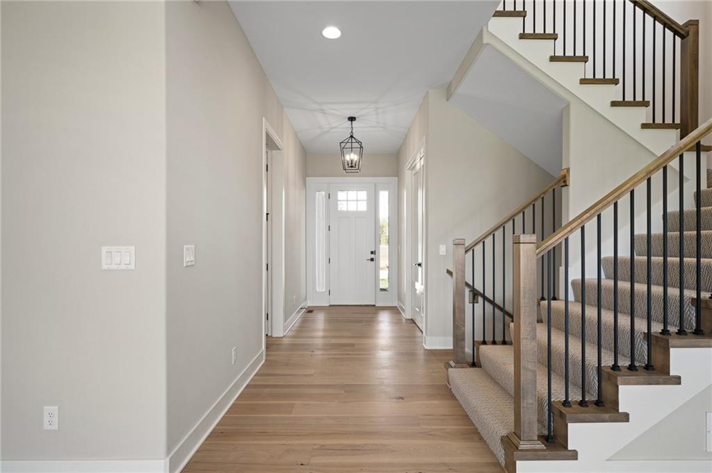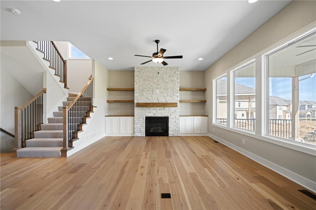 The Modello by Pauli Homes offers timeless design, modern comfort, and meticulous craftsmanship—now available as a completed spec home in Woodland Hills, Olathe. This stunning two-story features an open-concept main level designed for everyday living and effortless entertaining. The spacious Great Room centers around a sleek fireplace and flows seamlessly into the chef’s kitchen with custom cabinetry, large island, walk-in pantry, and gas range. A light-filled dining area opens to the covered patio, creating the perfect indoor-outdoor connection. Upstairs, the Primary Suite serves as a relaxing retreat with a spa-style bath, walk-in dual head shower, double vanities, and a generous walk-in closet. Secondary bedrooms are thoughtfully sized with access to beautifully appointed baths. Located in the highly sought-after Woodland Hills community, this home combines luxury living with everyday convenience—close to top-rated Olathe schools, neighborhood trails, and the future pool. 4 Bedrooms • 3.5 Baths • 3-Car Garage • Award-Winning Pauli Homes