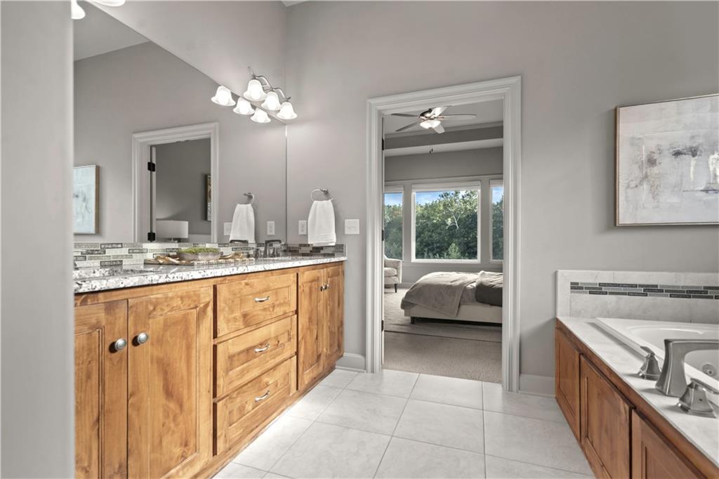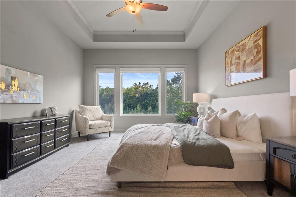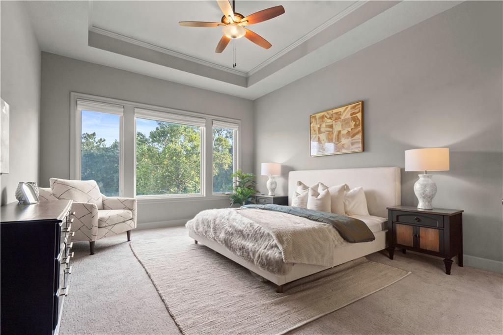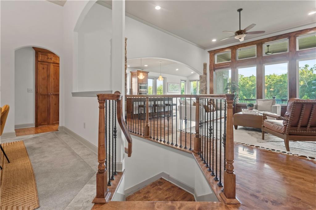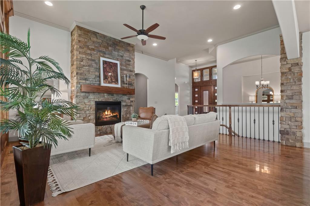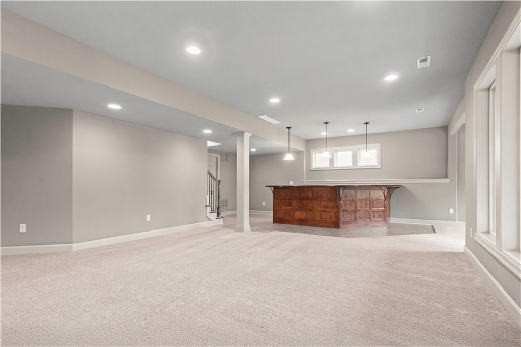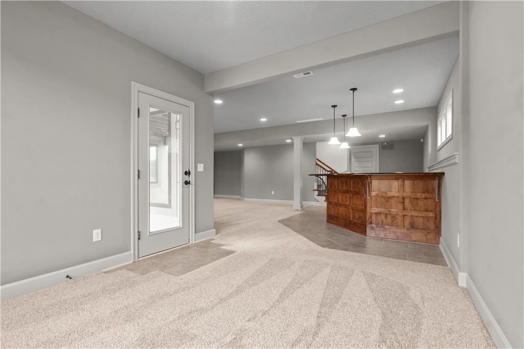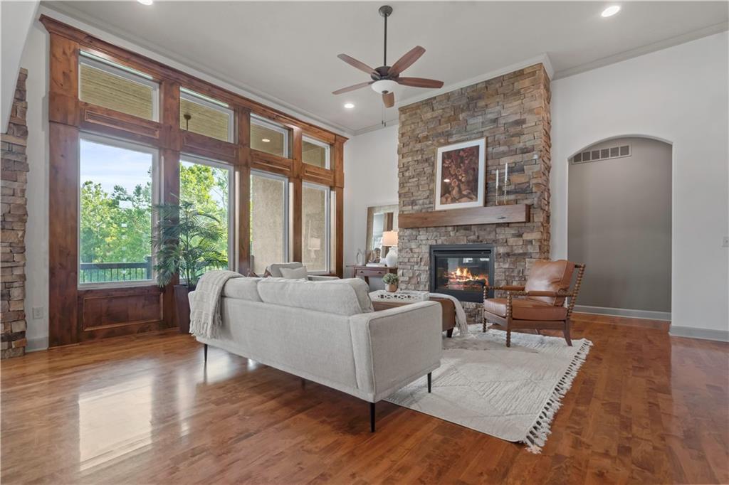 Custom reverse 1.5-story by award-winning builder B.L. Rieke, nestled in the prestigious Canyon Farms Golf Club, offering breathtaking views of rolling hills, and manicured golf greens. From the moment you arrive, the stone-accented exterior and welcoming entry set the tone for what’s inside. The main level features soaring ceilings, walls of windows, and an open floor plan designed for both everyday comfort and easy entertaining. A gourmet kitchen with custom cabinetry, oversized island, granite counters, high-end stainless-steel appliances flows seamlessly into the hearth and great rooms. The spacious primary suite boasts gorgeous golf course views, a spa-like bath and walk-in closet. A second main-floor bedroom doubles perfectly as a guest room or private office. The walkout lower level is designed for gathering or game day watching —complete with a stylish wet bar, large living area, and two additional bedrooms, each with their own full bath and walk-in closet. Hardwood floors, stacked stone accents, and exquisite trim details add warmth and character throughout. Enjoy sunsets from the deck or patio while overlooking the golfers teeing off from the hole 15 of Canyon Farms. Whether entertaining friends or savoring a quiet evening, this home offers the feeling of a Colorado mountain retreat—without ever leaving Kansas. Tons of upgrades including electronic shades, whole house Culligan water purifier and more! Located minutes from Lenexa City Center and major highways, this first-rate golf community offers convenience, luxury, and unbeatable views. Homes in this community do not resell often - don’t miss the chance to make this retreat your home.