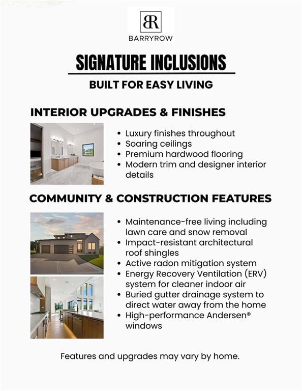 Luxury Living in the Heart of BarryRow — The Platino Floor Plan! This stunning two-story home offers 6 bedrooms and 4.5 bathrooms with a thoughtfully designed main level featuring a private office at the entry, a functional mudroom, and an open, light-filled layout perfect for entertaining. The kitchen shines with a large waterfall quartz island, custom frameless cabinetry, gas range, and custom LED lighting, all paired with high-end finishes throughout. The exterior blends stucco, brick, and cypress accents, while the interior includes 8’ solid-core doors and Andersen energy-efficient windows. Built for comfort and efficiency with 2x6 framing, spray-foam attic sealing, double drain tile waterproofing, ERV ventilation, radon mitigation, and dual Amana high-efficiency heating and cooling systems. Relax outdoors on the private Trex balcony off the primary suite. The home also includes a 3-car tandem garage and is located in a maintenance-provided community, offering effortless living with the luxury and quality BarryRow is known for. Limited availability. Ask about special closing incentives, in-house financing options, and the builder’s 3-2-1 interest rate buy-down on all new homes. Schedule your private tour today.