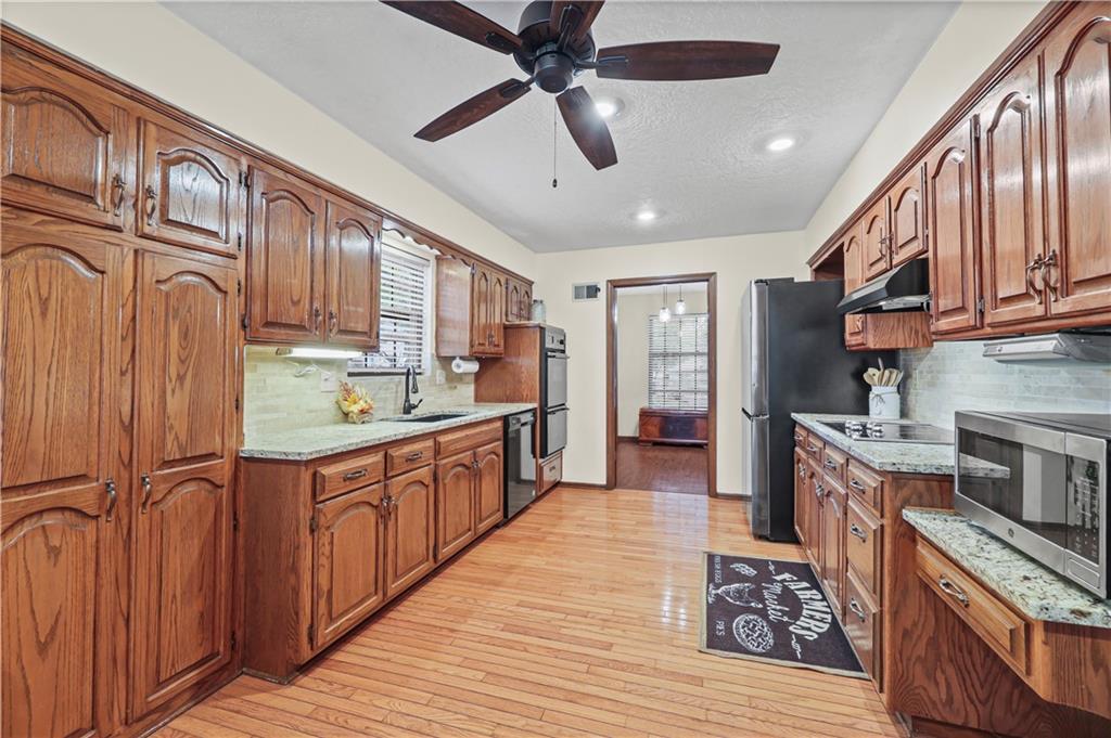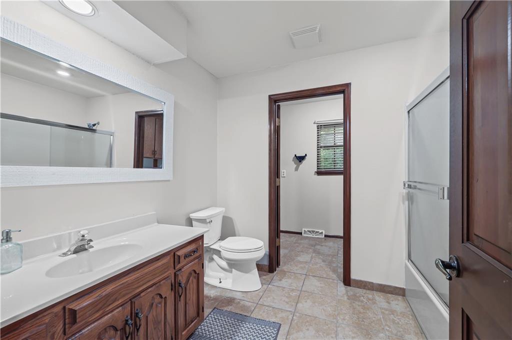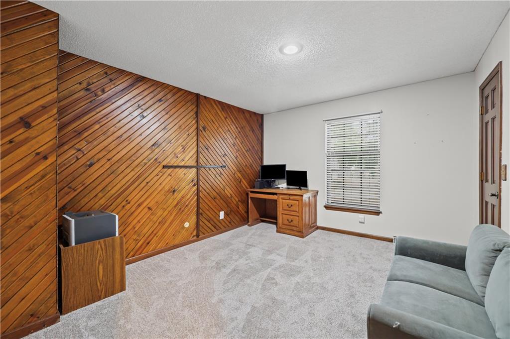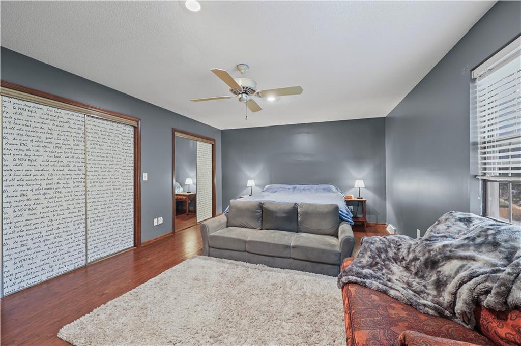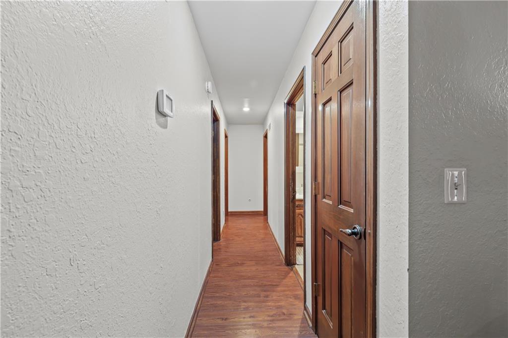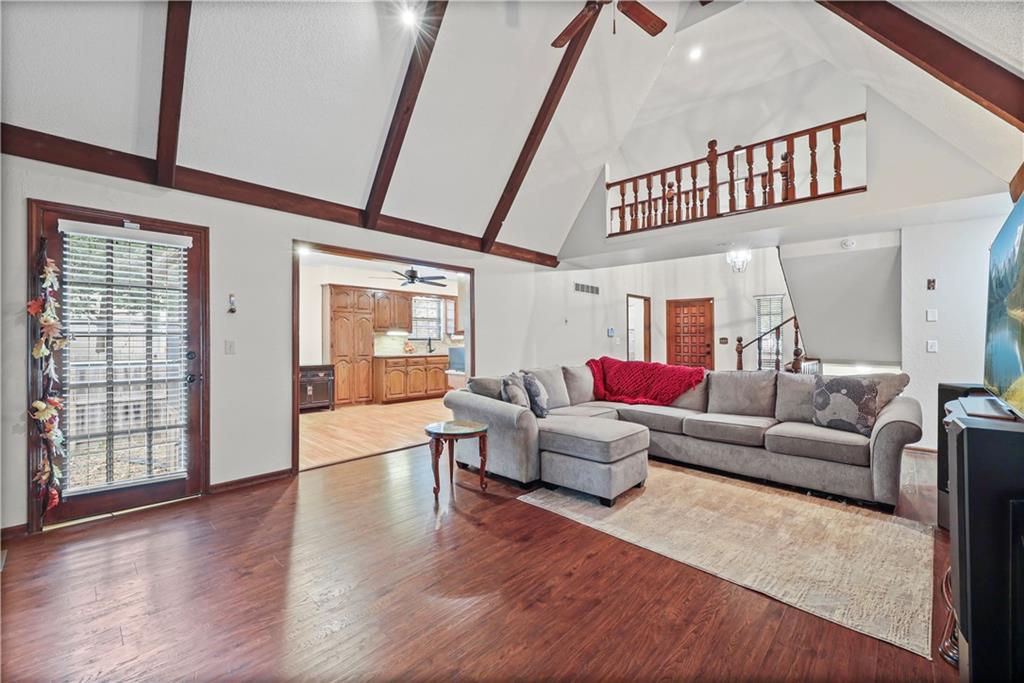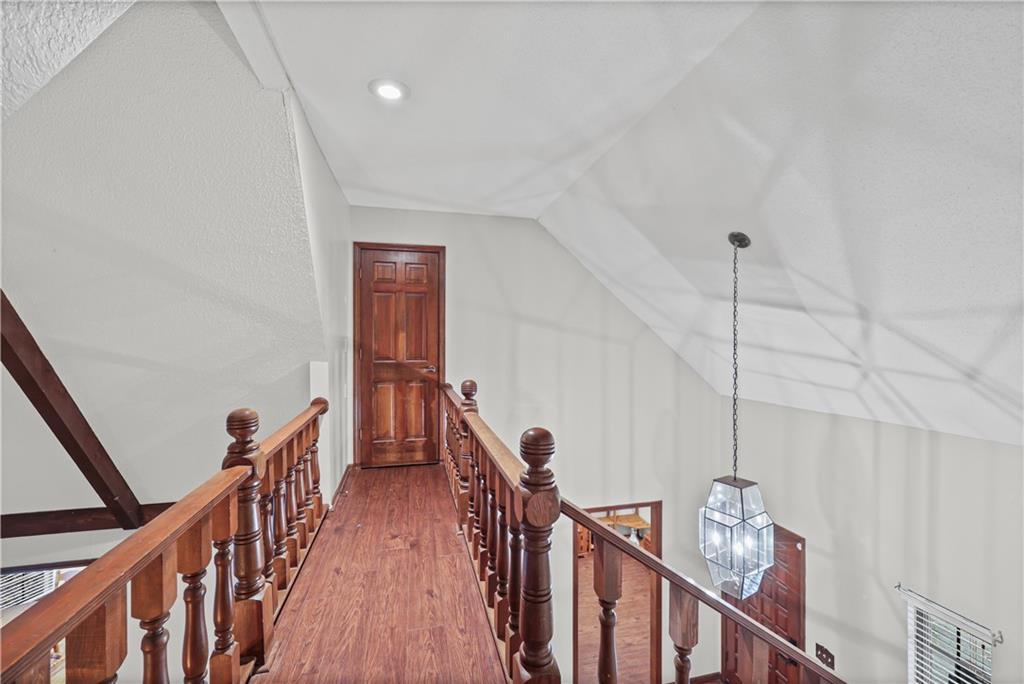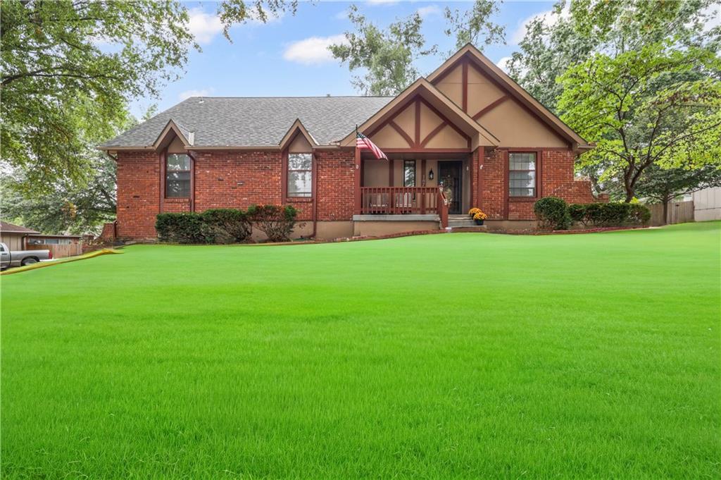 Come inside and enjoy a bright 2-story entry showcasing a dramatic catwalk & a vaulted great room with exposed beams, a 2-story fireplace, and built-in bookcases perfect for storage and display. Combination of luxury plank vinyl, hardwood floors flow (kitchen) throughout the main living space, creating a warm and welcoming atmosphere. The formal dining room offers flexibility to use as an office, playroom, or space for entertaining. The main level features three bedrooms, including two that share a convenient Jack-and-Jill style en-suite bath. Off the main hall, is a spacious bathroom that leads to the laundry room for added functionality. Upstairs, the large master suite is a true retreat with dual closets and dual vanities. A walk-in attic offers convenient storage across from the master suite or potential added space to convert to an office space, sitting room or perfect for gaming. The lower level provides even more opportunity with a customizable space featuring a stubbed-in bathroom, fireplace, and access to the oversized garage with built-in workbench, and private entry. Additional highlights include wiring for a security system, stubbed central vacuum (unit not included), and a large fenced backyard with patio that provides privacy for outdoor entertaining. Newer fridge, roof, carpet, hot-water heater, and furnace. Seller's have gone above and beyond to ensure this home is ready for the next buyer. Great access to shopping, dining, and area parks. Conveniently located, 5-6 min from I-70, making commutes to downtown Kansas City or other parts of the metro area both easy and efficient.