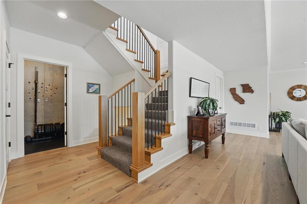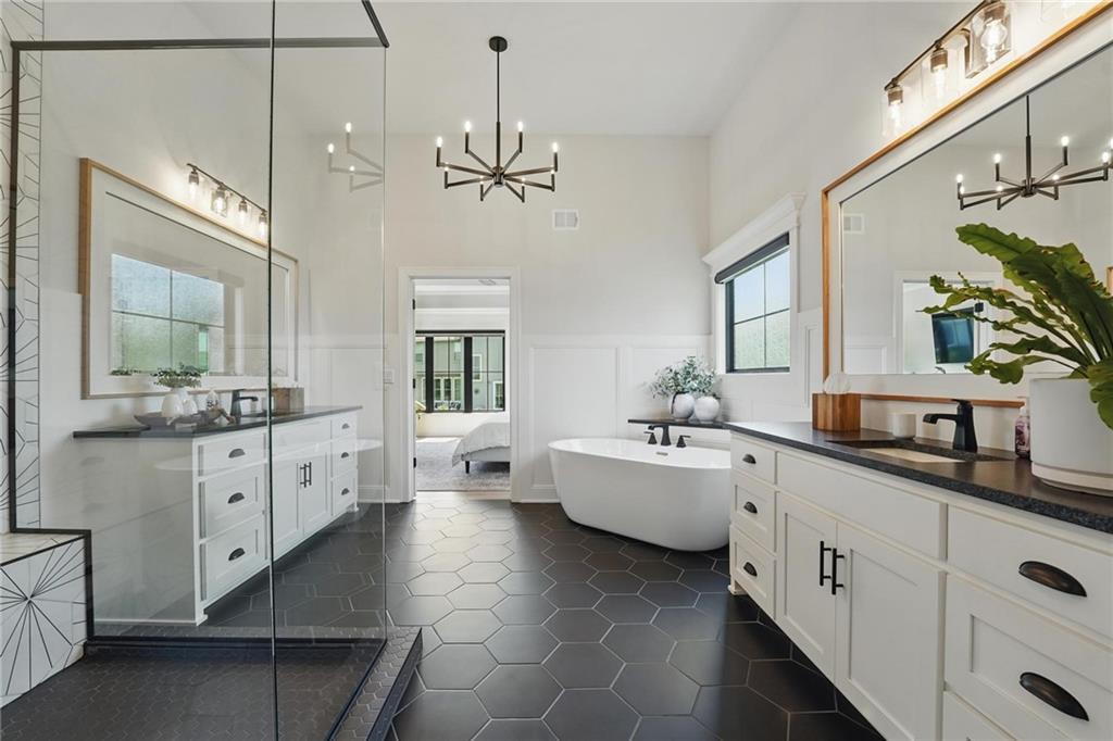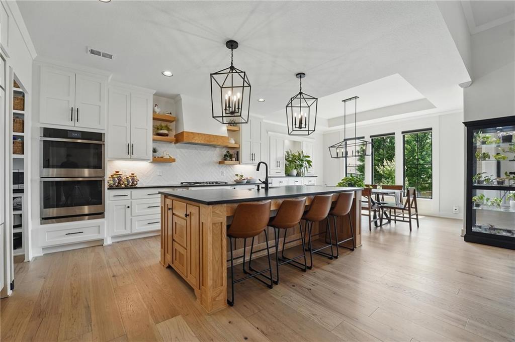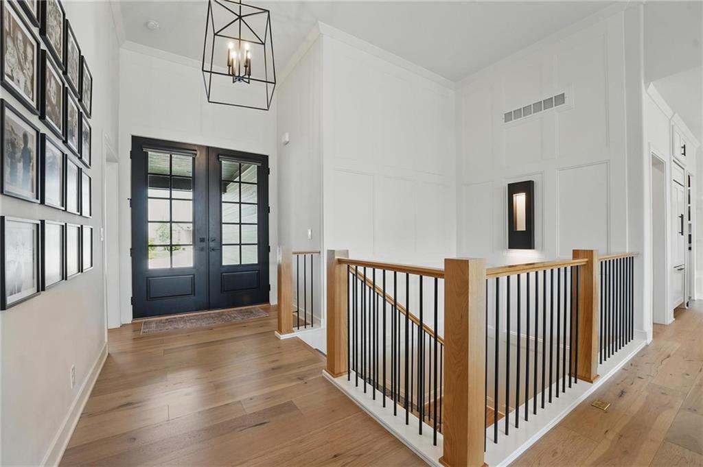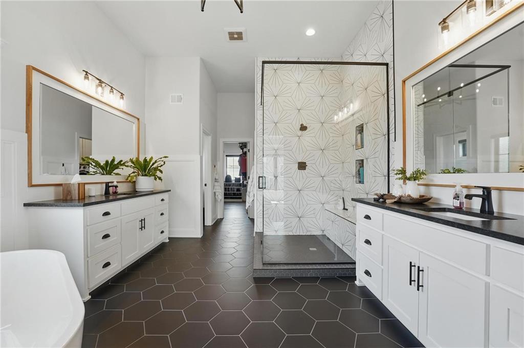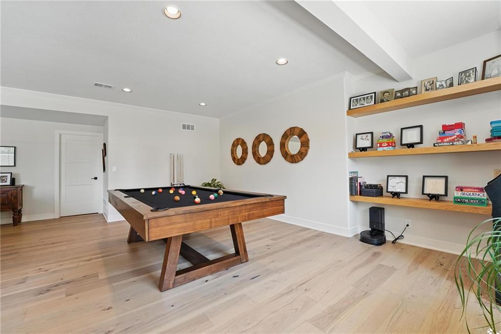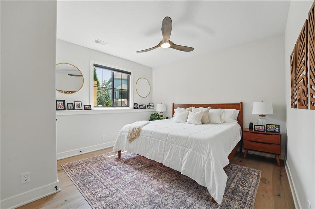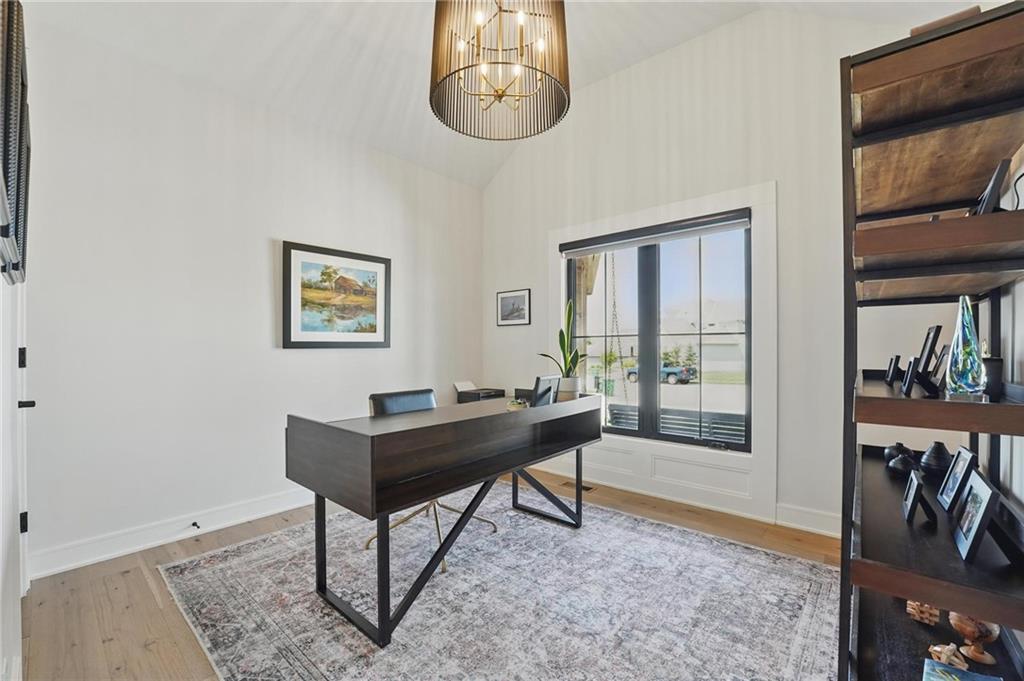 Welcome to this impeccably designed Jefferson EX Reverse 1.5-story home, perfectly situated on a premium cul-de-sac lot With higher end outside light packaging that complements the home. This spectacular home backs to lush green space and walking trail. This showstopper blends luxury and functionality, offering high-end finishes throughout and a setting that feels like a private retreat. Step inside to find 7.5” wide-plank hardwood flooring, custom lighting, and upgraded ceiling fans in every bedroom. The open-concept main level showcases a gourmet kitchen with GE Profile appliances, walk-in custom pantry with built-in baskets, Doubles ovens and a large island perfect for entertaining. Programmable blackout shades throughout the home provide comfort and energy efficiency. The luxurious primary suite features a spa like bath, oversized custom closet with built-in pull-down rods, and direct access to the laundry room for added convenience. Secondary bedrooms are spacious and thoughtfully appointed. Enjoy the outdoors year-round from the screened-in porch and expansive pergola-covered patio. The beautifully landscaped backyard includes drip irrigation, raised planter beds, and a custom dog shower for your furry companions. Additional upgrades include a radon mitigation system, heat circulators, water softener and filtration system, and full-yard automatic sprinkler system. Skip the timelines of building and stress when you can have all the modern features you have been dreaming of with all the upgrades and move-in ready convenince. Neighborhood perks include a community pool, playground, paved walking trails, and quick access to Heritage Park and the Player Golf Course