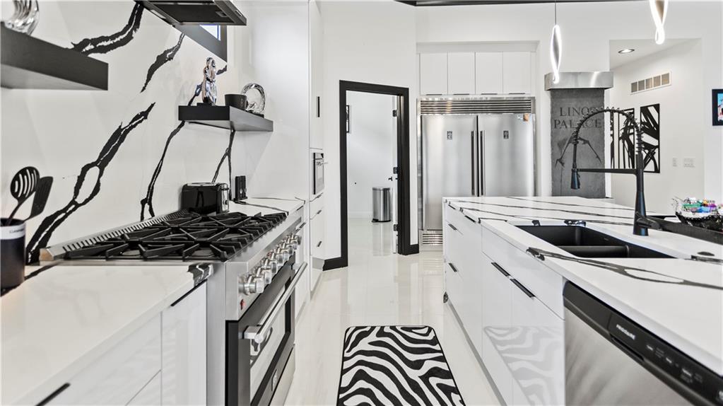ALL ZERO ENTRY! 2 YEAR OLD TURN-KEY CONTEMPORARY VILLA STYLE CUSTOM HOME! Amazing lake views! Owner is being transferred. Raised Grand entry with 25 foot ceilings and custom double doors. Custom tile throughout $30K. Italian like custom built in appliances $20K. Quartz waterfall island, matching countertops and range hood wall $20K. Oversized crown molding throughout. Contemporary white flat panel cabinets $15K. Wireless under the cabinet lighting kitchen and master bedroom $5K. Main bedroom Geometric Accent wall $2K. Pantry with custom reveal shelving. Concrete sidewalk to lower level $10K. Supported first floor deck with 2 person hot tub $10K. Screened in deck $2K. Zero entry main bathroom with oversize jetted tub, full granite slab shower and matching vanity $10K. Main walk-in closet floor to ceiling storage and reveal shelving. Custom Paint Int. & Ext. $10K. Main Floor laundry with new W&D $2K. 70in Electric fireplace with floor to ceiling custom Quartz wall $10K. 4 Mounted flat Screen TV's 50-85in with remote controls and Int. & ext. surround sound $10K. Central vacuum with 2 sets of tools $5K. HVAC has Active Pure (UV light) technology installed $5K Basement Upgrades and Finishes $100K, Lockout unit with private entrance. 10ft basement walls $15K. 2 Bed (walk-in closets & ceiling fans), 1 Full Bath. Full Media room with 60in Electric Fireplace and Surround Sound. Over sized wet bar with Refrigerator & DW with custom granite counter tops. W&D Laundry Room. Storage under the steps. Wine Cellar framed. Retaining Wall installed $10K. Kenneth Estate maintenance provided cottages.