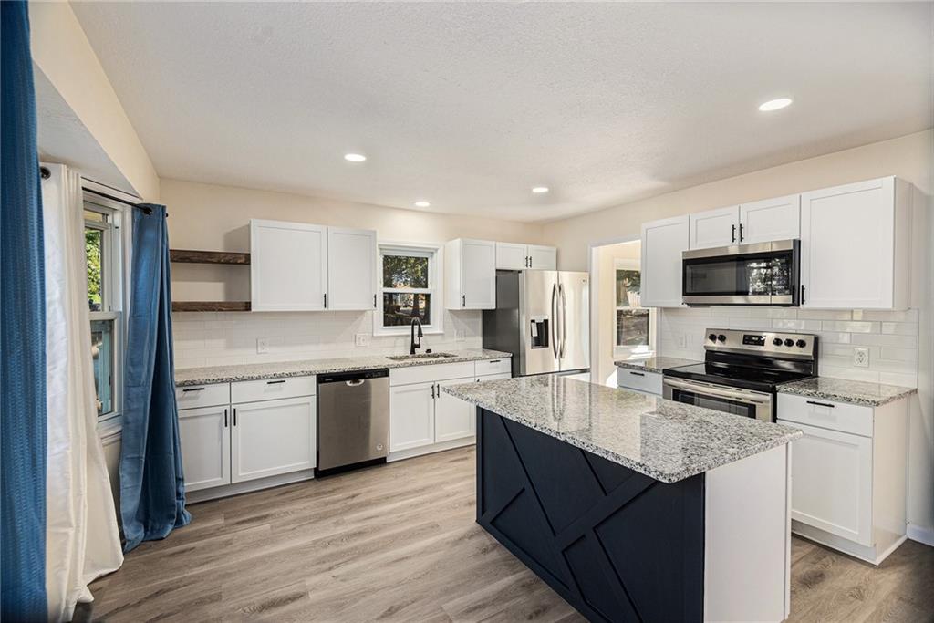 This beautifully remodeled raised ranch offers 4 bedrooms, 3 full bathrooms, and a spacious 2-car garage. Step inside to find modern updates throughout, including newer LVP flooring, fresh carpet, and interior paint. The remodeled kitchen showcases newer cabinetry, granite countertops, stainless steel appliances (fridge included), a center island, and updated fixtures, faucets, and lighting. A charming fireplace in the dining room creates added ambiance, perfect for gatherings. Major improvements include a new HVAC and water heater (2023). The finished basement expands your living space with a large recreation room, laundry room, 4th bedroom, and 3rd full bathroom. In 2025, the basement was refreshed with new flooring and paint. The sewer line has also been recently augered for added peace of mind. Enjoy outdoor living with a freshly stained deck, fenced backyard, and spacious 2-car garage. This move-in-ready home blends comfort, style, and character with all the big updates already complete!