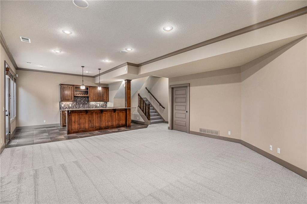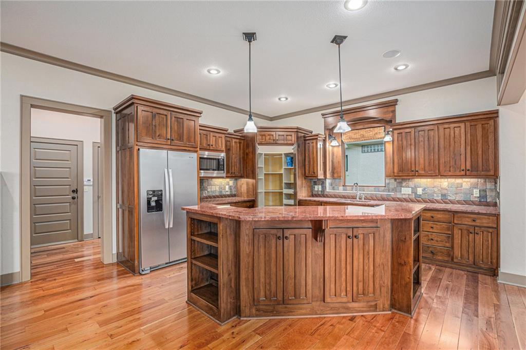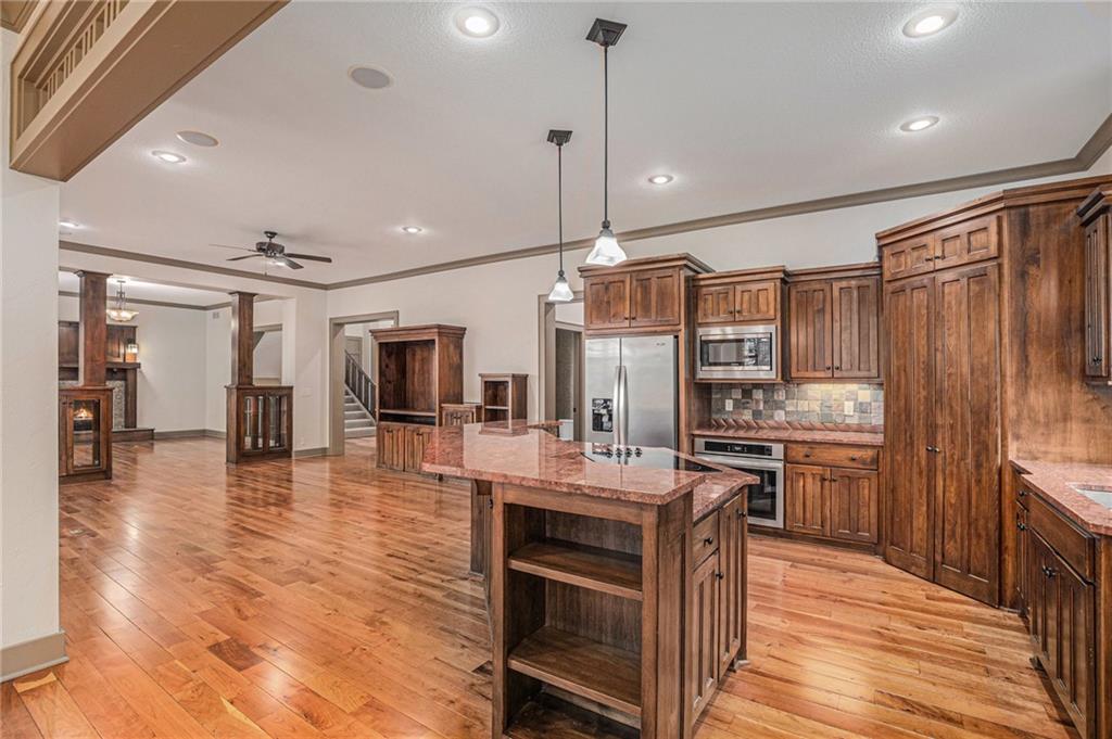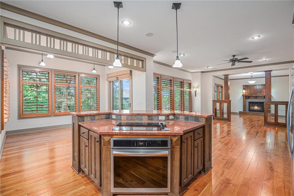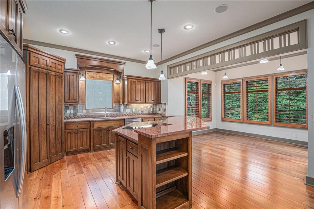 This five-bedroom, two-story Craftsman with a timeless Spanish tile roof blends classic character with modern comfort in one of Lenexa’s most desirable neighborhoods—Canyon Creek by the Park. With just one owner, this home has been lovingly maintained and beautifully refreshed with new paint, new carpet, and refinished hardwood floors. A beautifully landscaped walkway leads to the front entry, where you’ll be welcomed by 12-foot ceilings, wainscoting, and built-ins that highlight the craftsmanship throughout. The heart of the home is the spacious kitchen, complete with a hearth room and an oversized eat-in area—large enough to host holiday gatherings or entertain with ease. This space flows seamlessly onto the 1-year-old composite deck, which overlooks a professionally landscaped backyard featuring a retaining wall and rock bed garden. Upstairs, you’ll find four bedrooms, including a primary suite with a bright sitting room, perfect for unwinding or enjoying morning light. The finished walkout basement expands your living space with a family room, wet bar, and an additional bedroom—a perfect setup for game days, movie nights, or hosting guests. All mechanicals are under 5 years old, and the exterior has been freshly painted, ensuring peace of mind for years to come. This one-owner Craftsman masterpiece offers luxury, space, and lifestyle in a quiet Lenexa neighborhood with easy access to K-10 and a convenient commute to wherever your day takes you.