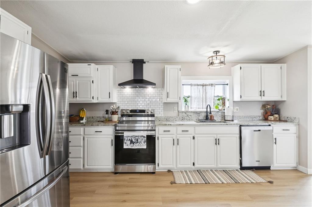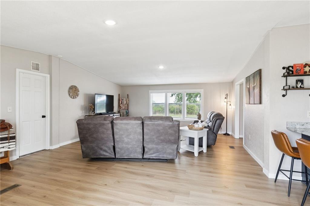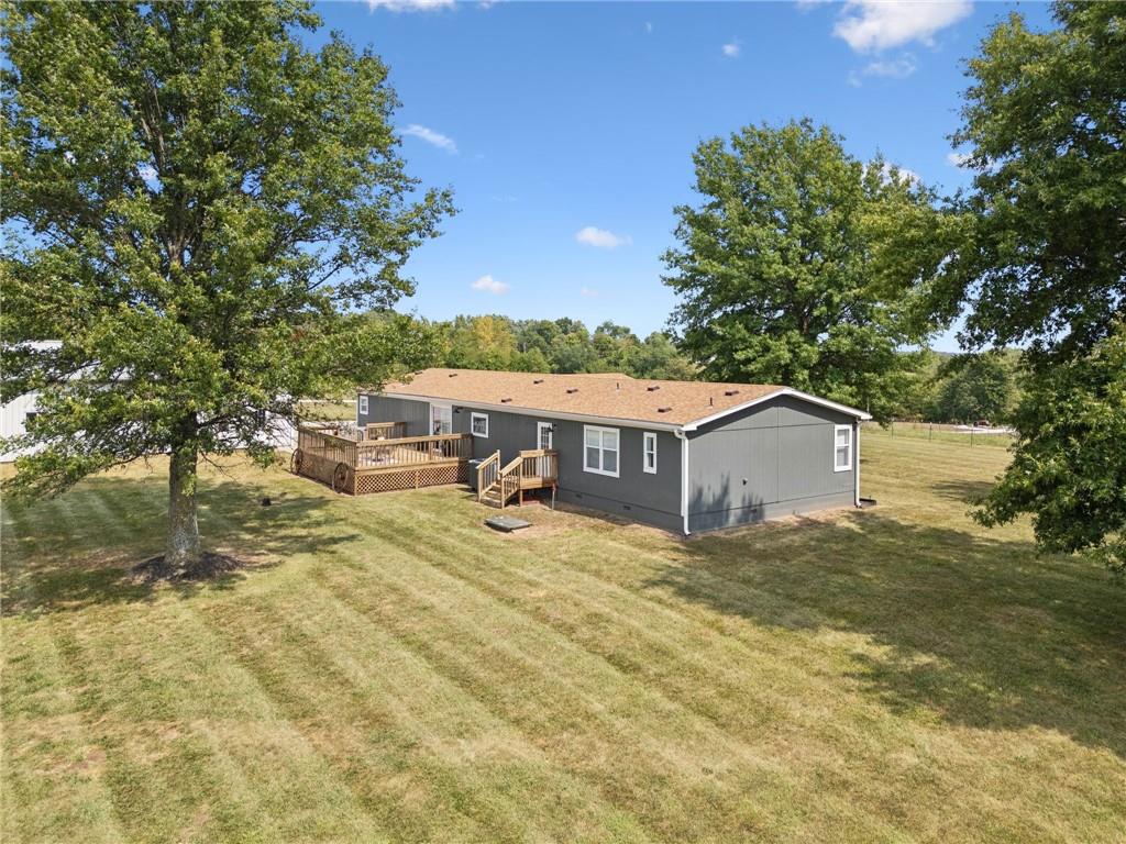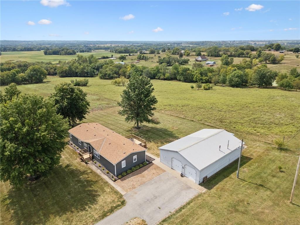 Stunning, fully updated 2,400 sq ft home nestled on 10 beautifully fenced acres with blacktop access and an exceptional setting. Sitting far back off the road and perched atop a hill, this home offers privacy, peaceful views, and a prime location that’s hard to beat. Inside, the home has been thoughtfully updated with new flooring, fresh paint, modern light fixtures, updated hardware, and granite countertops, creating a clean, move-in-ready feel. The split floor plan places the spacious primary suite on one end of the home, providing privacy and comfort, while the remaining bedrooms are located on the opposite side. Two bedrooms share a combined bathroom, and every room in the home features scenic views of the surrounding acreage. The large living room serves as the heart of the home and flows seamlessly into the open kitchen and formal dining area—perfect for entertaining. The kitchen also offers an eat-in dining space for casual meals and gatherings. A convenient laundry/mudroom with a half bath adds functionality for everyday living. Outdoors, the property truly shines with two impressive outbuildings. A 30x40 pole barn includes electric and water, while the 40x70 building features a concrete floor and electric, offering endless possibilities for storage, workshops, or business use. A storm shelter provides added peace of mind. This rare property delivers the perfect blend of updated living space, usable acreage, privacy, and accessibility—an ideal opportunity for those seeking space, versatility, and a beautiful country setting without sacrificing convenience.