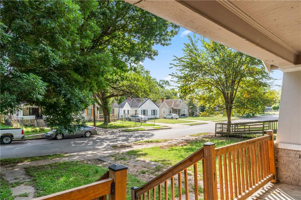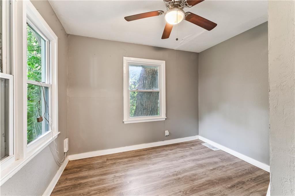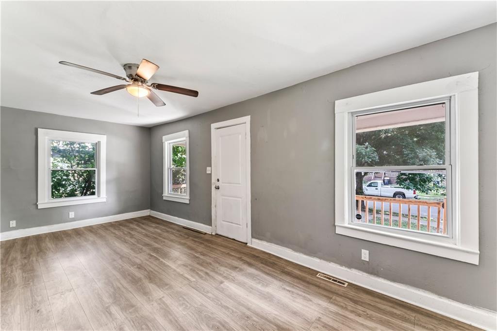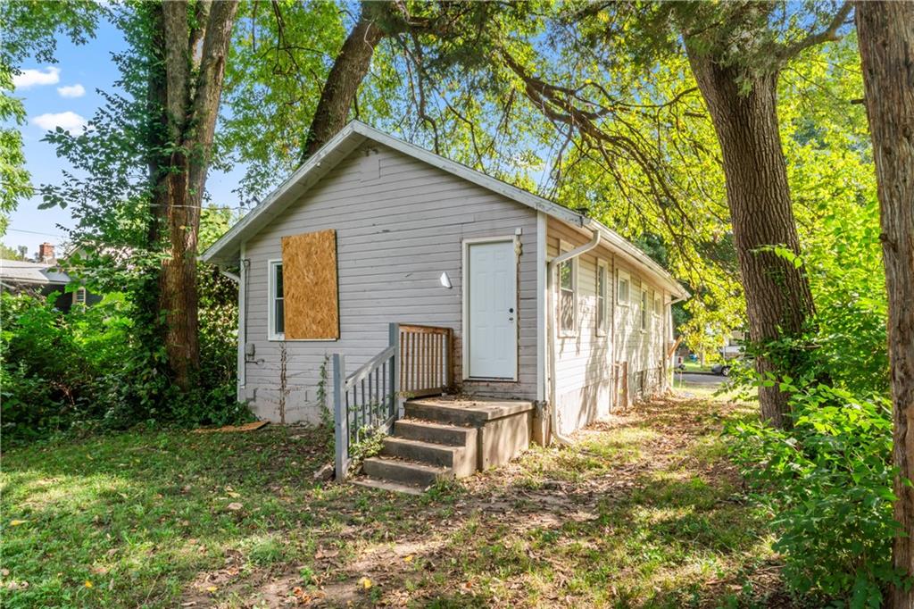 Calling all investors! This home has thoughtful updates, including updated flooring, stylish fixtures, and a completely remodeled kitchen and bath. Great front porch with new railing, white trim and neutral wall colors. Living room has LVP and a ceiling fan. The kitchen has a refrigerator and stove. Bedrooms have LVP and ceiling fans. Basement offer lots of storage. Door leads to treed backyard. Parking on left side of property.