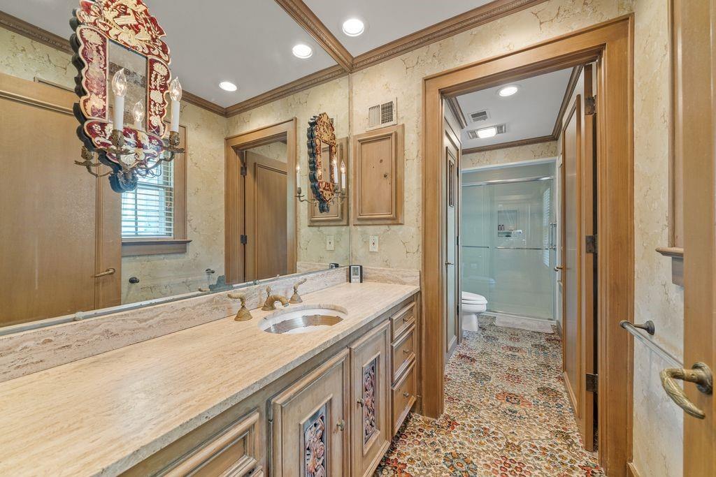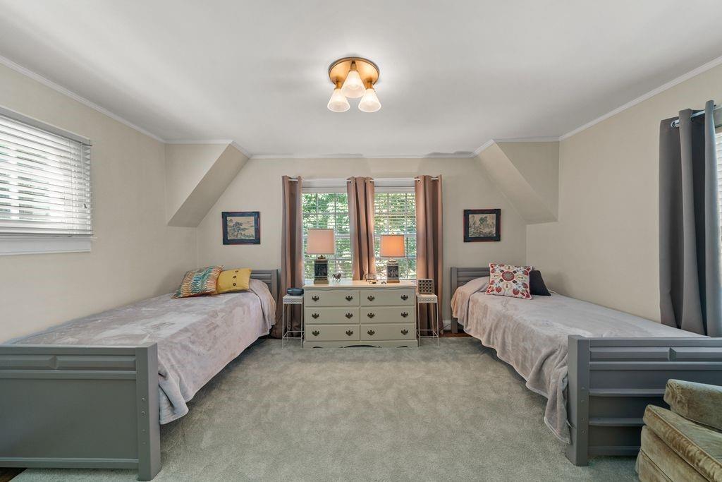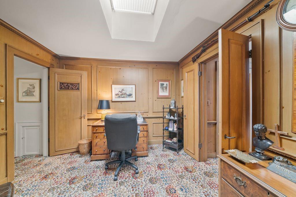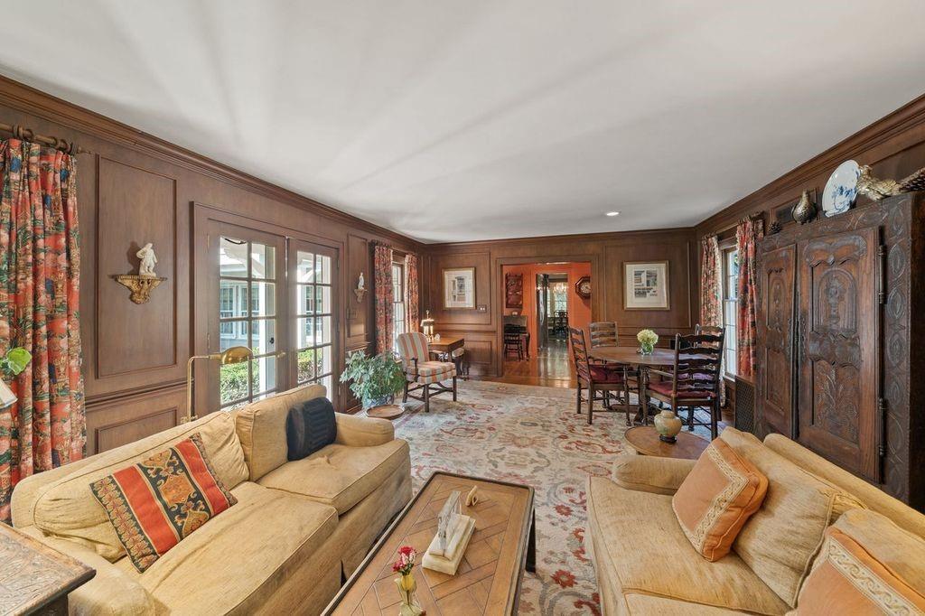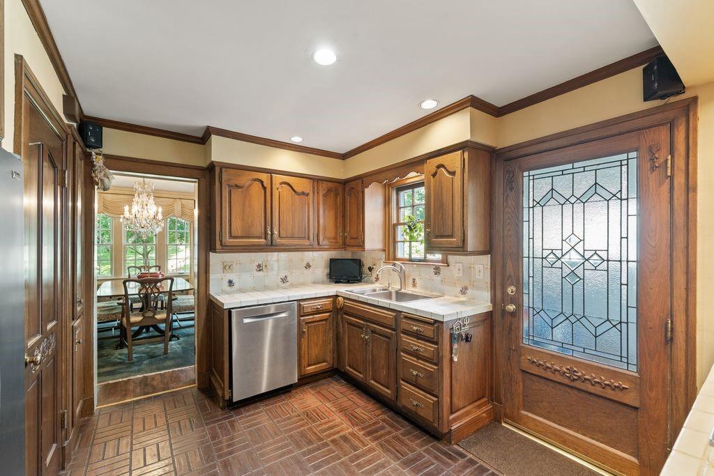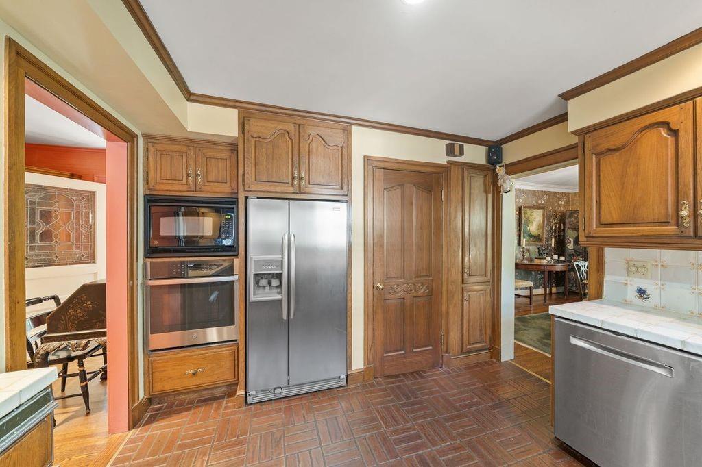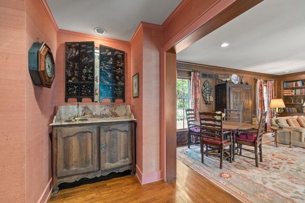 On an unusually large, level lot, this home sits on one of Fairway’s most beautiful tree-lined streets. The location offers easy access to major interstates, excellent schools, shopping, and the cultural and entertainment hub of Kansas City, including top-ranked medical facilities, universities, and the Nelson-Atkins Museum of Art. Recent improvements include a new roof (2025), a new basement family room (2025), and insulated walls. Meticulously maintained, the home is a work of art, with a design unlike any you’ve seen. The first owner chose this plan for its distinctive stairway landing, from which she could perform beneath the soaring 14-foot cathedral ceiling. The living room, with one of three commissioned hand-carved mantels, opens through vintage leaded-glass French doors to a cheery east-facing sunroom and connects to the kitchen, family room, entry hall, and upstairs bedrooms. The 15-ft. dining room sparkles beneath a massive teardrop-shaped crystal chandelier. For daily convenience, the driveway passes within inches of the side door, offering quick access to the mudroom and kitchen. The family room features a second carved mantel framed by bookshelves. South-facing French doors lead to a covered, lighted walkway connecting the two-car garage, workshop, and tool shed. The patio is graced by cherubic figures representing the classical winds, while the large yard invites games or gatherings. Upstairs, the 21-ft. main bedroom boasts a vaulted ceiling, the third fireplace, French doors to a private terrace, and a cozy skylit study. The newly finished basement rec room with closets, bookshelves, and a full bath easily converts to a fourth bedroom. Two additional unfinished basement rooms (20 and 21 ft.) provide ample storage or future expansion. Practical yet rich with character, this home blends location, convenience, design, and space in one remarkable package.