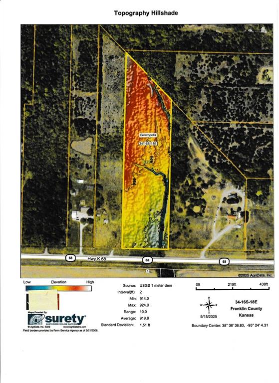 Heavily Wooded 6.7 Acres located on K-68 Hwy. This is an inherited property and Seller has very limited knowledge. There is a Water Well but there is no pump. There was an old septic tank but Seller has no knowledge of it. There use to be a small pond toward the NE corner of property but Seller has not been on the property in years. There is a 25 x 12 Shed built in 1980. There is no easement to the property at this time but Seller is in the process of acquiring an easement on an existing driveway that adjoins the property on the West in the SE corner of adjoining property and has been used for many years but there was never an easement for this property. There is no Sellers Disclosure. Property is in the 100 year flood plain. There is a creek on the property Aerial map, created with Surety Pro paid subscription & used with permission from AgriData, Inc.