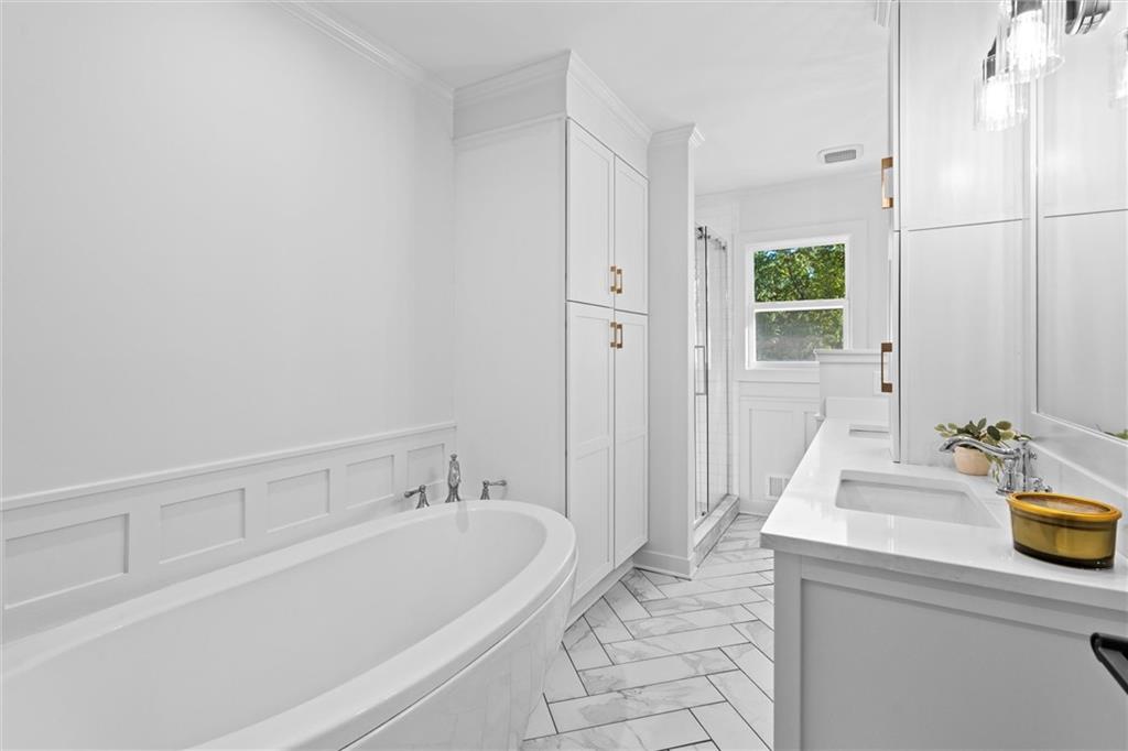 Villa style living could be yours at this fully remodeled home in an unbeatable location. Boasting a ranch/reverse 1.5 story floor plan, every inch has been thoughtfully renovated with modern touches yet timeless style. This home offers 4 spacious bedrooms and 3.5 pretty as a picture bathrooms. You will fall in love with the built-in's, custom crafted cabinetry, vaulted ceilings, flexible floor plan, designer touches and everything is NEW! Stunning double front doors and bright foyer showcase french doors leading into a stately office or den. Enter the gorgeous vaulted living room and hearth flanked by windows overlooking the half acre yard complete with a freshly stained deck, pergola and firepit too. The custom kitchen has a grand quartz island, gas stove with hood, floating shelves and walk in pantry. It leads into everyone's favorite breakfast/dining room. Holiday dinners will be perfect in here when everyone gathers around the table and grabs a drink and an appetizer from the built in buffet with arch and floating shelves. The primary en suite also has a sitting area and walk in custom closet with stackable hook-ups. The shower is the star in the primary bath. There is one additional large bedroom on the main level with full hall bath showcasing a soaking tub, separate shower and double vanities. The expansive walkout/walkup lower level has room for everyone including the two remaining bedrooms, well appointed full bathroom, large laundry room, and a lovely kitchenette. Do not miss out on the opportunity to own a rare gem in one of Leawood's most desirable locations and neighborhoods.