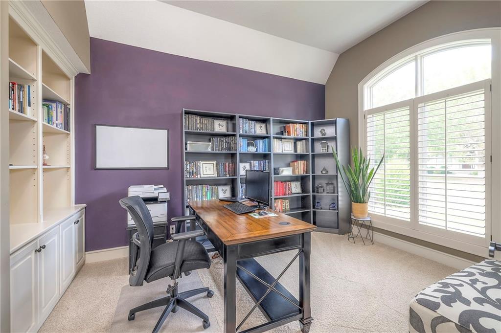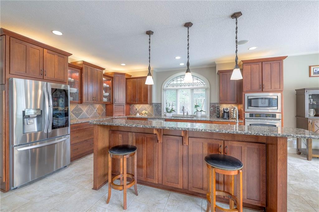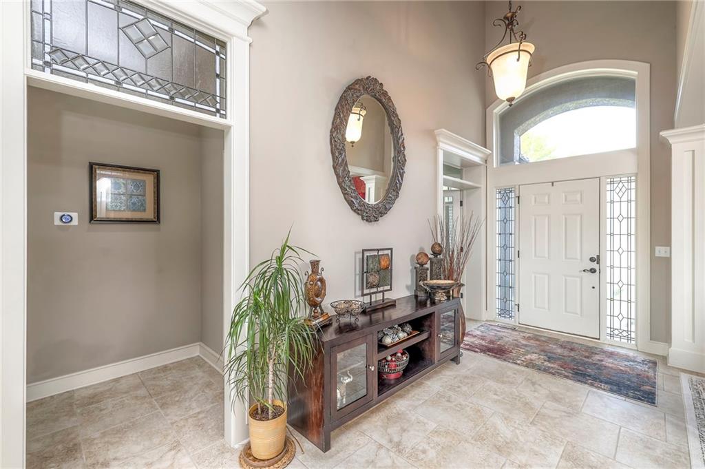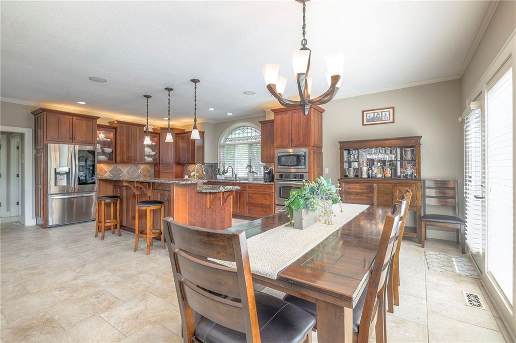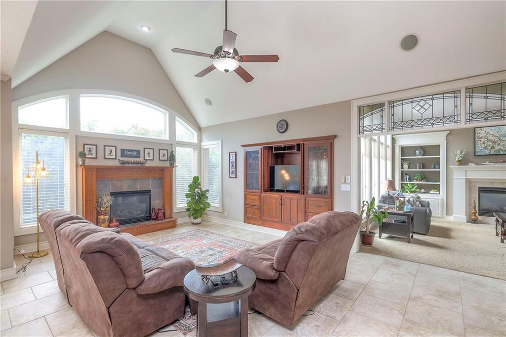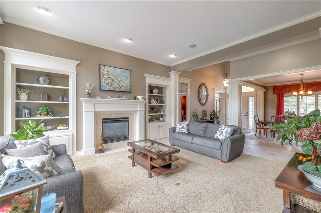 Welcome to this stunning 1.5-story home offering over 5,800 square feet of living space in a fantastic Overland Park location. The inviting entry opens to a formal dining room and home office, setting the tone for the amazing space throughout. The living room is warm and welcoming with vaulted ceilings, a cozy fireplace, and built-ins. The kitchen is truly the heart of the home, featuring an expansive island, double ovens, two sinks, a walk-in pantry, and generous countertop space. Just off the kitchen, a hearth room with its own fireplace and built-ins provides the perfect spot to gather. Step outside to a low-maintenance composite deck overlooking the private, treed backyard. The main-level primary suite is a retreat all its own, with a private balcony, spa-like ensuite bath featuring a walk-in shower and soaking tub, and a huge walk-in closet. A convenient laundry room rounds out the main floor. Upstairs, you’ll find four spacious bedrooms, each with access to bathrooms and large closets. The finished walk-out basement is designed for entertaining, featuring a large rec room, a wet bar, and a separate space perfect for a pool table. A non-conforming sixth bedroom and abundant storage provide additional flexibility. Step outside to the backyard oasis, complete with a beautiful swimming pool, expansive patio, green space, and mature trees for privacy. This home is the complete package, spacious, functional, and perfect for both everyday living and entertaining.