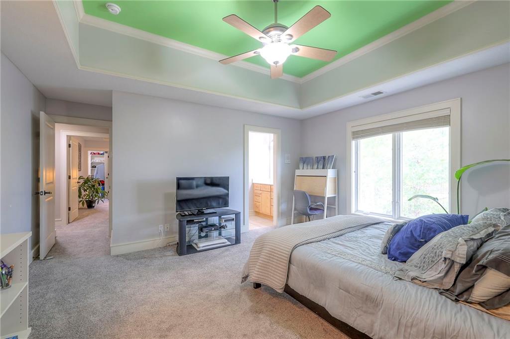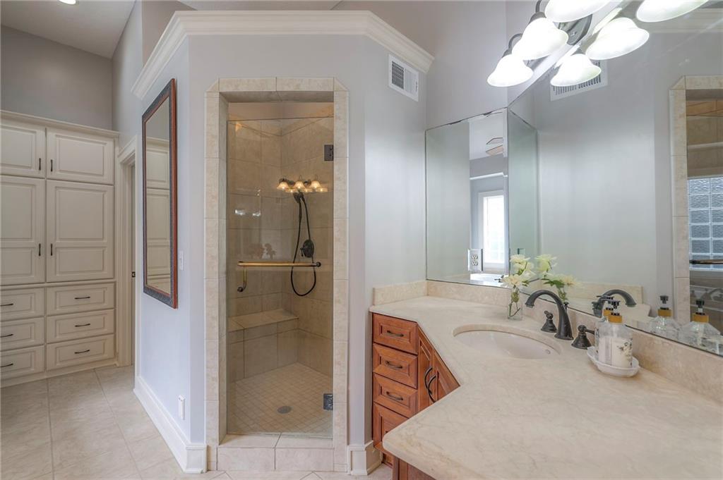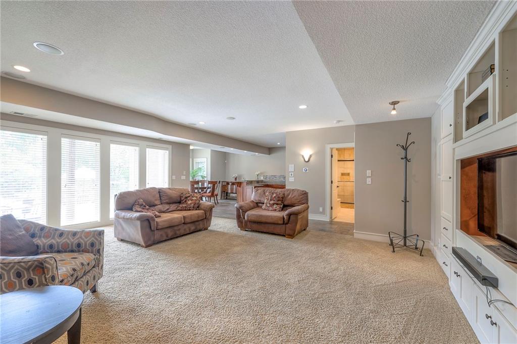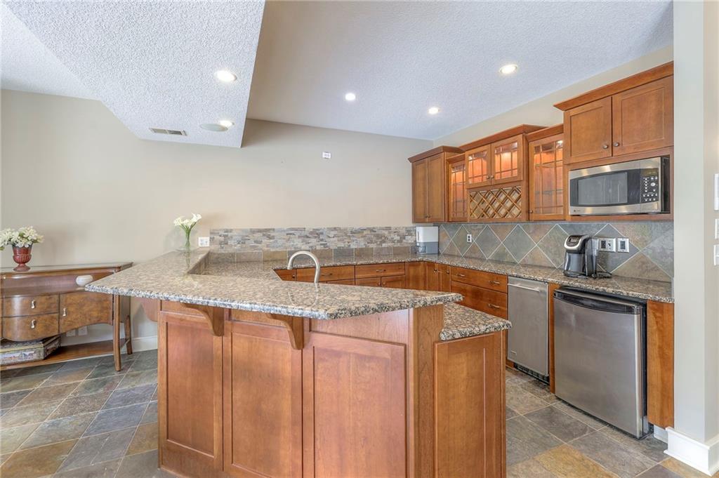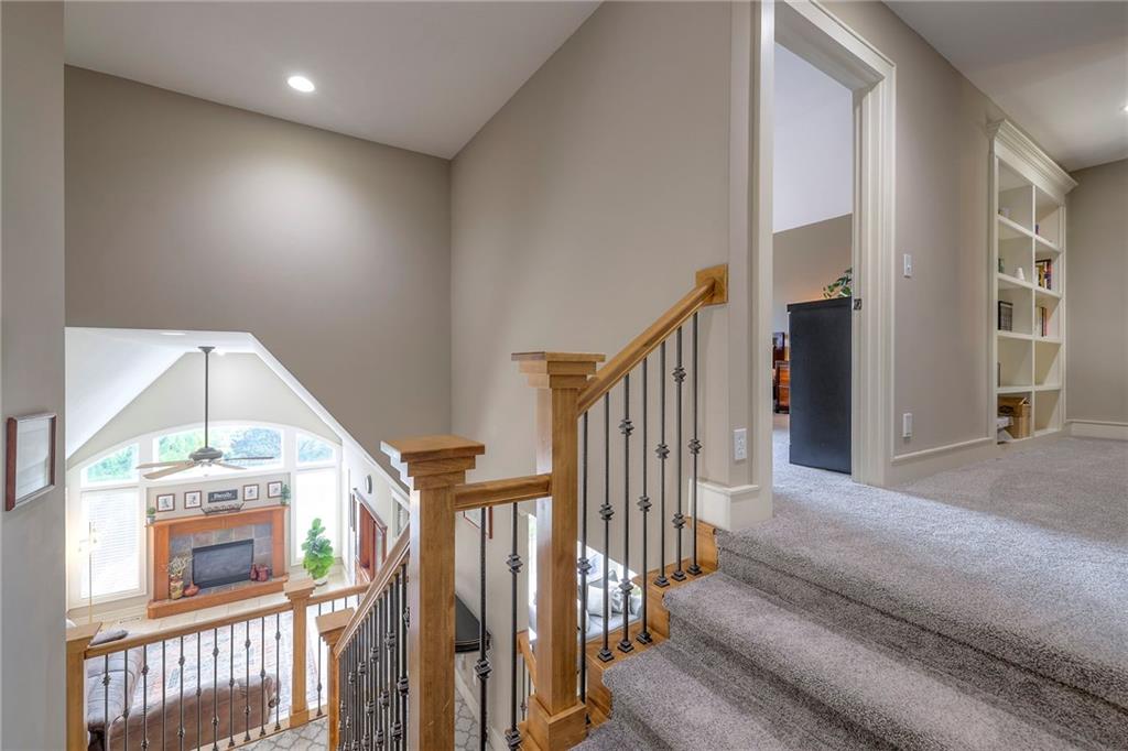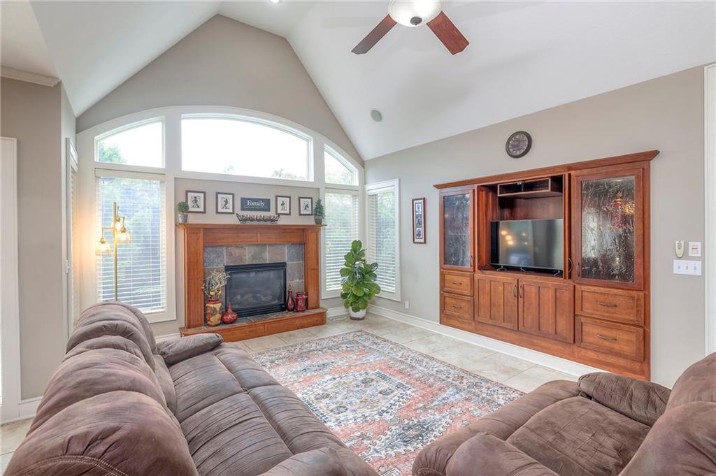 Welcome to this stunning 1.5-story home offering over 5,800 square feet of living space in a fantastic Overland Park location. The inviting entry opens to a formal dining room and home office, setting the tone for the amazing space throughout. The living room is warm and welcoming with vaulted ceilings, a cozy fireplace, and built-ins. The kitchen is truly the heart of the home, featuring an expansive island, double ovens, two sinks, a walk-in pantry, and generous countertop space. Just off the kitchen, a hearth room with its own fireplace and built-ins provides the perfect spot to gather. Step outside to a low-maintenance composite deck overlooking the private, treed backyard. The main-level primary suite is a retreat all its own, with a private balcony, spa-like ensuite bath featuring a walk-in shower and soaking tub, and a huge walk-in closet. A convenient laundry room rounds out the main floor. Upstairs, you’ll find four spacious bedrooms, each with access to bathrooms and large closets. The finished walk-out basement is designed for entertaining, featuring a large rec room, a wet bar, and a separate space perfect for a pool table. A non-conforming sixth bedroom and abundant storage provide additional flexibility. Step outside to the backyard oasis, complete with a beautiful swimming pool, expansive patio, green space, and mature trees for privacy. This home is the complete package, spacious, functional, and perfect for both everyday living and entertaining.