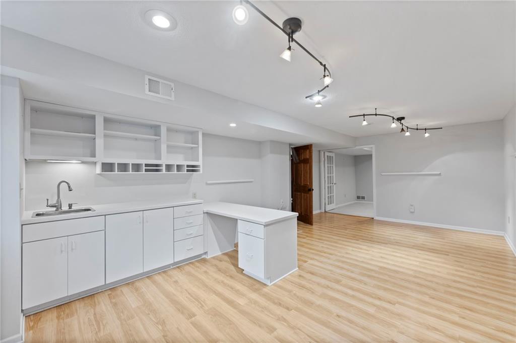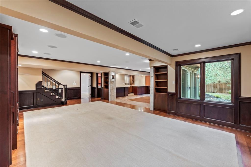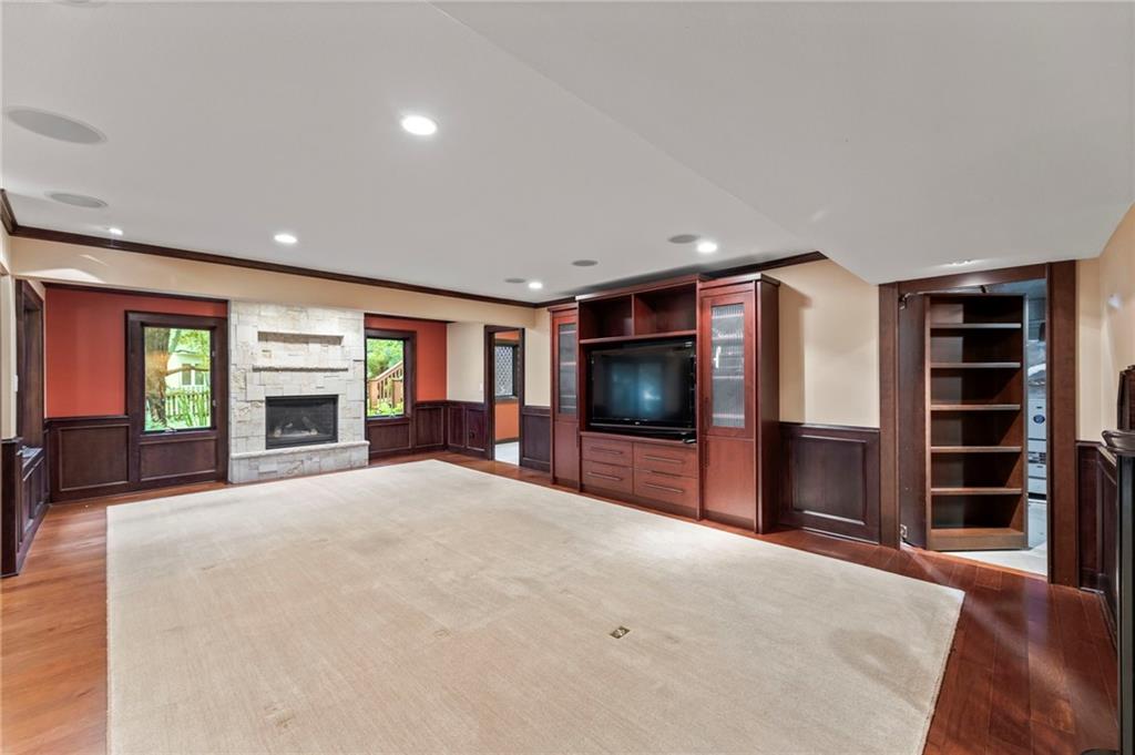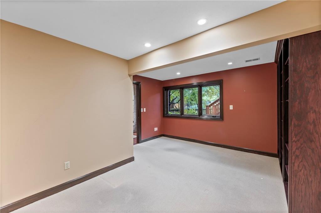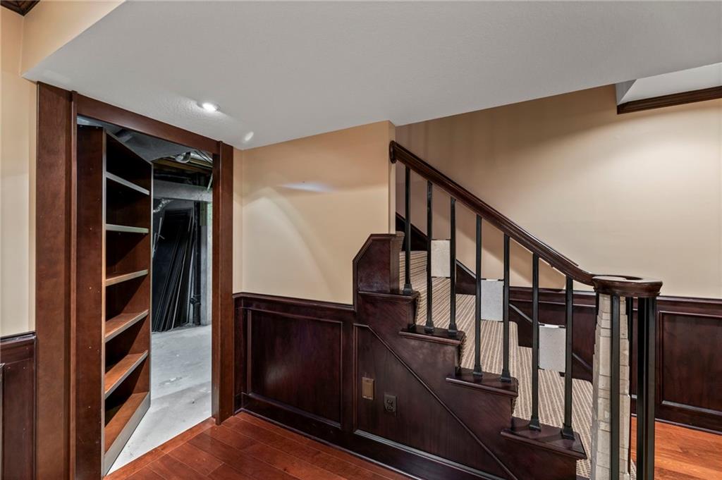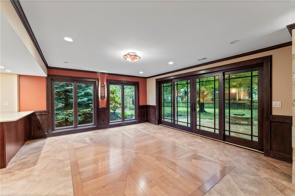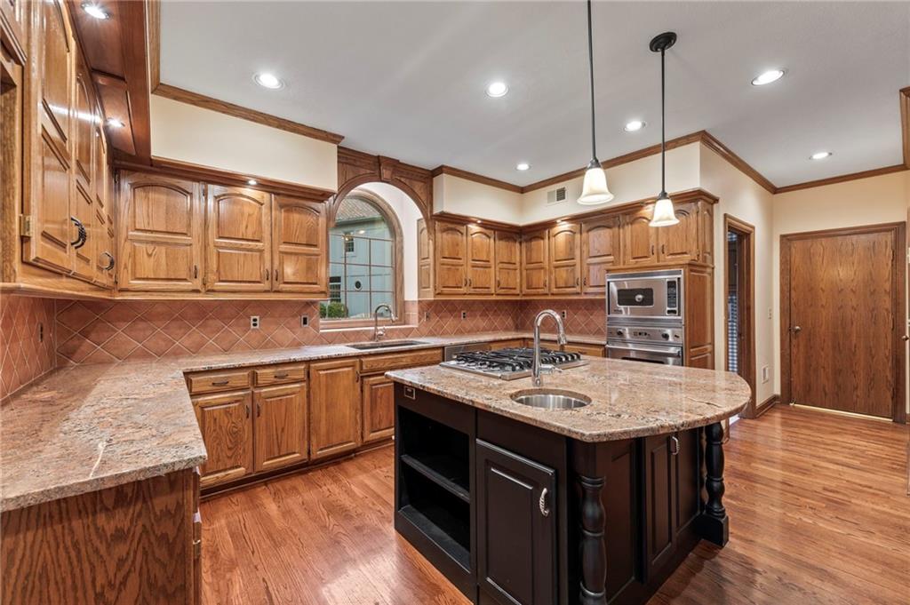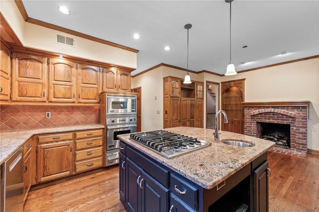 This stunning 5,500+ sq ft home in Nottingham Forest South offers 6+ bedrooms, 3 full baths, and 2 half baths on a beautifully landscaped cul-de-sac lot! Step into the two-story great room with a cozy fireplace and sweeping views of the backyard. The chef’s kitchen features Viking appliances, a gas cooktop, and warming drawer, and opens to the hearth room with a charming brick fireplace and access to a two-tier deck. The main floor primary suite is a retreat with dual bathrooms and abundant closet space. A second bedroom/office is also located on the main level. Upstairs, you’ll find three spacious bedrooms with walk-in closets—one with a private bath and two sharing a Hollywood bath. The updated walkout lower level is an entertainer’s dream with a fireplace, custom built-ins, large family room, full wet bar with fridge and microwave, bedroom, bath, expansive craft room with sink and built-ins, and workout space, along with a hidden storage room with a secret entrance through a bookshelf. Double sliders lead to a stamped concrete patio with a built-in fire pit, perfect for gatherings. With thoughtful design, a 3-car garage, and exceptional space inside and out, this home offers both luxury and comfort in an unbeatable setting. Easy highway access , award winning Blue Valley Schools and retail galore!