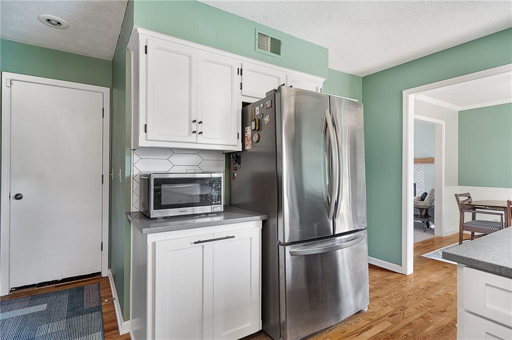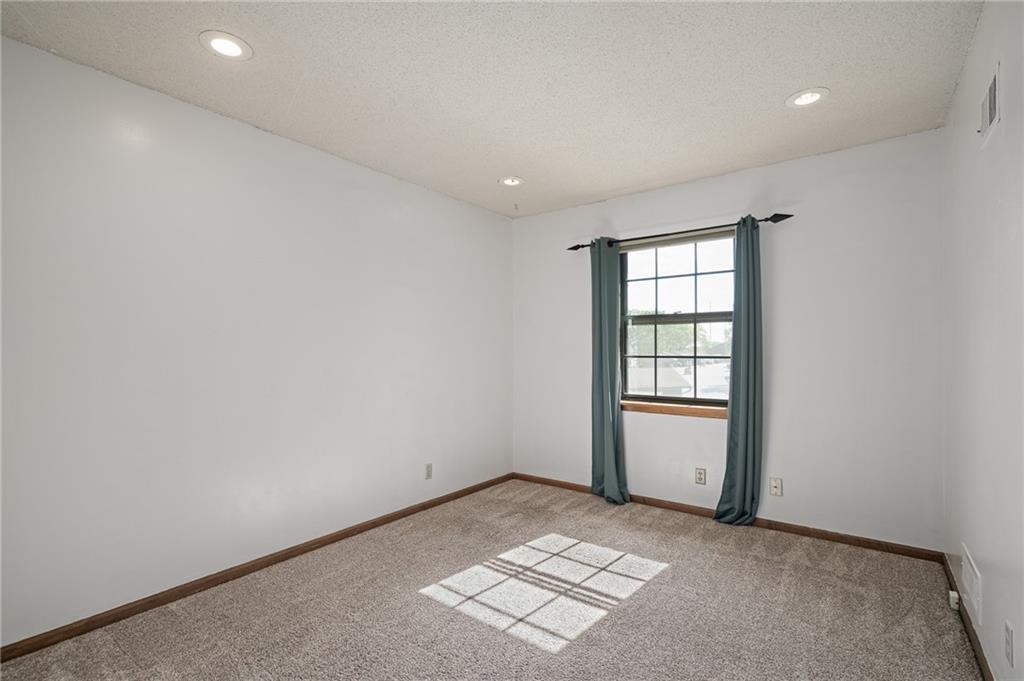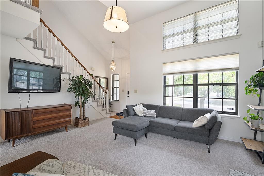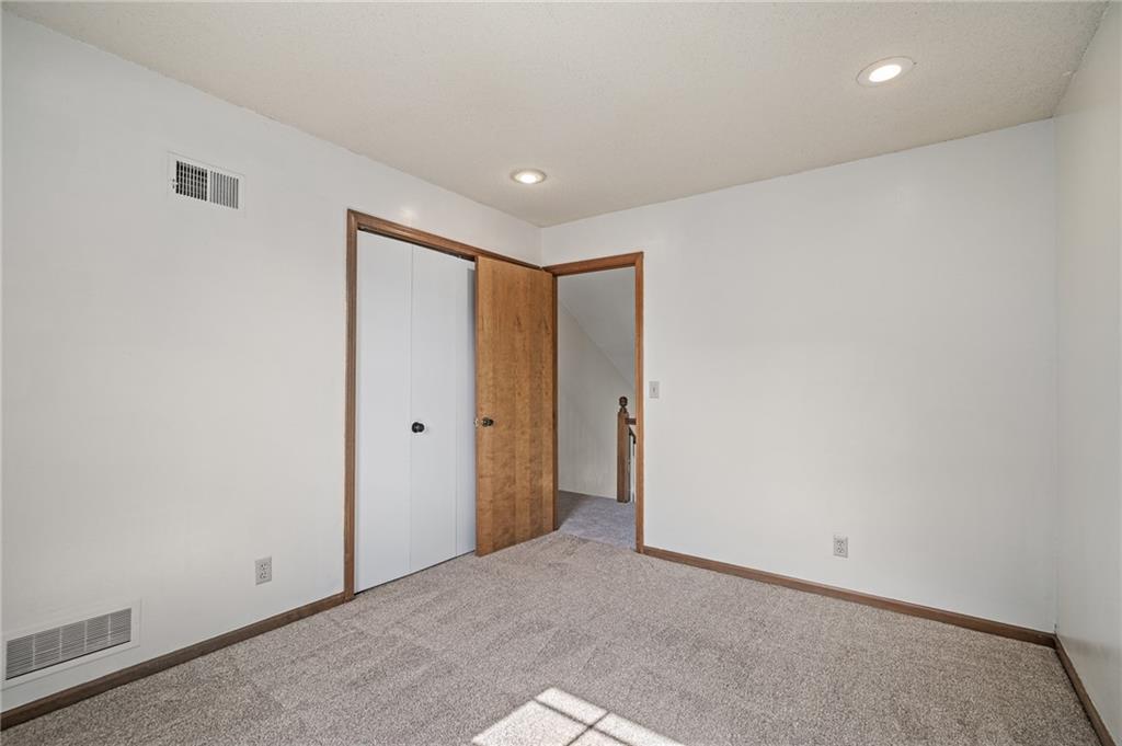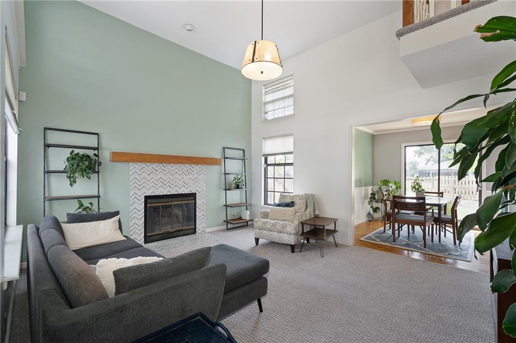 Welcome home to this modern and comfortable duplex townhome – primely situated in the Blue Valley School District with great access to shopping, dining and highways. Beautifully updated kitchen (2021) features loads of quartz countertop, modern backsplash, stainless steel appliances including gas range/oven, eat-in peninsula, tons of storage and pull-out trash/recycling. Washer/dryer closet off the kitchen. Hardwood floors in kitchen flows into the formal dining space. Large living room space features brand new carpeting, updated gas fireplace and soaring ceilings – large windows provide plenty of natural light. Upstairs features three good-sized bedroom spaces. Primary bedroom (11x12) includes a 3 piece en suite updated (2021) with new tile shower surround and modern frameless glass shower doors. Full bath in hallway has new flooring and tub surround. 2 nd bedroom (11x10) at front of the house. 3 rd bedroom (11x9) is currently used as home office. Brand new fence surrounds backyard with patio and plenty of room for dogs and kids to play. Refreshed landscaping. HOA takes care of mowing and provides trash/recycling service. HVAC purchased in 2016 includes a maintenance service contract with AB May. Single car garage space with built-in storage shelving. Unfinished basement space has plenty of room for storage or workroom and potential to finish for additional living space.