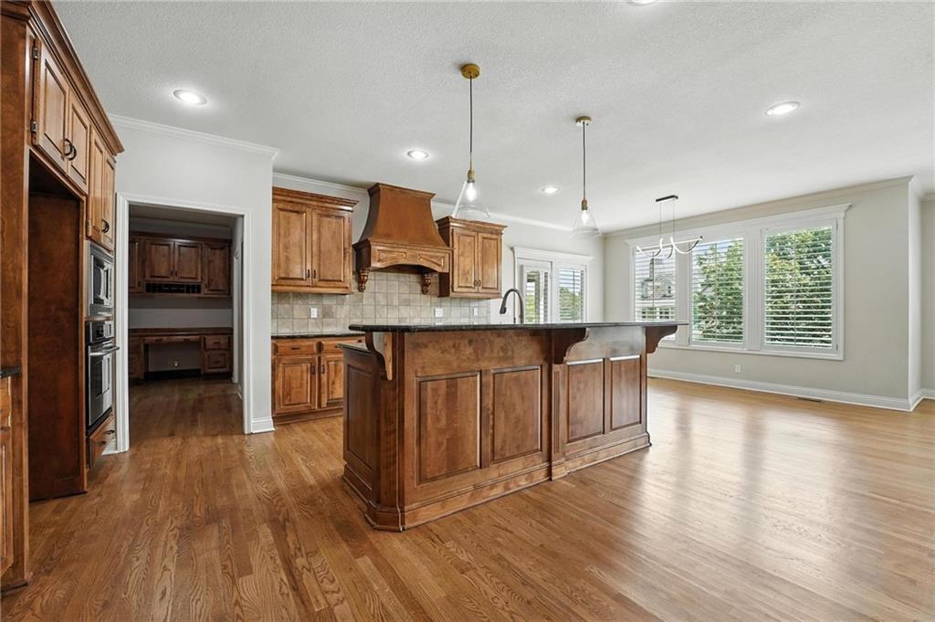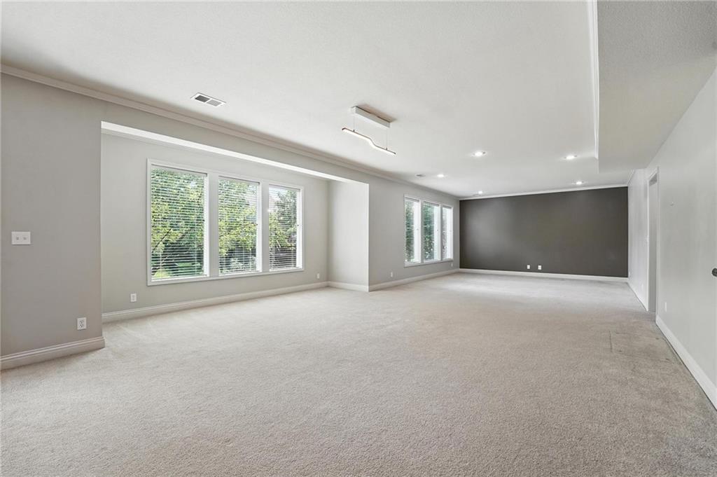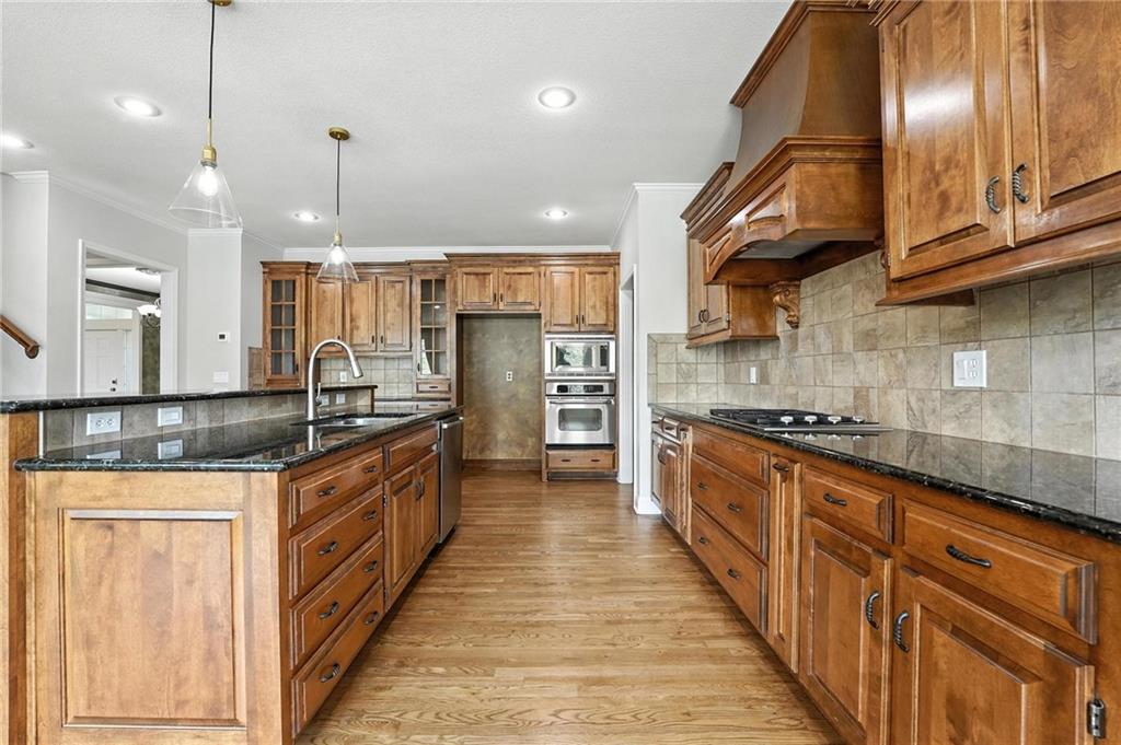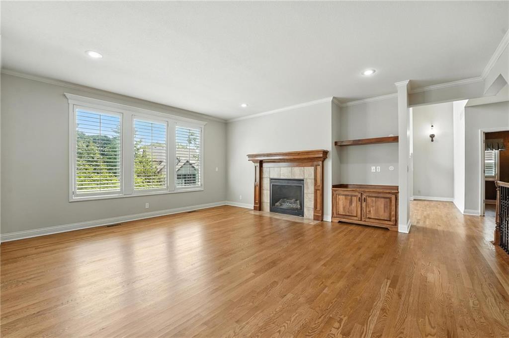 Welcome home to this amazing move-in ready 2-story home in the highly desirable Wilshire Farms. This former model home features a SPACIOUS OPEN floor plan and a FINISHED WALK-OUT basement. Gleaming hardwood flooring throughout 1st and 2nd level, GRAND 2-story tall formal living room features a gorgeous fireplace, and floor to ceiling windows with remote controlled roller shades. Main level flex room can be used as a private home office or a 5TH BEDROOM. Gourmet kitchen features beautiful stained cabinets, large island, stainless appliances with desirable gas cooktop and vent hood. Large hearth room has a 2nd fireplace. Formal dining, Breakfast room, Mud room, Secondary office space with built-in desk, Laundry room, and large walk-in Pantry completes the main level. On 2nd level you will find 4 spacious bedrooms and 3 full bathrooms, large master suite comes with coffered ceiling, master bath has double vanities, jetted soaking tub and a huge walk-in closet. Bright walk-out Basement is an entertainers dream with an open layout rec and family room, full bar and a huge exercise area big enough for a golf simulator. Outside you will love the covered screened-in deck, concrete patio and lush mature landscaping. Top notch amenities includes pool, clubhouse, sand volleyball, tennis/pickle ball courts and play ground. Highly Rated Blue Valley Schools, Walk to BluHawk Shopping and Entertainment, Quick access to 69 Hwy.