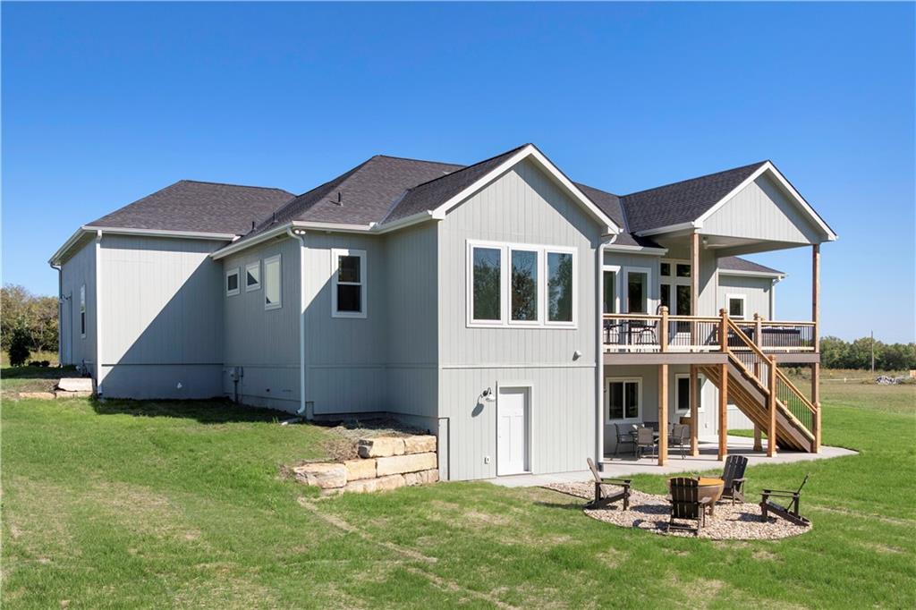 BRAND NEW Reverse 1.5 story by PCDI Homes! This stunning 5-bedroom, 4.5-bath home offers over 4,000 sq. ft. of expertly designed living space on a large 2.51-acre lot. With thoughtful details at every turn, this property combines high-end finishes, modern function, and outdoor living. The main level features soaring 12’ ceilings, white oak hardwood floors, and an open layout anchored by a custom fireplace with wood and tile accents. The gourmet kitchen is a showstopper, boasting a 10’ island, quartz counters, stainless steel appliances, double ovens, prep kitchen, custom tiled backsplash, and built-in hutch in the dining area. The luxurious main-floor primary suite is a true retreat, featuring a vaulted ceiling with wood beams, a cozy coffee bar, and private deck access for enjoying your morning cup with a view. The spa-inspired bath offers a double vanity with quartz counters, an oversized custom-tiled shower with bench, and a freestanding soaking tub. A spacious walk-in closet with tall ceilings and pull-down rods provides smart storage and convenience. Complemented by two additional bedrooms on the main level with a custom-tiled bath and a powder room bath off the entry. A convenient laundry is located on both levels. The finished lower level is an entertainer’s dream with a spacious rec room, wet bar, game area, plus two more bedrooms and two full baths. Car enthusiasts will love the oversized 4-car garage with workshop, sink, epoxy flooring, and a car lift. Outdoor living shines with a covered deck, patio, and firepit — perfect for gatherings. Located in the sought-after Basehor-Linwood school district, this property offers space, style, and sophistication inside and out. *BUILD YOUR DREAM OUTBUILDING / MANCAVE ON THE PROPERTY*