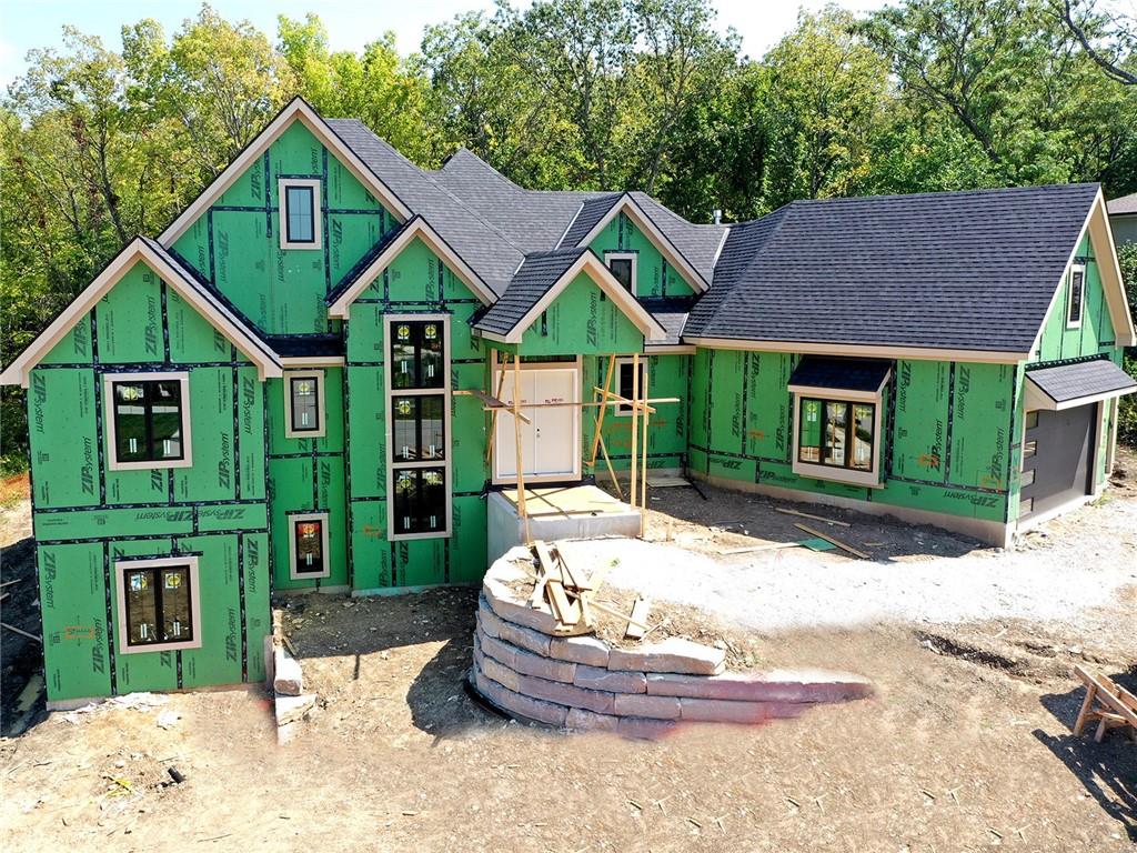 Stunning Reverse 1.5 Story on Heavily Wooded Walk-Out Lot. This exceptional new plan blends open, light-filled living with thoughtful design for both entertaining and privacy. The main level offers two private bedroom suites, each with its own bath. A vaulted great room and dining area feature walls of windows that flood the home with natural light and frame serene wooded views. Oversized 8’ sliding doors extend the living space to a covered lanai with fireplace and ceiling fan, creating the perfect indoor/outdoor retreat. The luxurious primary suite showcases wooded views and a spa-inspired bath with a freestanding tub, zero-entry shower, and floating custom cabinetry. The finished walk-out lower level boasts 10’ ceilings, three additional bedrooms, and a spacious rec room with entertainment center and decorative niches. The full bar is equipped with sink, beverage center, and quartz countertops—ideal for hosting. An oversized flex suite with built-ins and beverage center offers endless possibilities: gym, yoga studio, or media room. Located in sought-after Timberstone Ridge, this home combines luxury finishes, versatile spaces, and breathtaking views—an incredible opportunity for refined living