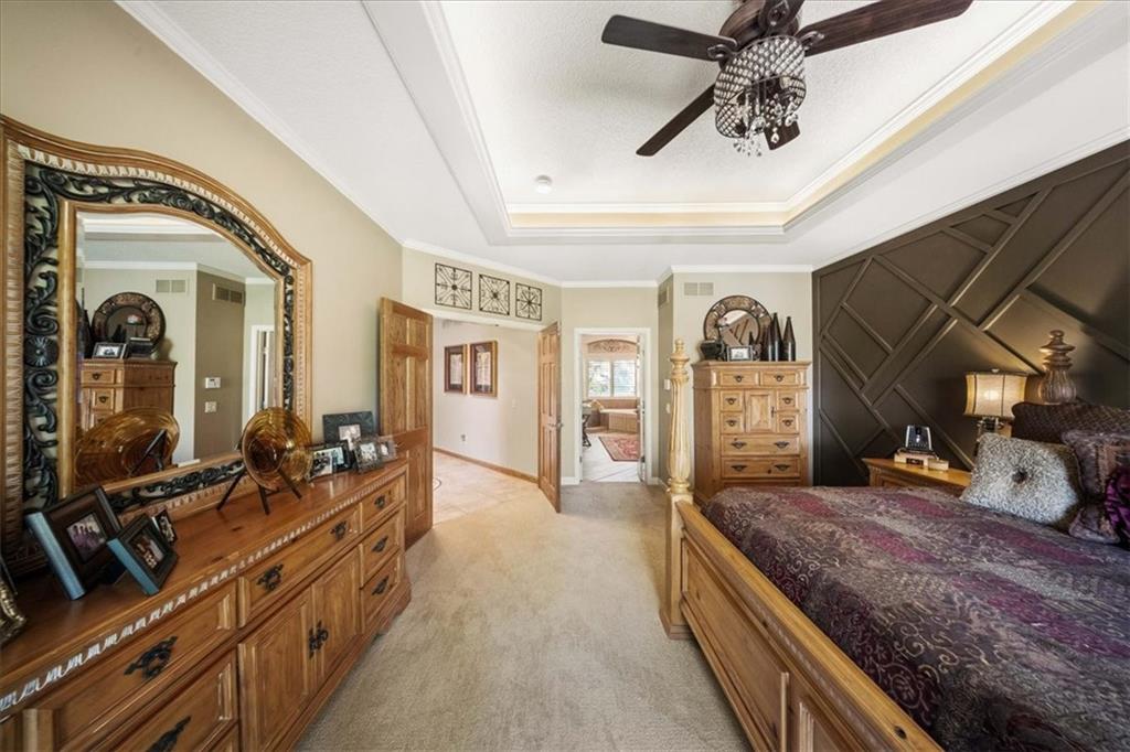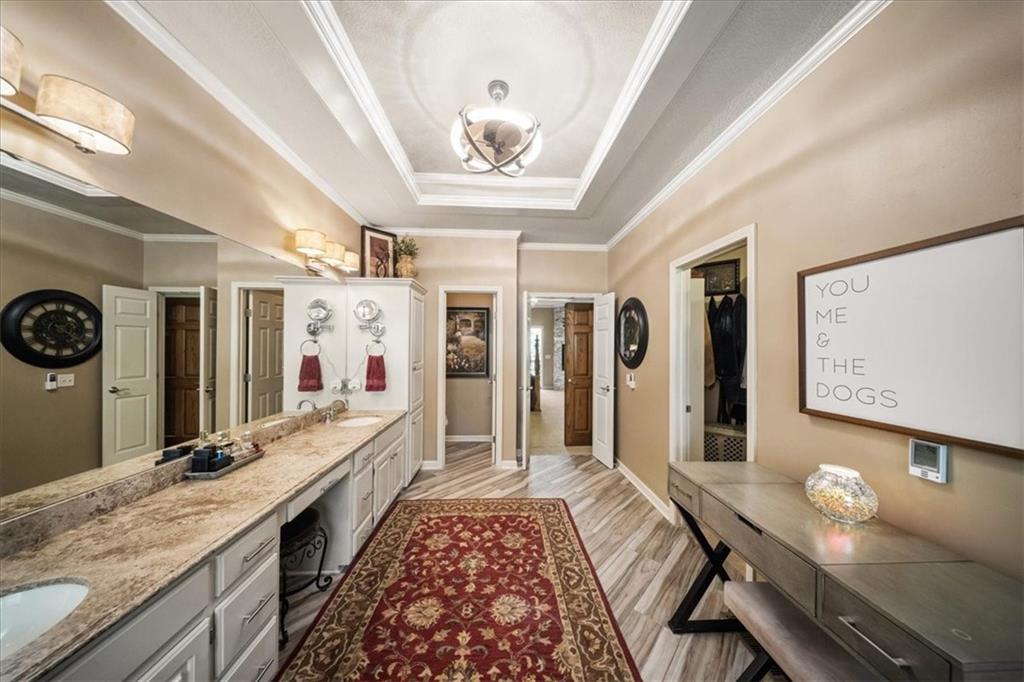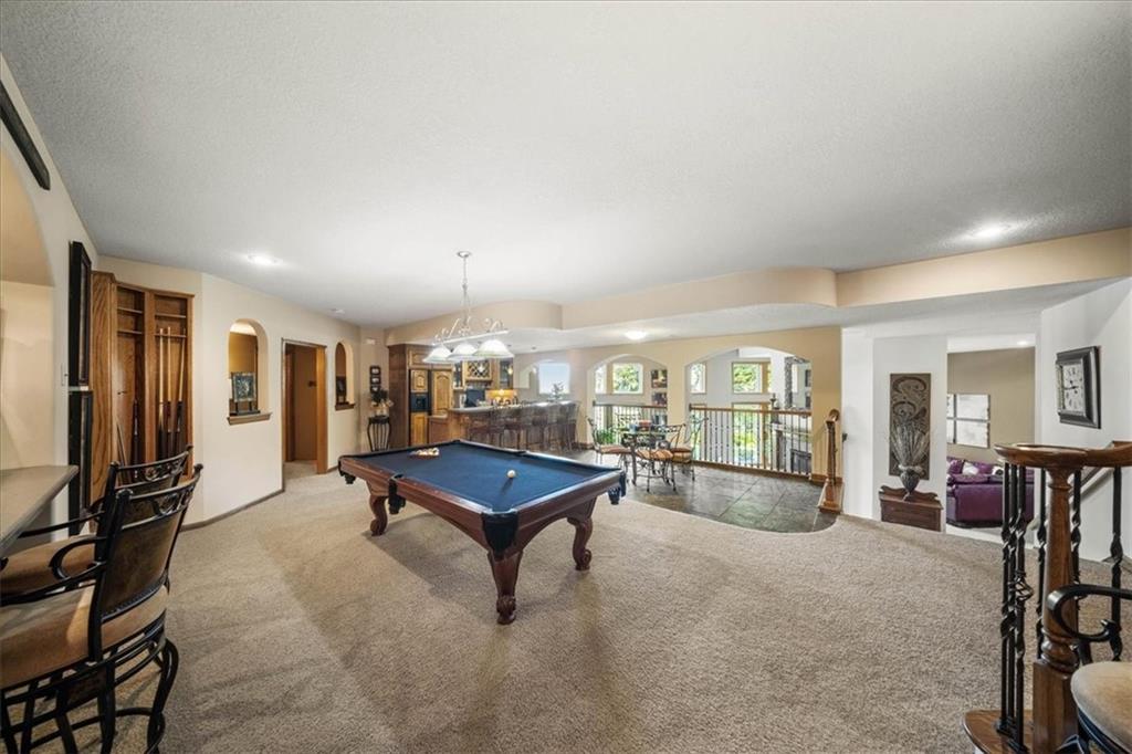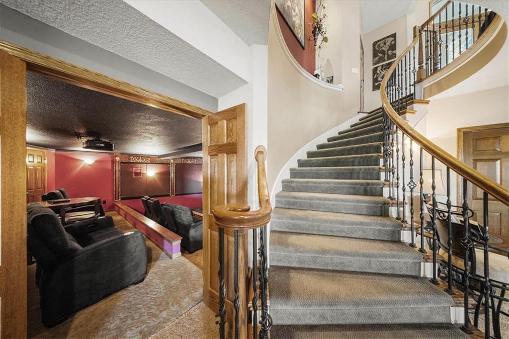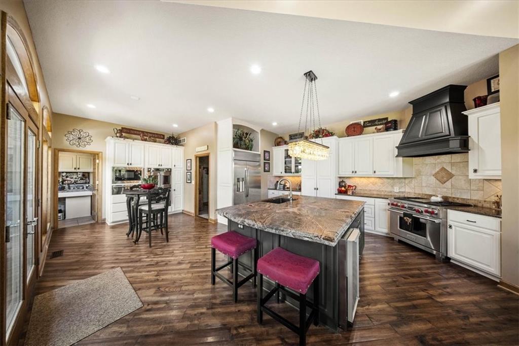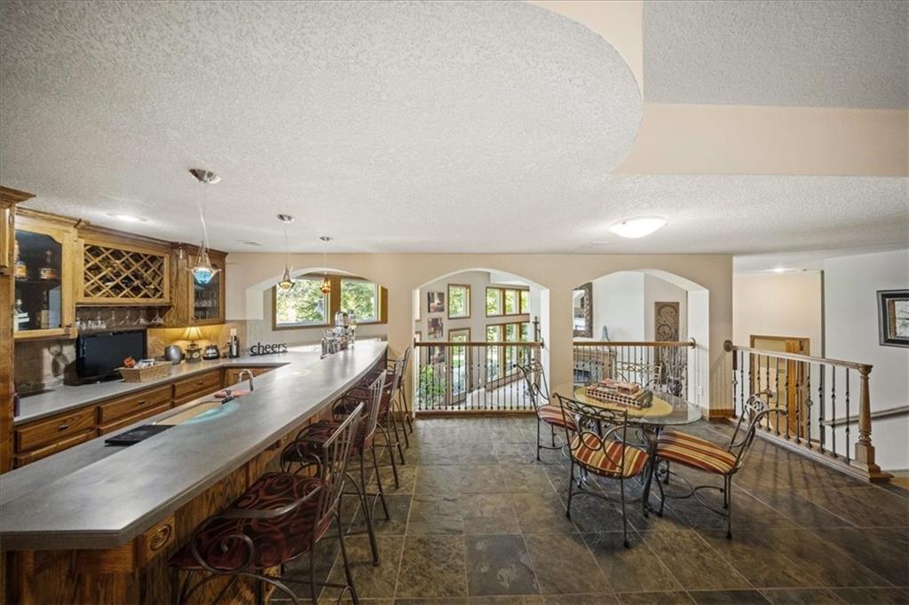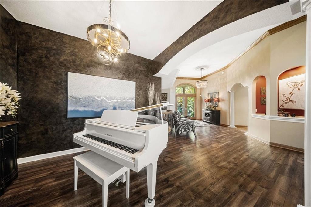 Just one word...STUNNING!! Enter into this magnificent lakefront reverse and be welcomed to breathtaking lake views from a two-story wall of glass across the entire living/dining area. This home blends elegance and comfort seamlessly. The great room boasts soaring vaulted ceilings highlighted by the floor-to-ceiling stone fireplace with unique gas logs and hickory hardwood flooring. Enjoy panoramic lake views from the oversize dining area, which includes a dry bar and beverage cooler, perfect for entertaining. Included in the open entertaining space is room for a baby grand! The spacious chef's kitchen features custom Brazilian granite top island, professional Wolf gas range, 3 electric ovens, a 4-foot wide refrigerator, and a full-size ice machine, plus a walk-in pantry. A private deck off the kitchen offers a quiet space for morning coffee. The main floor primary suite is a romantic getaway with a fireplace and cocktail deck. Generous size spa bath features a whirlpool tub, custom walk-in tiled tub shower, heated tile floors, plus a large walk-in closet completes the suite. Also included on the first floor is an office with a wall of bookcases and sweeping lake views with an abundance of natural light. The dramatic curved staircase to the tier's lower level invites you to a fabulous pool table/game room with a "tavern" bar area. Three more bedrooms, all with walk-in closets and access to private baths. BUT DON'T MISS THE MEDIA ROOM! Three-tiered seating makes movie night or game day special! Gorgeous outdoor living spaces professionally landscaped with two fire pit areas and two waterfalls. Private double-deck dock w/lake stairs, new boat lift, and 2 PWC lifts. Oversized 3-car garage plus 4th bonus area in the lower level, perfect for lake storage or exercise room. Too many upgrades to list... All this on a half-acre premium lake front lot! This is more than a home... It's a lifestyle designed for relaxation, recreation and lakefront living!