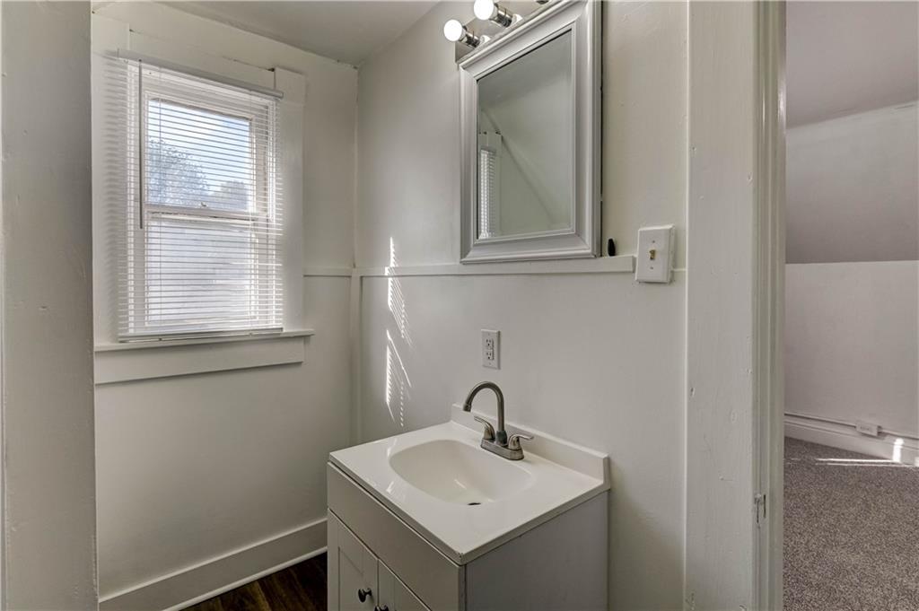4 bedroom 1.5 bath home. Has newer paint and flooring. Home has bedroom on main level and 3 bedroom upstairs. Home does have a basement. Home also has detached 2 car garage.
