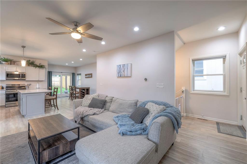 This almost new 2-story home in Waldo offers 3 bedrooms, 3.5 baths, and an open-concept layout in a prime location just minutes to The Plaza, and the Power and Light District. The main level features a light, neutral palette, a cozy fireplace, and a stylish kitchen with stainless steel appliances (including gas range), quartz countertops, and an oversized island—perfect for gatherings. Upstairs, the primary suite is a true retreat with a private deck off the bedroom, huge walk-in closet, and spa-like bath. Laundry is conveniently located on the bedroom level. The finished lower level with half bath offers flexibility for a home office, rec room, or movie nights. Outside you'll find a great backyard including a patio and a wood fence, creating a private backyard oasis for pets, play, or entertaining. This home is only 3 years old! Move-in ready and waiting for you! Buyer to verify taxes, square footage, and schools.