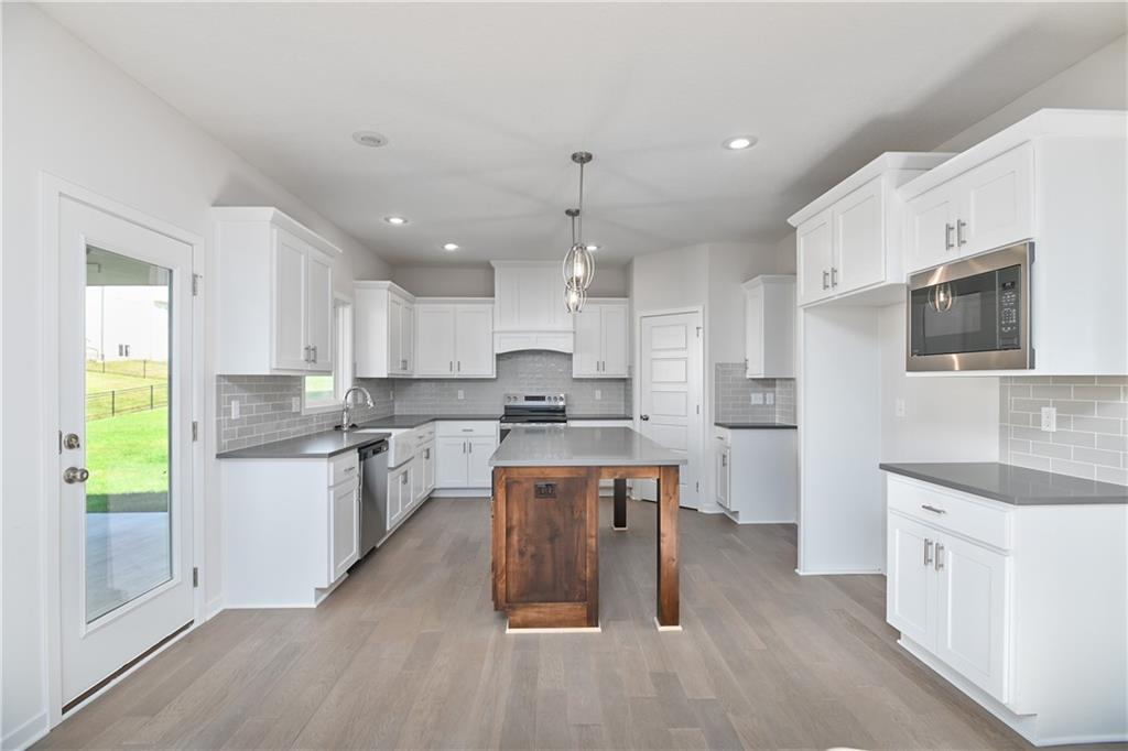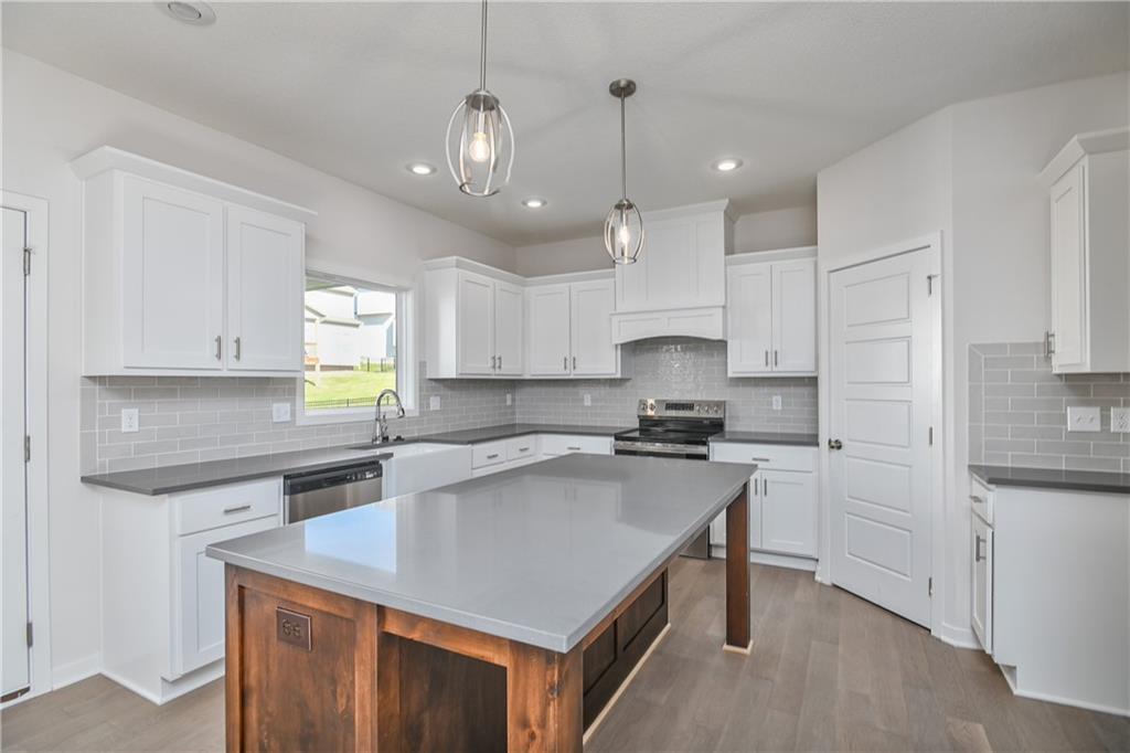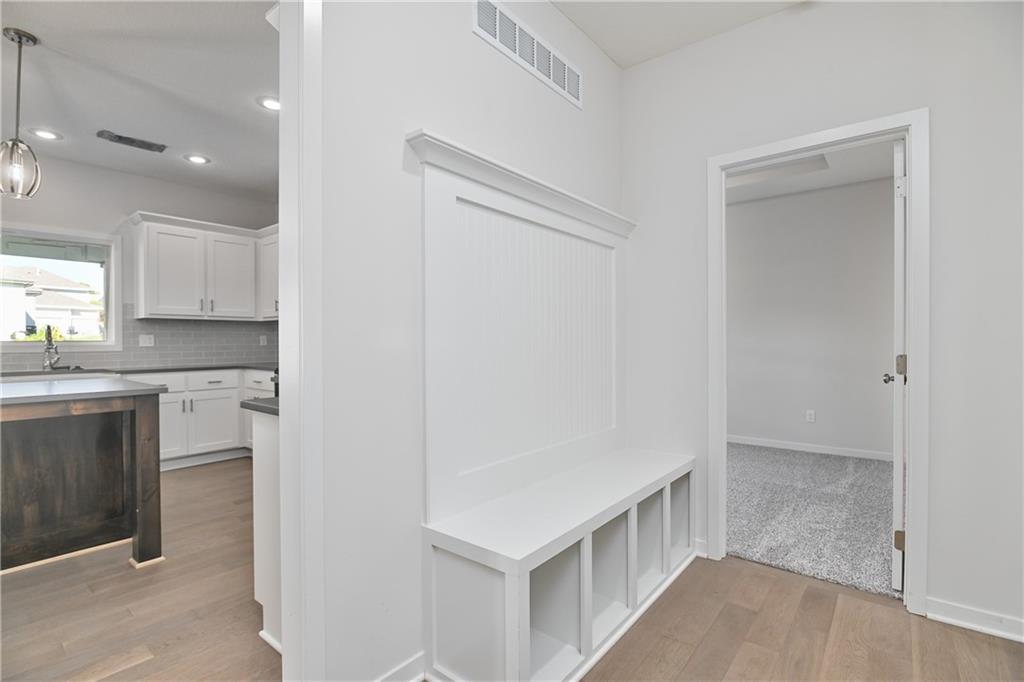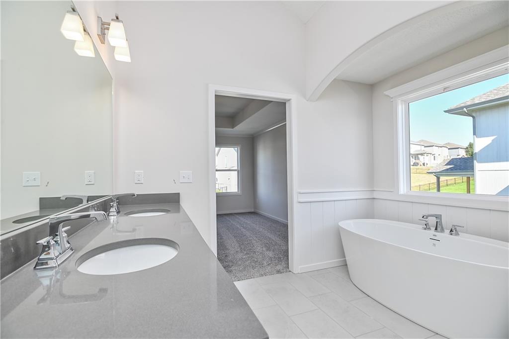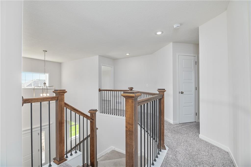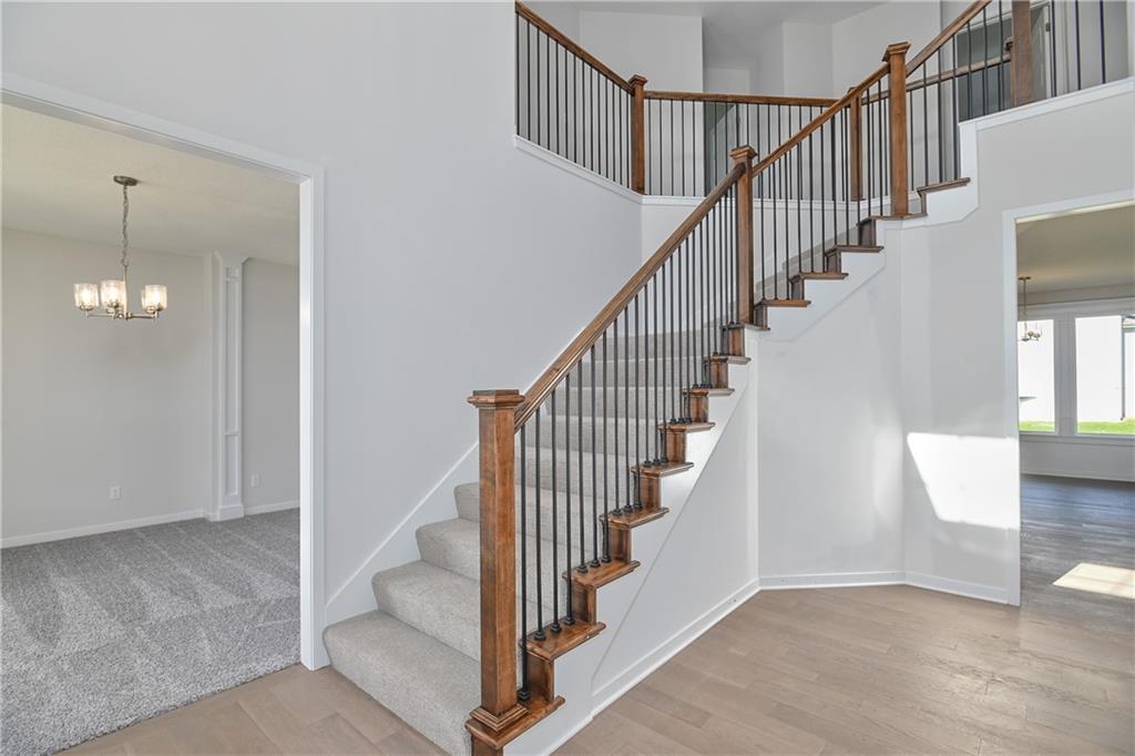 Prieb Homes "Harlow 5" plan showcases a grand entry with an open concept. The two-story vaulted entry leads to an open great room, kitchen and breakfast area. The large center island in the kitchen has ample work space plus bar-height seating and walk in pantry. and a dry bar is located between the great room and dining room. A boot bench and entry closet are in the mud room. 5th bedroom/flex room on the main level for guest or to use as an office with full bath. Generous size 2ndary bedrooms with vaulted ceilings and good closets. The upstairs laundry room can be accessed from the hallway or the walk-in closet of the spacious master bedroom. The master bathroom includes a tub and walk-in tile shower.