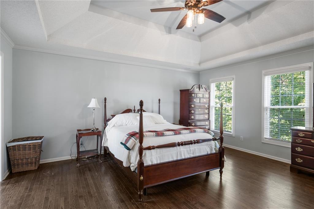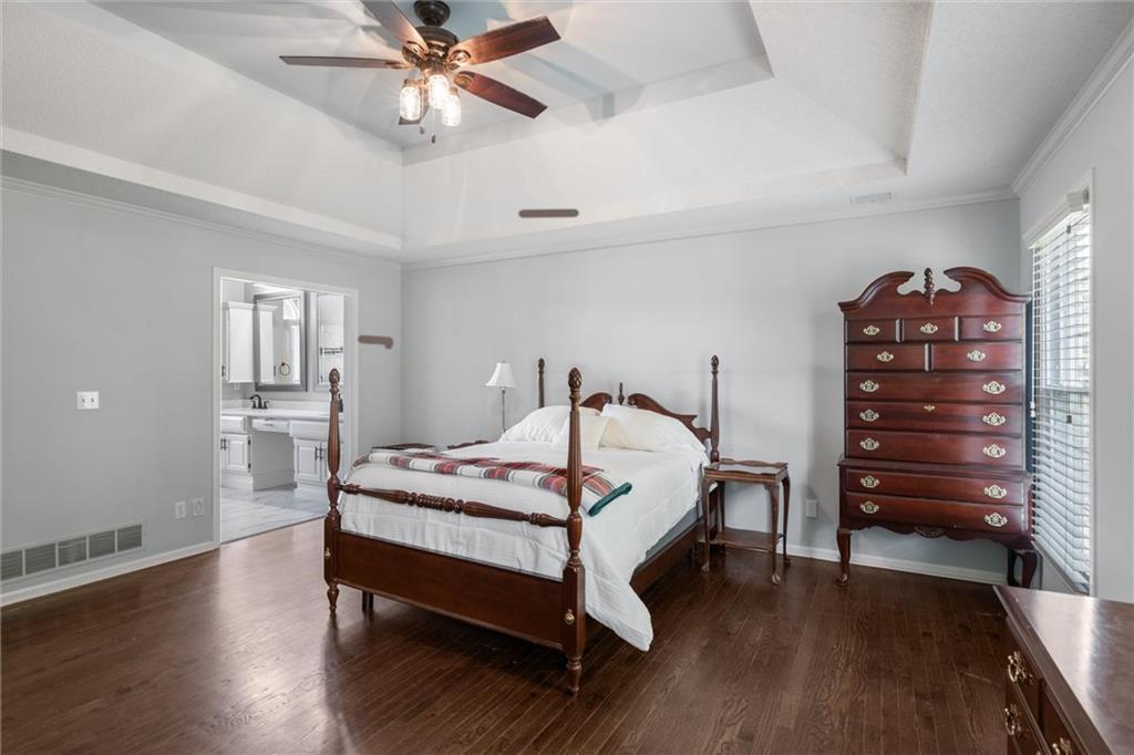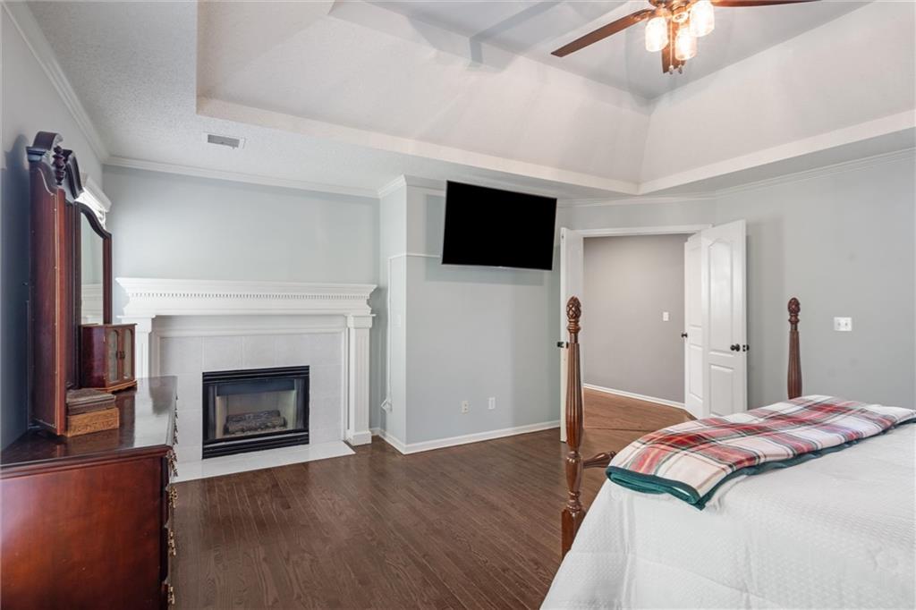Located on a cul-de-sac street in the desirable Nottingham by the Green neighborhood, this 4-bedroom, 4.1-bath home offers stylish updates, generous living spaces, and an incredible backyard retreat with an in-ground pool. Inside, you’ll find hardwood floors throughout both levels and a thoughtfully designed layout that’s ideal for everyday living and entertaining. The kitchen features granite countertops, stainless steel appliances, a gas cooktop, tile backsplash, walk-in pantry, and a spacious eat-in area that opens to the backyard. The main floor also includes a formal dining room, a home office with double doors and a gas fireplace, and an updated half bath with a granite vanity. Upstairs, all four bedrooms feature hardwood flooring, and the laundry room has been conveniently added to the bedroom level. The primary suite includes a gas fireplace and a newly remodeled ensuite bath showcasing a custom spa like walk-in tiled shower with a soaking tub inside, double granite vanity, new fixtures, and updated tile flooring. The finished daylight basement offers a spacious recreation room, a bonus room perfect for a playroom, gym, or second office, and a full bath. Step outside to the backyard oasis with a wraparound deck, lush landscaping, and an in-ground swimming pool complete with a top-of-the-line automatic retractable cover. The fenced yard also provides plenty of green space for play and entertaining. This home has been exceptionally well maintained and is move-in ready for its next owners!