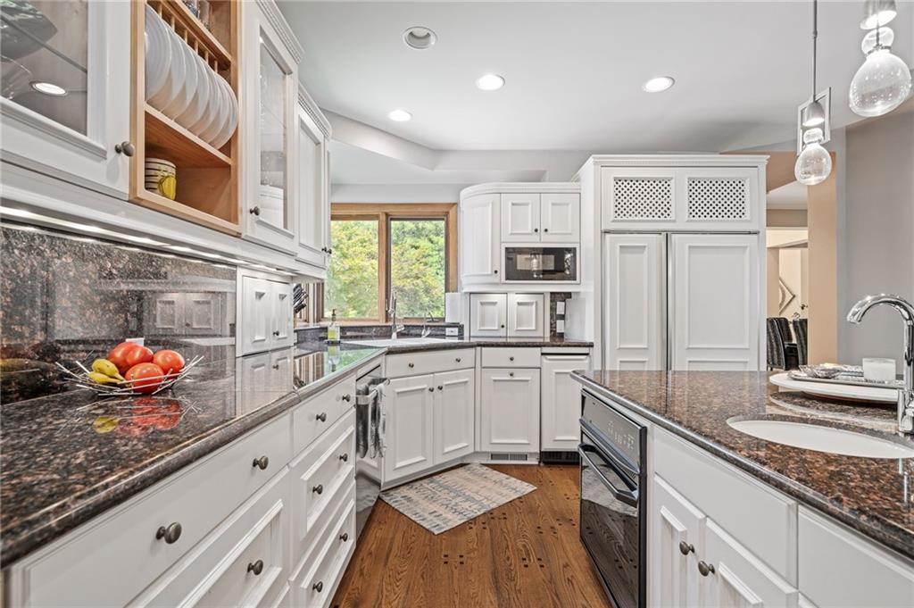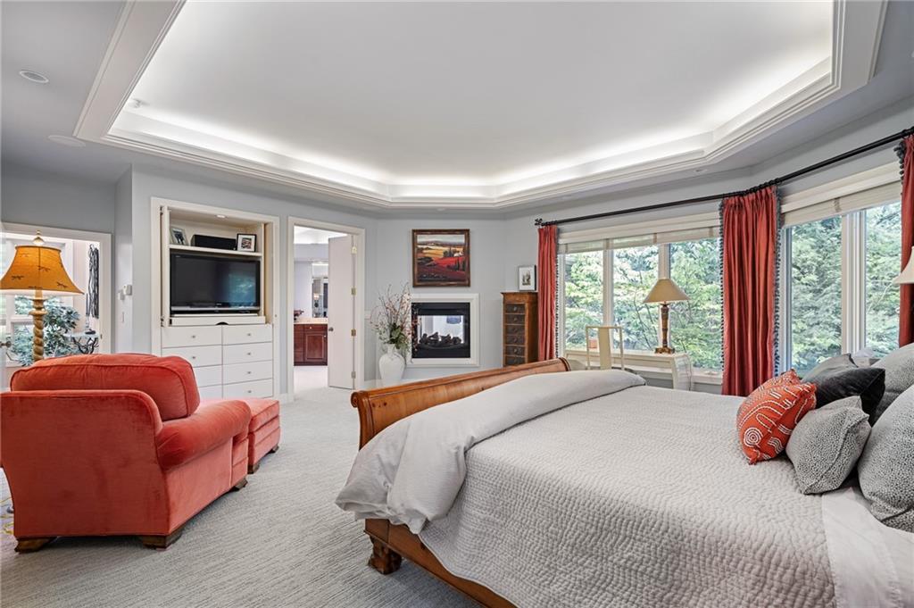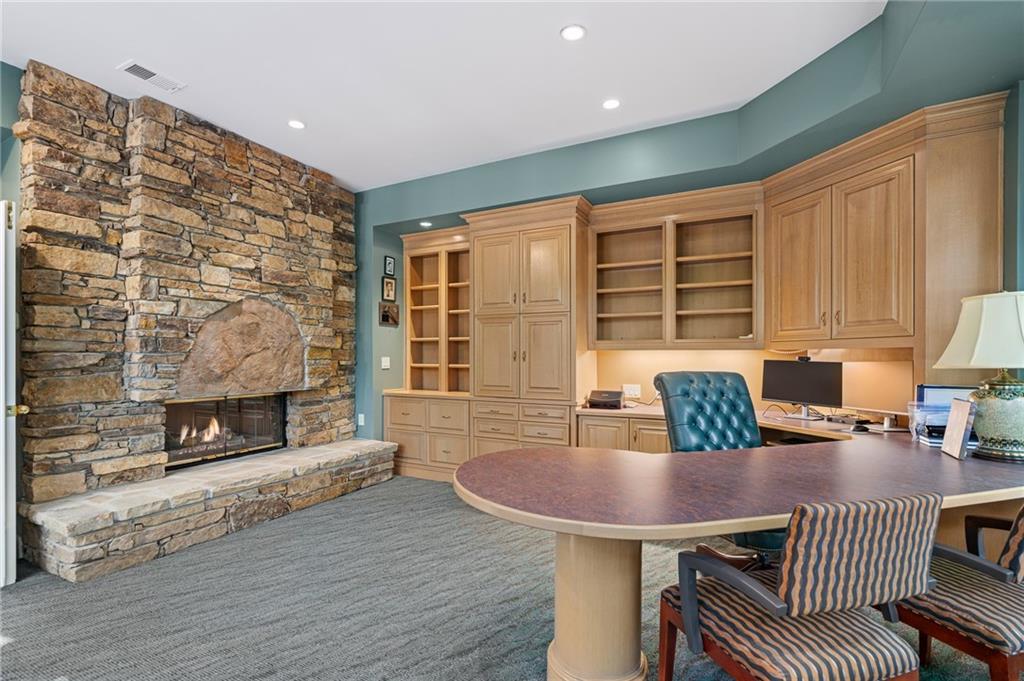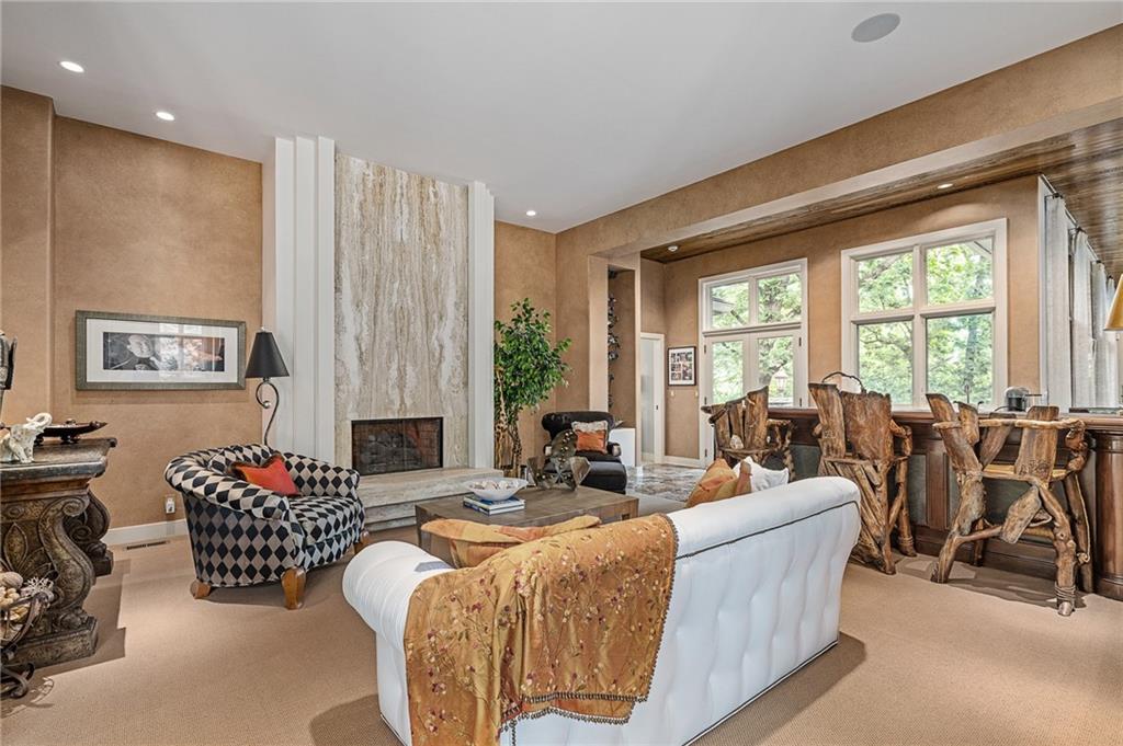 Welcome to an exquisite contemporary residence nestled in prestigious Hazelwood in Leawood. This remarkable home offers an impressive 7,085 square feet of sophisticated living space, designed to cater to modern lifestyles. Upon entering, you’ll be captivated by the expansive open-plan living areas.The home features four generously sized bedrooms, each with its own en-suite bathroom, ensuring privacy and convenience. The main floor primary suite is a tranquil sanctuary, offering a spacious layout and a beautiful view of the treed yard. The primary bathroom features high-end finishes, double vanities, large shower and separate tub and TWO walk-in closets. The kitchen is a culinary enthusiast's dream, equipped with sleek countertops, premium appliances, and ample storage. It seamlessly connects to a spacious dining area, ideal for hosting intimate dinners or larger gatherings. Ample natural light floods the interior, highlighting the elegant design elements and tasteful finishes throughout. The large great room, featuring a massive stone fireplace, provides a perfect spot for relaxation and socializing. Adjacent to the great room, you'll find a light-filled atrium, including a grill! A formal living space, also featuring a marble fireplace, includes a custom bar. The beautiful deck, accessible from both the living room and great room, allows for viewing of the firepit area and lots of nature. The lower level encompasses three additional bedrooms, all en-suite, a large office with fireplace, spacious family room, gaming area, non-confirming fifth bedroom. Situated on a large lot, the outdoor space is equally impressive, offering lush landscaping and ample room for outdoor activities or future customization. This is a one and a half acre lot - please see county map for description. This home combines luxury, functionality, and modern design, creating the perfect setting for your next chapter. Experience the epitome of sophisticated living at this stunning Leawood home.