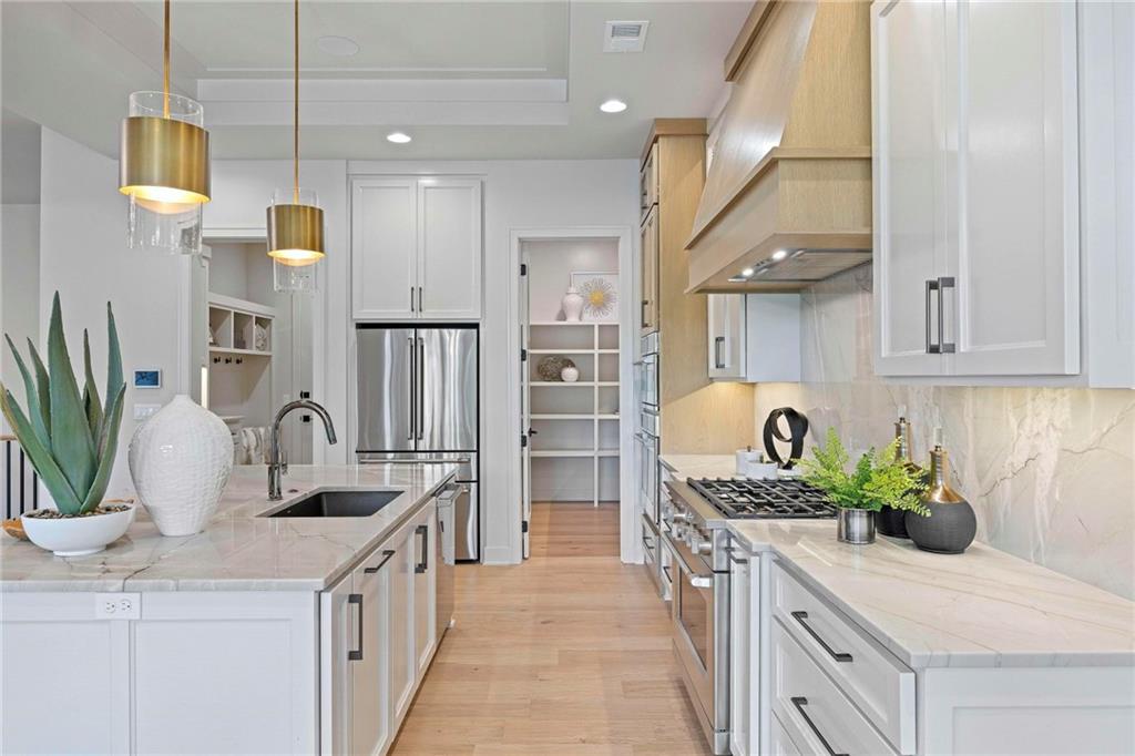 Avala Model ~J.S. Robinsons Fine Homes in East Village of Leawood (Home not for sale) The award winning Avala reverse plan - With more than 2000 sq ft on the main level, this expansive home has upgrades and high-quality finishes throughout. Double front doors lead you into the foyer and great room with vaulted ceilings, Cast stone fireplace with tile to the ceiling. The gourmet kitchen is thoughtfully designed with a large center island, ceiling high cabinets and a walk-in pantry perfect for prep and hosting. Spacious primary suite is tucked away on the main level with double vanities, shower, generous walk-in closet with direct access to laundry room. Second room on main level could serve as bedroom or office space. Walkout, walk up lower level features a large family room with wet bar, two additional bedrooms and a full bath. Great space for entertaining! Live the carefree, luxury lifestyle of East Village of Leawood. Close to upscale shopping & dining.
