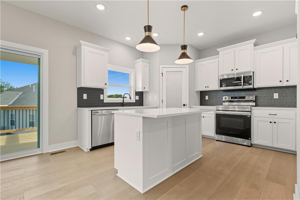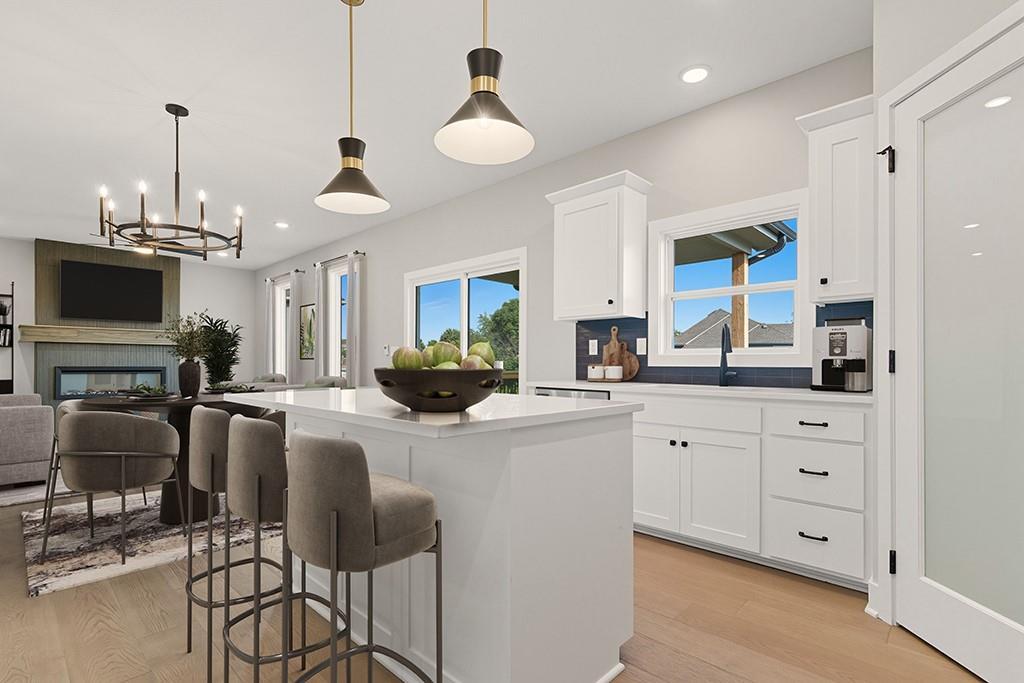 “The Carlyle", the latest innovative floorplan from Dave Richards Homebuilding, INC. The main level features a private office, open concept kitchen / family / dining area and a conveniently located half bath. You'll love the ample storage space in the U-Shaped kitchen design, which also allows for a sink with window overlooking the backyard! An island and walk in pantry complete the kitchen, which opens to the large dining area and big family room with fireplace and wall of windows offering lots of natural light. Upstairs you'll find four spacious bedrooms, including the owner's suite which features dual walk-in closets & a spacious bathroom with dual vanities. The large second full bath upstairs also boasts two vanities and shower/tub combo to accommodate your needs. Three other generously sized bedrooms finish out the upper level-- one with its own walk in closet. The walk in laundry room is also featured on the bedroom level, making that household chore as convenient as possible! Large Yard features an irrigation system, make lawn care much easier. Four Pillars offers walking trails, is serviced by the award winning Grain Valley School District, included the coveted Prairie Branch Elementary School. You're also within walking distance of Grounds Park-- which offers miles of walking/biking trails and a community lake. Exceptional quiet location, yet just minutes from the Adam's Dairy Shopping/retail corridor and easy access to I-70 for quick commuting around town. Beautiful home, fabulous community!