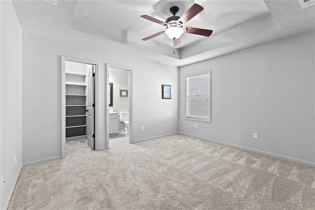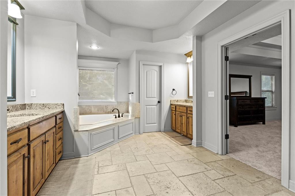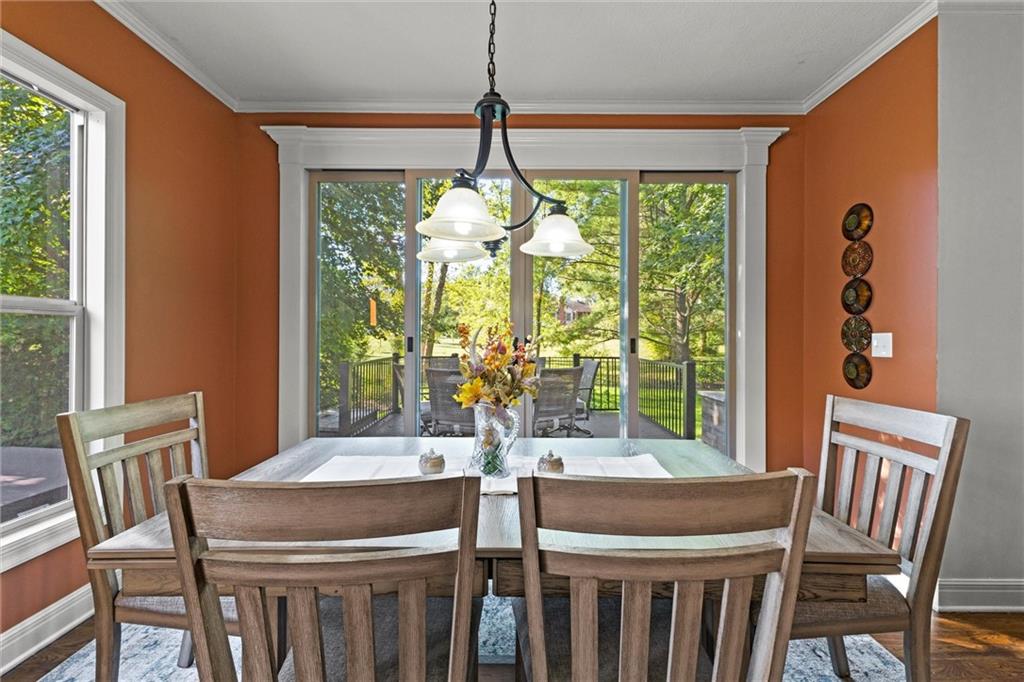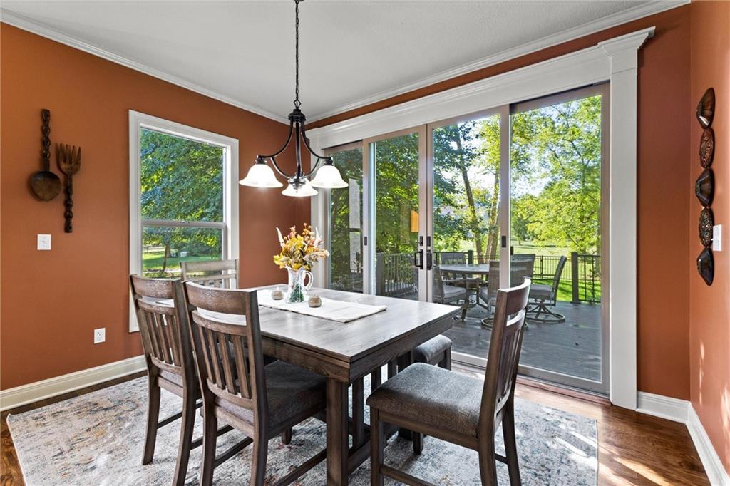 Welcome to this beautifully maintained two-story home in Coffee Creek Crossing- Overland Park. Step inside to find hardwood floors, quiet sitting area, private office, and a grand room with a see-through fireplace. The open floor plan flows into the spacious living room and an eat-in kitchen, featuring high-end stainless steel appliances, granite countertops, and a walk-in pantry. Updated windows allow abundant natural light to pour in, or step outside for private outdoor living space-relaxing backyard perfect for entertaining—with beautiful landscaping, a new patio, a built-in fire pit, and a private hot tub. Upstairs offers new carpet throughout all bedrooms, including a spacious primary suite, with convenient laundry access from the primary closet and hallway. There are three additional spacious bedrooms with generous walk in closets. A Hollywood-style bathroom connects two of the bedrooms, ensuring privacy, and the third has its own private bath. The finished lower level is multifunctional that is ideal for hosting- offering a living space, kitchenette, half bath, home gym, play area, and plenty of storage. Close to amenities, with easy access to Coffee Creek trail. Conveniently located near shopping, entertainment, near major highways, and award-winning Blue Valley Schools.