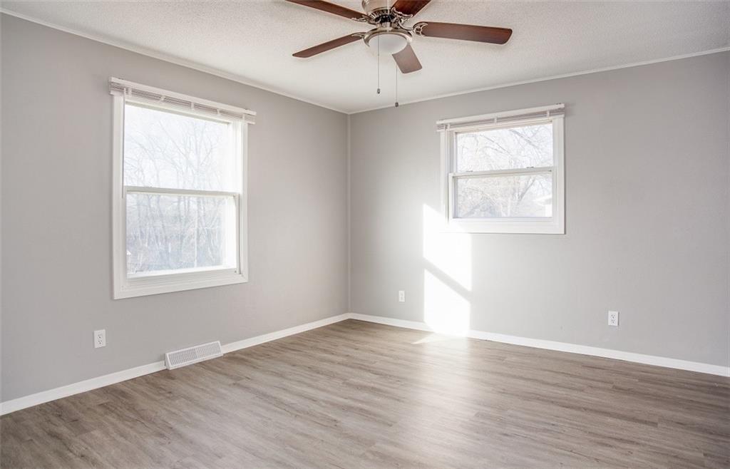 Come see this charming 3-bedroom, 1.5-bath home in Kansas City! Featuring beautiful flooring, plenty of natural light, and a kitchen with stainless steel appliances. All bedrooms include ceiling fans for comfort. Move in Ready!