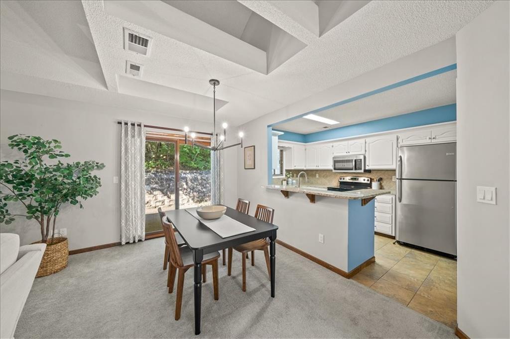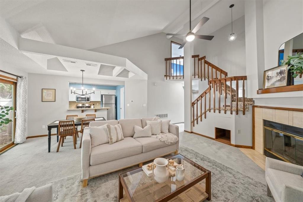 Welcome to Mission Lake! This maintenance-provided community offers a variety of amenities, including a boat dock, clubhouse, community center, exercise room, hobby room, swimming pools, social events, and scenic trails surrounded by nature. This townhome has soaring vaulted ceilings, a cozy fireplace, a private patio to enjoy a morning cup of coffee or glass of wine to top off your day, updated kitchen and main floor bathroom, plus a spacious primary suite with an extra room perfect for an office or hobby space. Located in southern Kansas City, it’s just minutes from Martin City's renowned spots like Jack Stack and Martin City Brewing, with easy highway access for seamless commuting. The HOA covers numerous services, including lawn care, snow removal, water, trash, roof repair and replacement, and siding maintenance. With its wealth of community amenities and extensive HOA coverage, this townhouse is a steal at its current price.