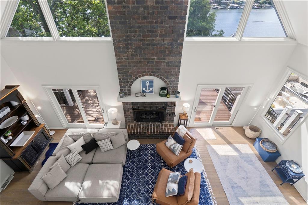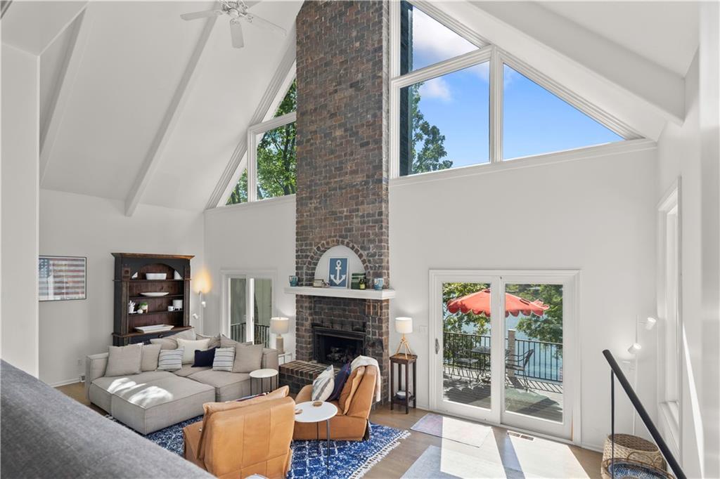 Lovely and welcoming lake home with main body views! This beautifully updated property offers ample living space and stunning lake views. Recent upgrades include new exterior and interior paint, a new dishwasher, new windows, a new roof, new flooring throughout, a new deck, a new double-tier dock with a sunning platform above. The large, open kitchen and dining area overlook the inviting living room with fireplace, perfect for entertaining or endless gazing at the scenic views. The main-level bedroom features an on-suite bath and private deck, while the primary loft bedroom provides additional breathtaking lake views. The generously sized second-level bedrooms are ideal for bunk rooms, perfect for family and friends to visit. The third bedroom has its own private stairway and bath, offering additional privacy for guests. Outside spaces include a spacious upper deck and a large lower-level patio, with easy access to the dock in deep water depth. An outside walkway ensures convenient lake access for guests. Home also features two car attached garage with spacious driveway for overflow and visitor parking. This home is ideal for a primary residence or second home and is move-in ready for lakeside enjoyment all year around!
