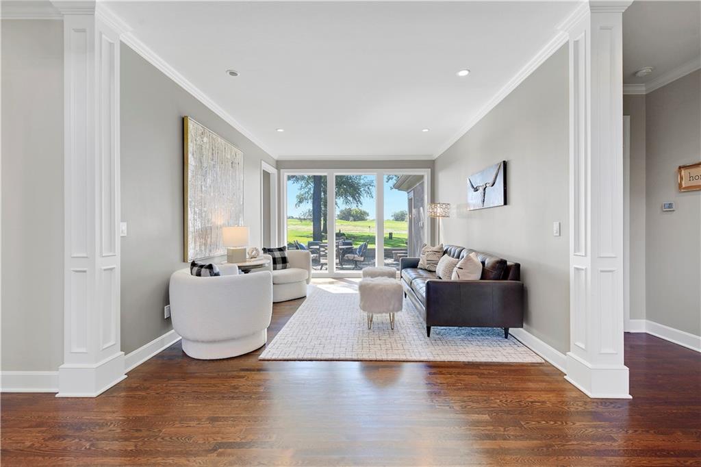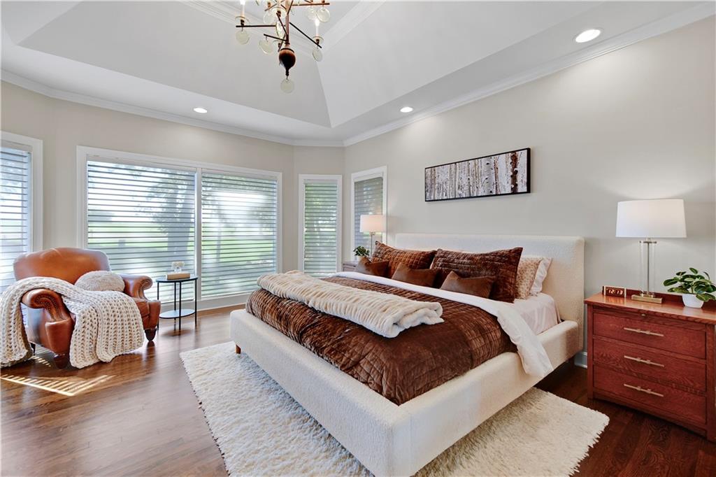 Welcome to this exquisite 1.5-story residence in the prestigious, gated community of Loch Lloyd. Set on a 1/2 acre cul-de-sac lot backing to greenspace, this home is designed to impress. From the moment you arrive, floor-to-ceiling windows, gleaming hardwood floors, and a harmonious blend of elegance and comfort set the tone. Thoughtfully updated with designer lighting, plush new carpeting, and a fully remodeled lower level, this home is truly move-in ready! Upon entry, a chic dining room and striking living room with serene greenspace views make a memorable first impression. The main level showcases a spacious primary suite with vaulted ceiling, access to the patio, two walk-in closets, and a beautifully renovated bath. The stylish hearth room, featuring a vaulted ceiling and cozy fireplace flows seamlessly into the gourmet kitchen—complete with an oversized quartz island with farm sink, double ovens, gas cooktop, panel-front appliances, and sophisticated finishes. A sunlit breakfast nook overlooks the patio, where a glass door opens to your private outdoor retreat: an expansive paver patio surrounded by lush landscaping, highlighted by a firepit and fire bowl and perfect for intimate evenings or lively gatherings. Upstairs, you'll find three generously sized bedrooms, each with a walk-in closet and freshly updated carpeting. The newly remodeled walkout lower level expands your lifestyle with a full bar, a welcoming rec room with fireplace, second living space perfect for movies or sports watching, a versatile flex space ideal for a home office or gym, and a convenient half bath. Walk out from the lower level onto a cozy paver patio on the side of the home. This exceptional home offers all the amenities of the highly sought-after Loch Lloyd community—including a private golf course, serene lake, scenic walking trails, and an unmatched resort-style living experience. Don’t miss the opportunity to make this extraordinary Loch Lloyd retreat your forever home.