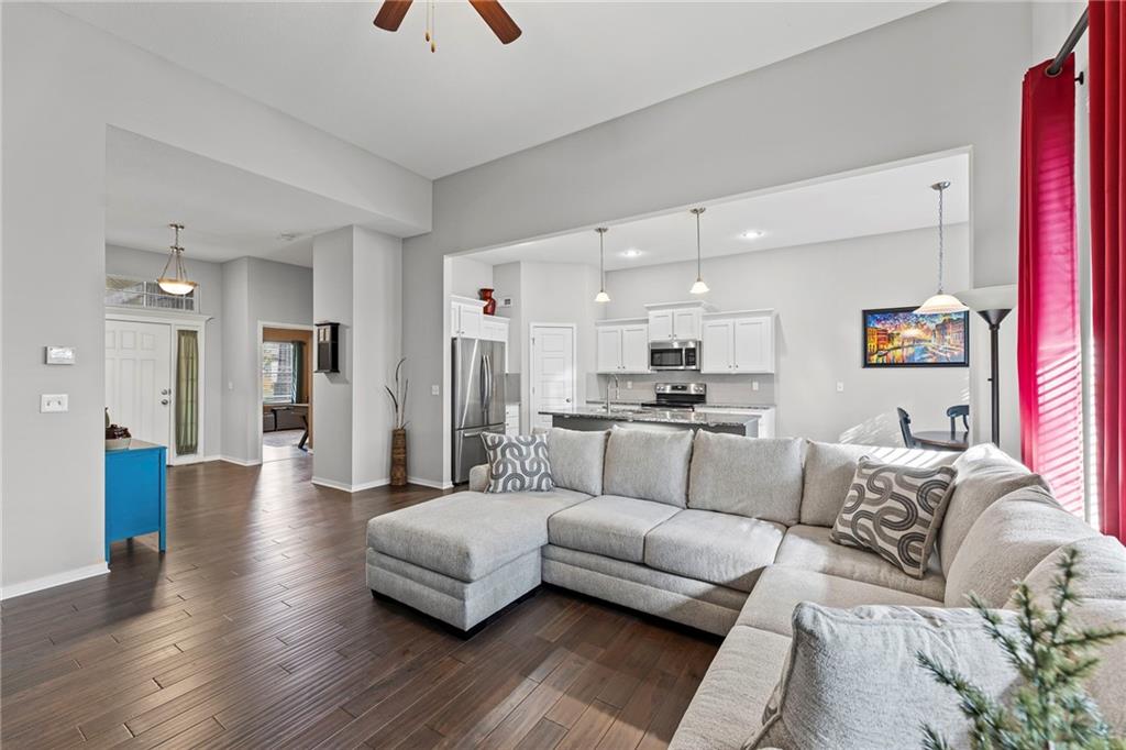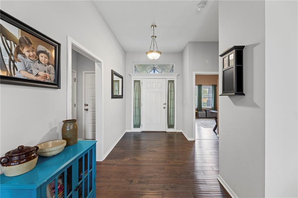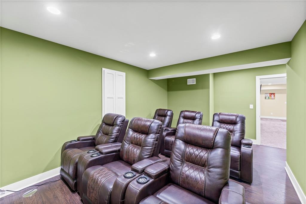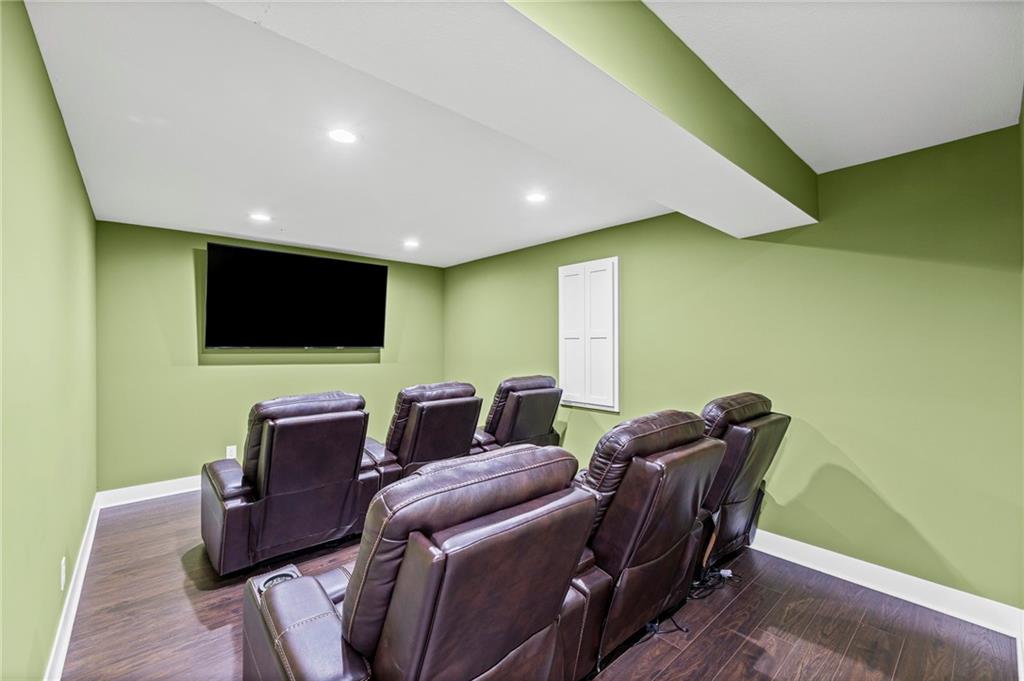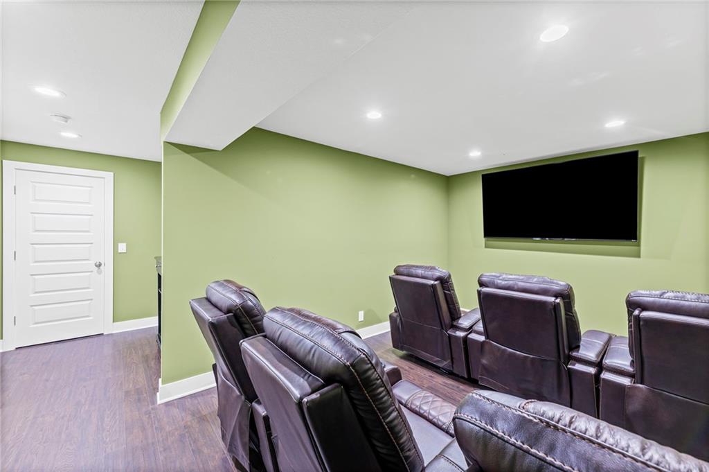 Your First Step Inside Will Make You Want To Call It Home! Enjoy the comfort and elegance of living in this gorgeous house and step into the spacious open floor plan with over 3000 finished square feet that offers an inviting warm atmosphere for relaxing and entertaining. The fabulous hardwood flooring, high soaring ceilings and exquisite luxury finishes add a touch of sophistication providing warmth and charm to this awesome home. This terrific 5 bedroom house along with 4 full bathrooms provides significant space for accommodating large families, multi-generational living and guests, while also providing versatile rooms for home offices, hobby areas, home gyms. The spectacular kitchen and adjoining dining area boasts a tray ceiling, granite countertops, hardwoods, lots of painted cabinets, s/s appliances, 7’ breakfast bar, w/i pantry along with access to wood deck for additional relaxing and entertaining. Impressive living room includes tray ceiling, c/fan, hardwoods, wall of windows with lots of natural light. The primary bedroom/bathroom suite showcases an oasis retreat with tray ceiling, carpeting, c/fan along with d/v, ceramic tile, shower, w/i closet. Two more roomy secondary bedrooms, one stylish full bathroom, laundry room all on the main level for the ultimate convenience and comfort plus a convenient boot bench area just inside the entry way off the garage. Finished walkout basement includes an awesome 16x23 family room with access to 16x18 patio and two more roomy secondary bedrooms includes two en-suite full bathrooms, plus a bonus 10x18 theater room with 6 theater seats and 75" tv screen, along with an adjoining snack bar/entertainment room. This captivating home also spotlights several fantastic upgrades including new main level carpeting (2025), new dishwater (2025), roof/gutters (2024), refrigerator (2023), finished basement (2021), all kitchen appliances staying too, incredible location, amazing curb appeal. Make This Dream Home Yours!!