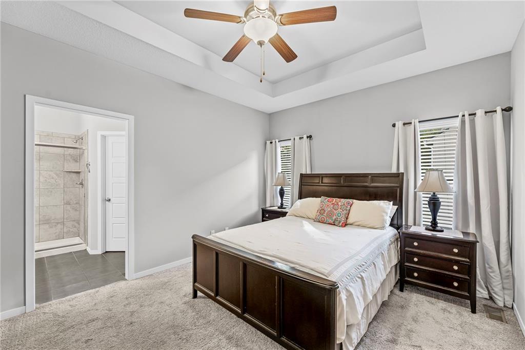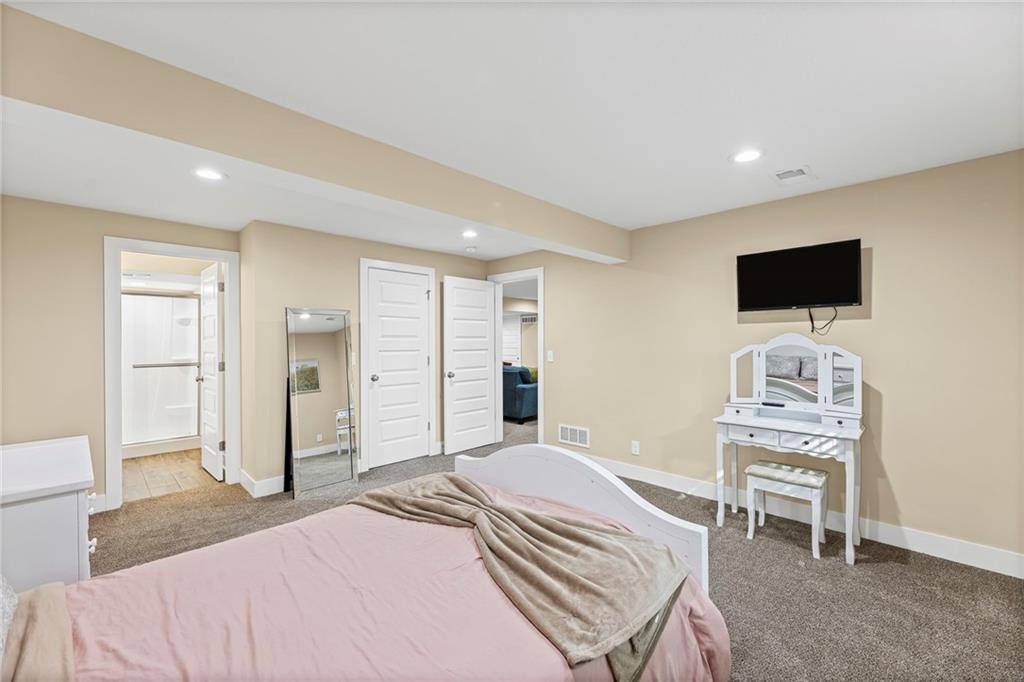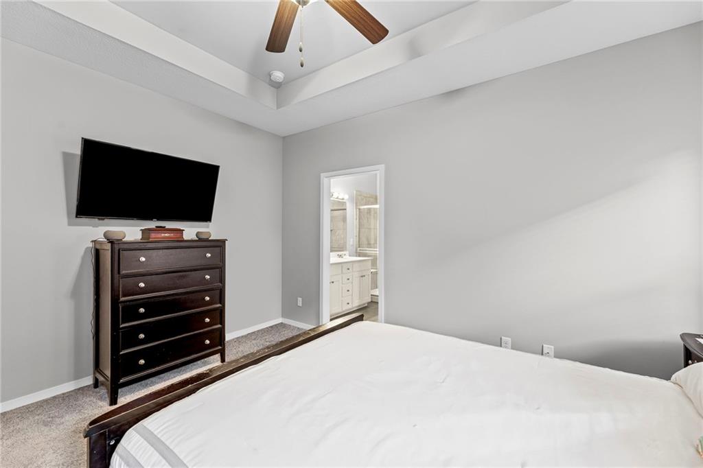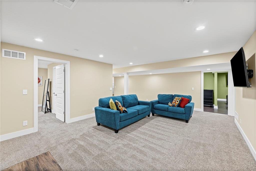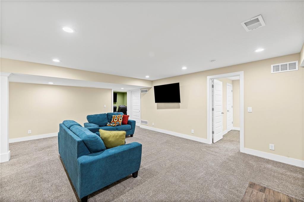 Your First Step Inside Will Make You Want To Call It Home! Enjoy the comfort and elegance of living in this gorgeous house and step into the spacious open floor plan with over 3000 finished square feet that offers an inviting warm atmosphere for relaxing and entertaining. The fabulous hardwood flooring, high soaring ceilings and exquisite luxury finishes add a touch of sophistication providing warmth and charm to this awesome home. This terrific 5 bedroom house along with 4 full bathrooms provides significant space for accommodating large families, multi-generational living and guests, while also providing versatile rooms for home offices, hobby areas, home gyms. The spectacular kitchen and adjoining dining area boasts a tray ceiling, granite countertops, hardwoods, lots of painted cabinets, s/s appliances, 7’ breakfast bar, w/i pantry along with access to wood deck for additional relaxing and entertaining. Impressive living room includes tray ceiling, c/fan, hardwoods, wall of windows with lots of natural light. The primary bedroom/bathroom suite showcases an oasis retreat with tray ceiling, carpeting, c/fan along with d/v, ceramic tile, shower, w/i closet. Two more roomy secondary bedrooms, one stylish full bathroom, laundry room all on the main level for the ultimate convenience and comfort plus a convenient boot bench area just inside the entry way off the garage. Finished walkout basement includes an awesome 16x23 family room with access to 16x18 patio and two more roomy secondary bedrooms includes two en-suite full bathrooms, plus a bonus 10x18 theater room with 6 theater seats and 75" tv screen, along with an adjoining snack bar/entertainment room. This captivating home also spotlights several fantastic upgrades including new main level carpeting (2025), new dishwater (2025), roof/gutters (2024), refrigerator (2023), finished basement (2021), all kitchen appliances staying too, incredible location, amazing curb appeal. Make This Dream Home Yours!!
