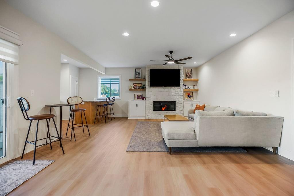 Why wait to build? This better-than-new 4-bedroom, 4-bathroom reverse 1.5 story home is perfectly situated on a quiet cul-de-sac lot with beautiful lake views, a 3 car garage and high-end upgrades throughout. Step inside to a bright, wide-open main floor filled with natural light, custom Hunter Douglas zebra shades, and a seamless flow from the spacious great room with fireplace to the chef-inspired kitchen. The kitchen boasts a large center island, quartz countertops, walk-in pantry, and abundant cabinetry—perfect for entertaining or everyday living. Just off the kitchen, you'll find a laundry room with built-ins and a utility sink for added convenience. A mudroom off the garage adds both function and style. Enjoy peaceful lake views from the covered, screened-in porch, accessible from both the kitchen and the primary suite. The luxurious primary retreat features a spa-like ensuite with a soaker tub, walk-in shower with 2 shower heads, and two large walk-in closets. Head downstairs to the fully finished walk-out basement, where you’ll find a wet bar with granite countertops, a spacious recreation room, and a bonus room currently used as a home gym. Step outside to a large patio and fully fenced backyard, ideal for relaxing, entertaining, or play. This home truly has it all—premium finishes, custom touches, lake views, and a prime location on a quiet cul-de-sac. Move right in and enjoy the lifestyle you’ve been waiting for!