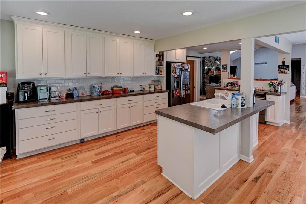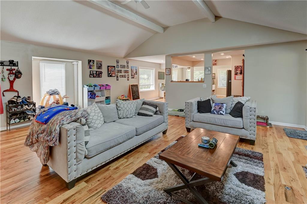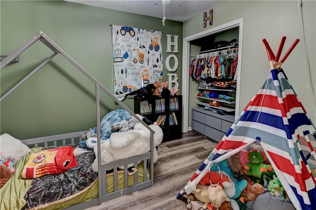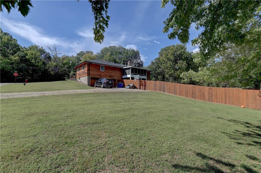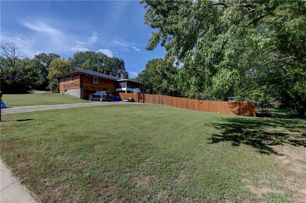Fall in love with this stunning open-concept home offering convenient main-level living! The updated kitchen features ample cabinet space, while the spacious, modern bathrooms provide comfort and style. The finished basement adds extra flexibility for living or entertaining. New roof and gutters completed in 2024. This home is packed with recent updates that will save you money, including a new HVAC system (installed just 4 years ago), and new vinyl plank flooring. Enjoy your evenings in the screened-in porch overlooking a huge backyard complete with a newer privacy fence and fruit-bearing apple trees. Inside, large windows fill the home with abundant natural light. The lower-level room is already sheetrocked and could easily be finished as a 4th bedroom. Fantastic location—just 5 minutes from The Legends, I-70, and I-435, offering quick and easy access to anywhere in the city!